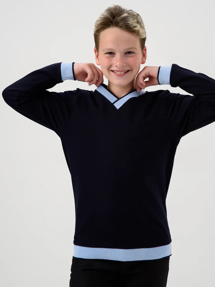 Лонгслив для мальчика "Гимназист" - идеальный выбор для повседневного использования и одежды для школы. Благодаря современному дизайну джемпер, свитшот для мальчика легко сочетается с любой одеждой для школы, что делает его универсальным предметом гардероба.
