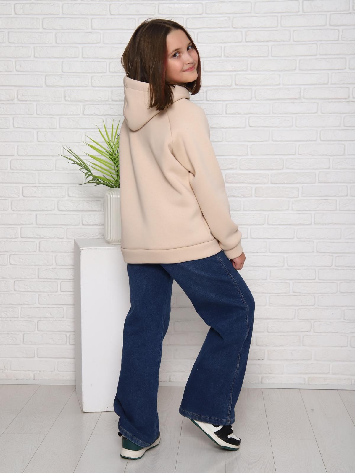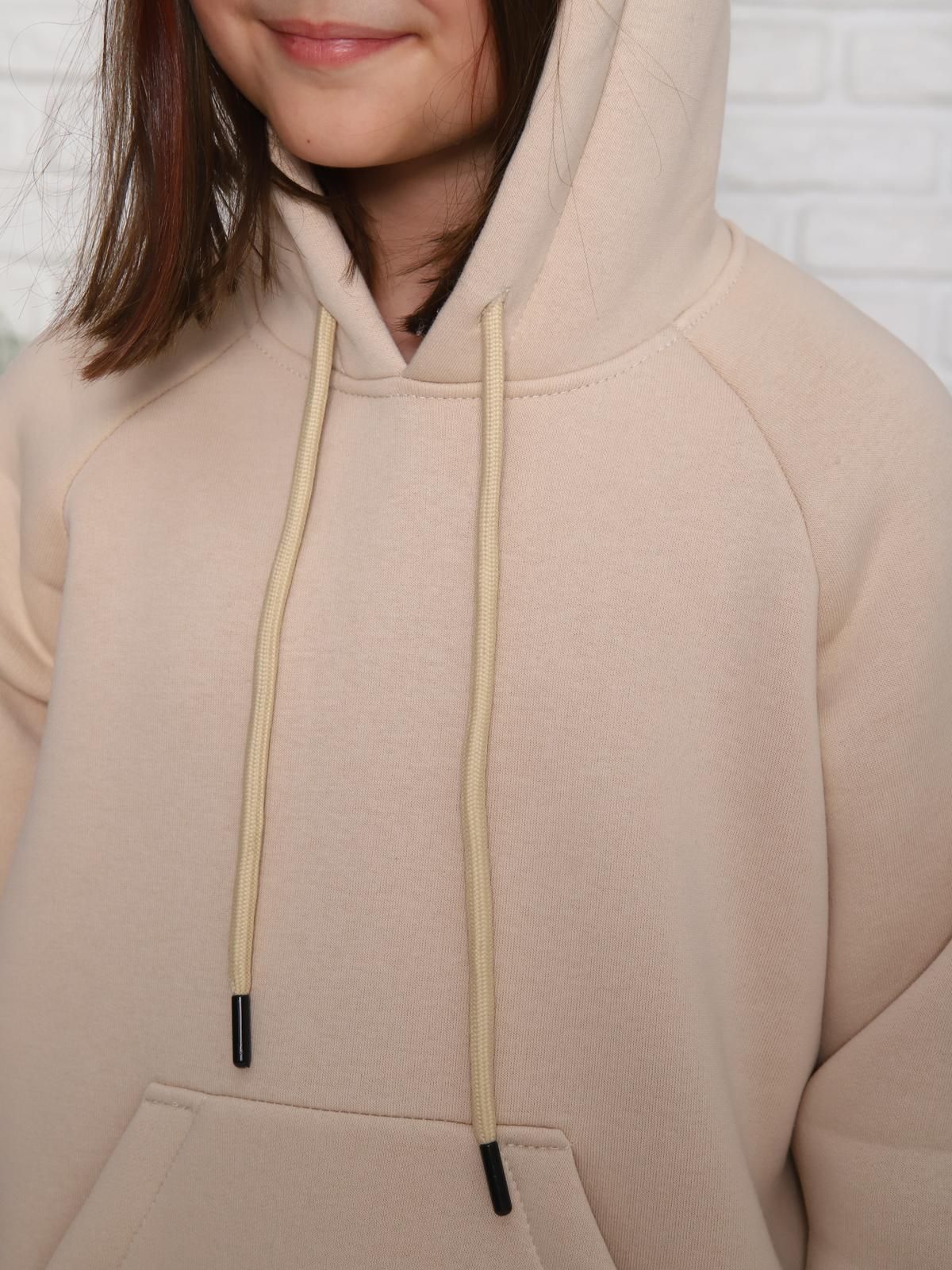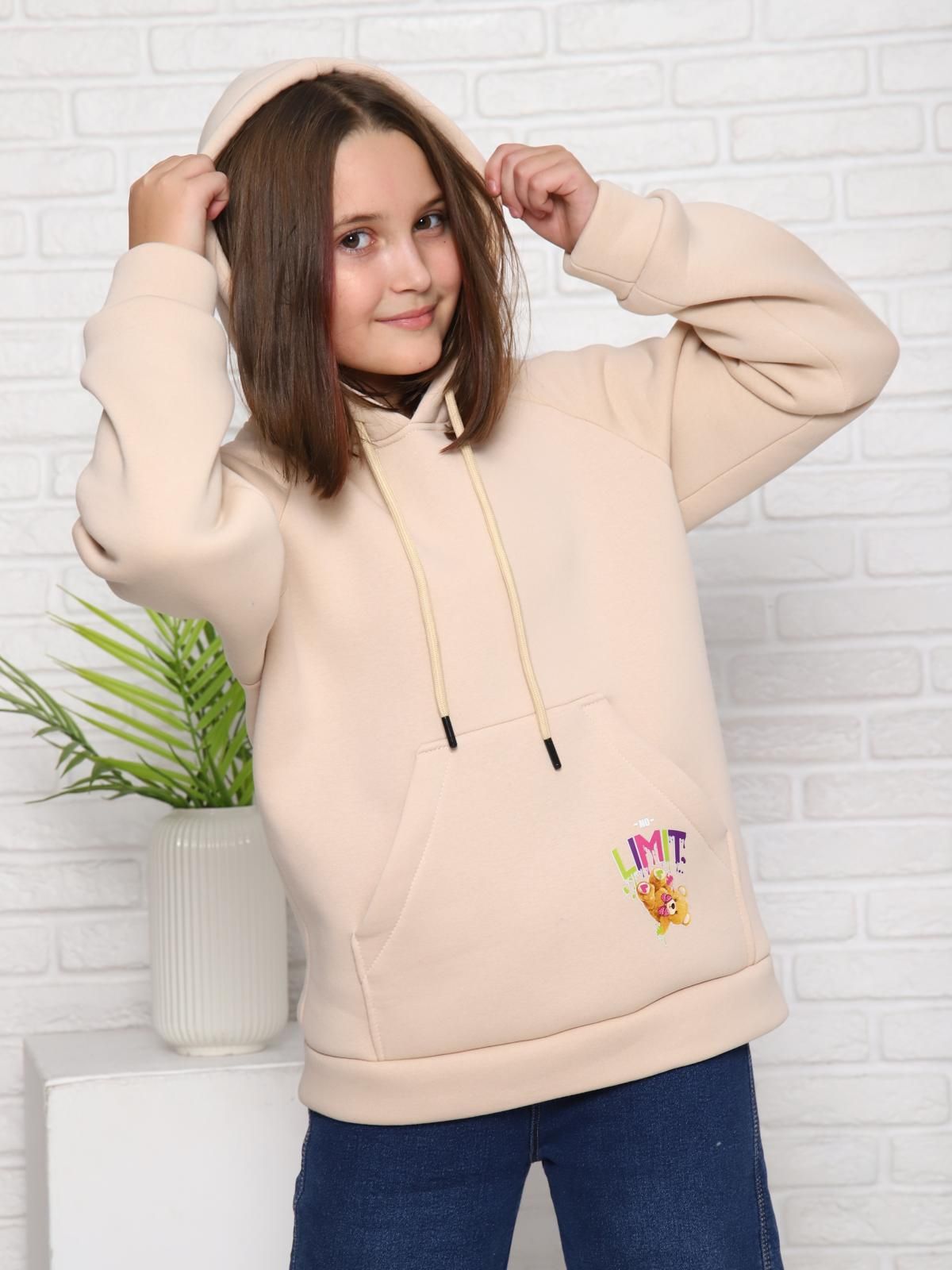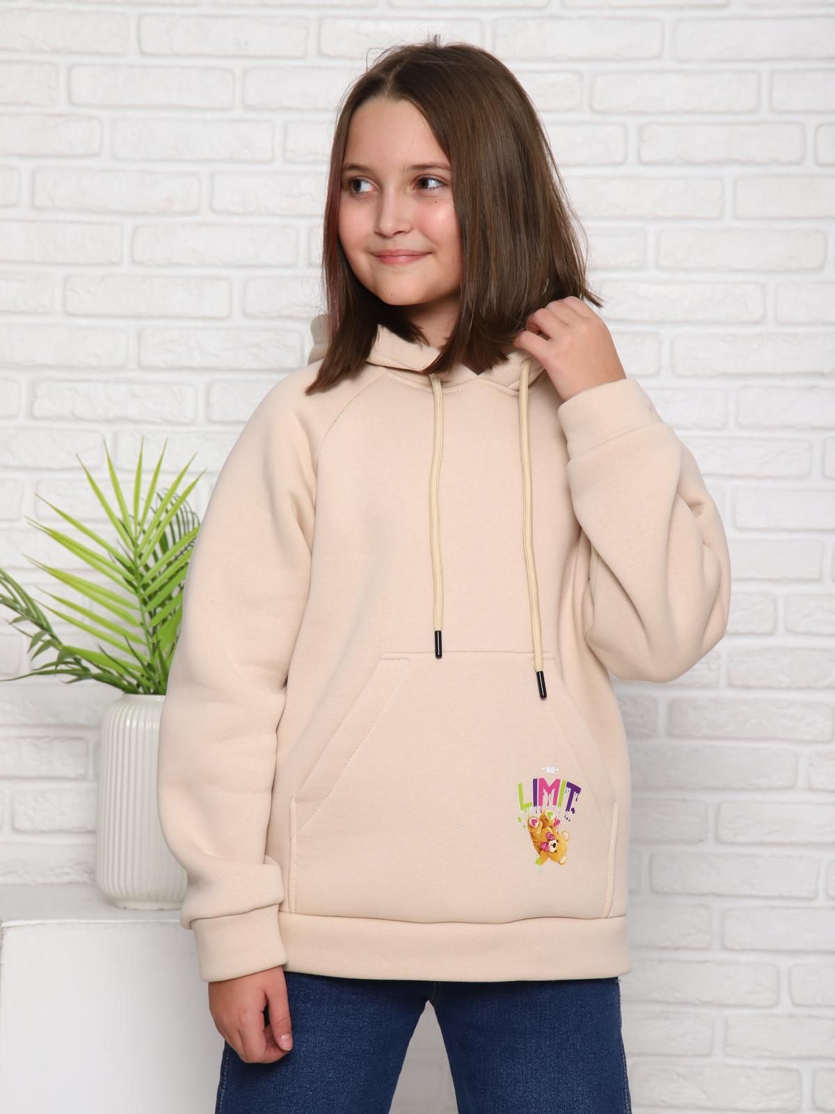 Толстовка детская утепленная имеет прямой крой, длинные рукава и капюшон с завязками, что делает её удобной и практичной для повседневной носки. На передней части толстовки расположен небольшой логотип, добавляющий стильный акцент.
