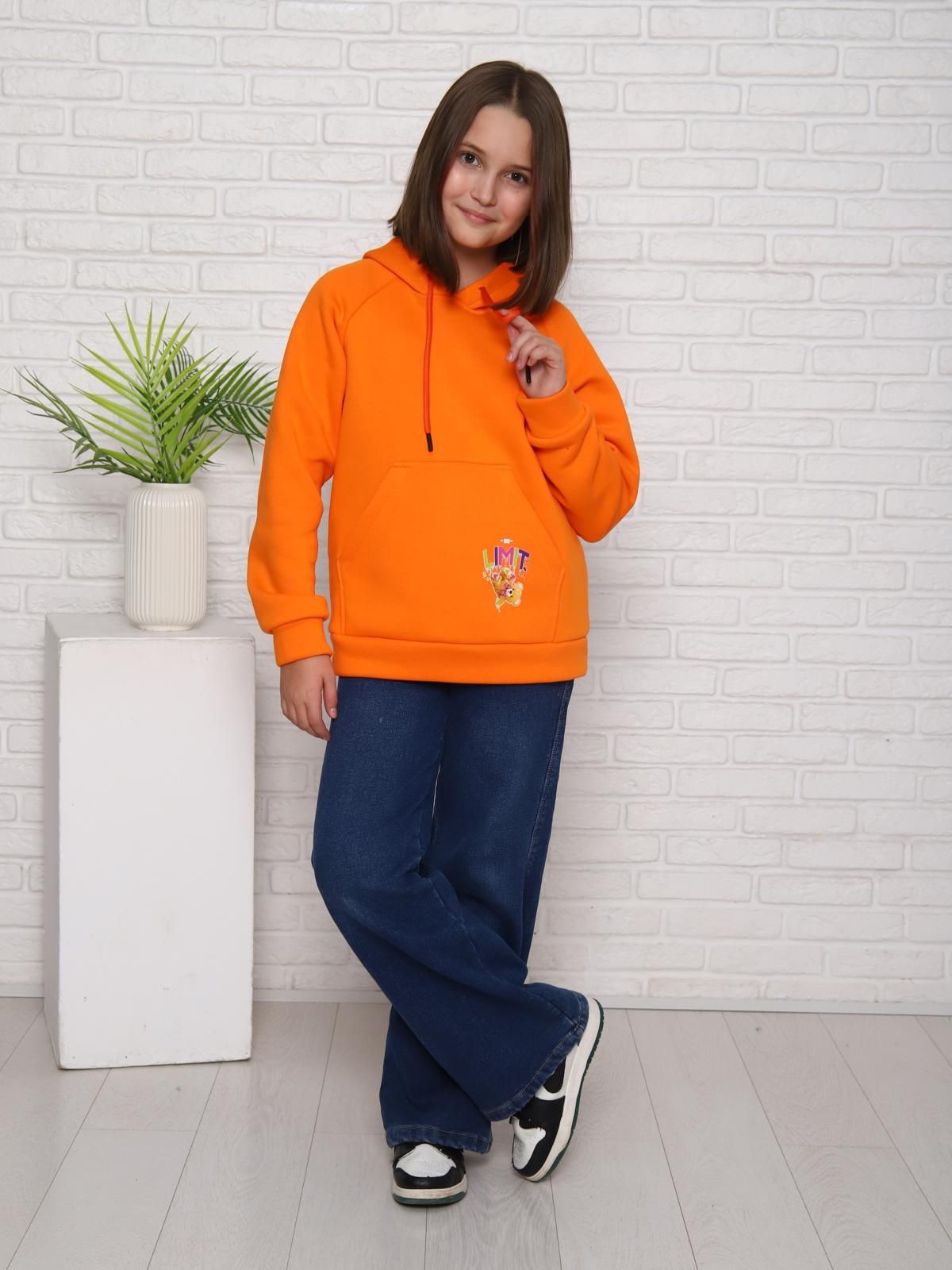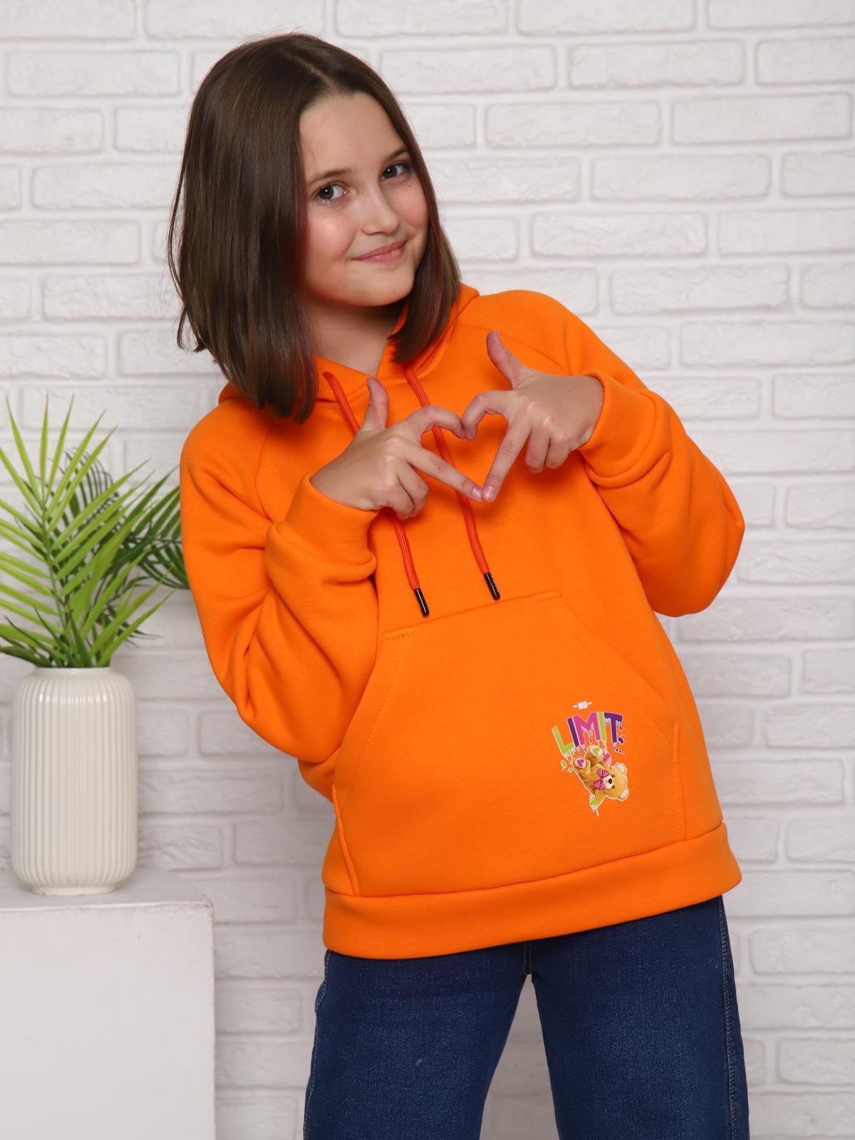 Толстовка детская утепленная имеет прямой крой, длинные рукава и капюшон с завязками, что делает её удобной и практичной для повседневной носки. На передней части толстовки расположен небольшой логотип, добавляющий стильный акцент.