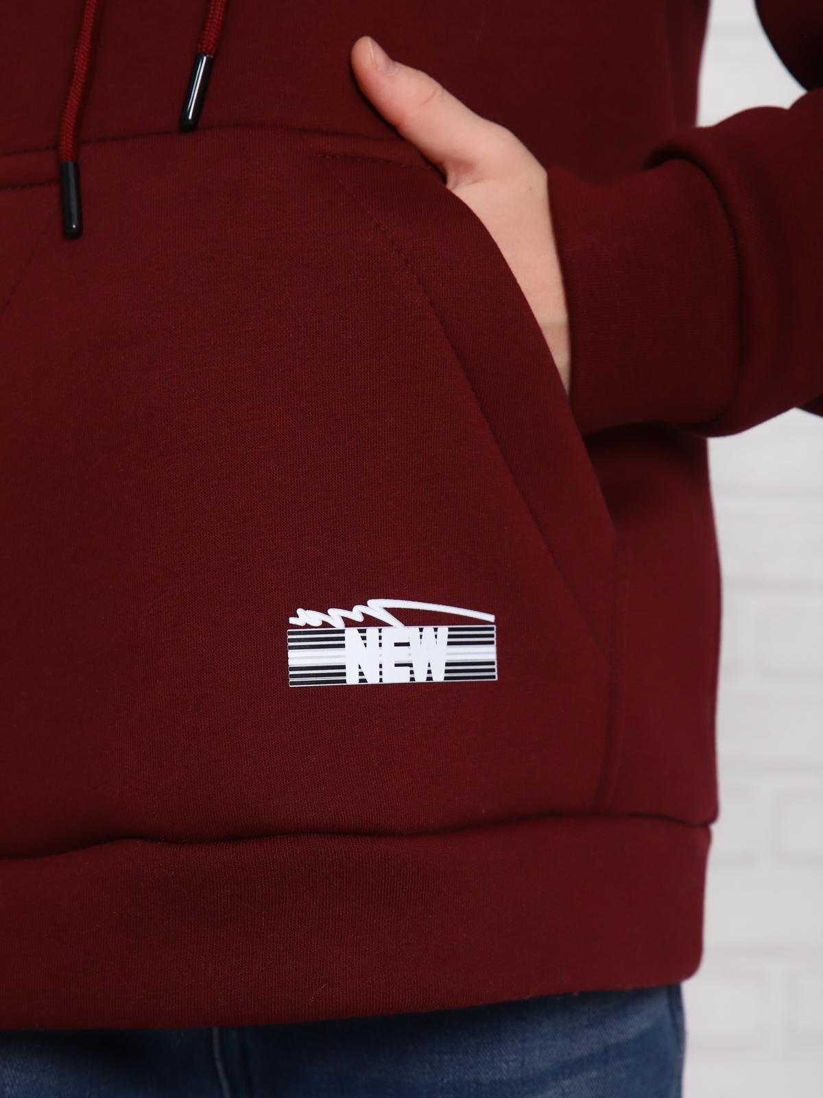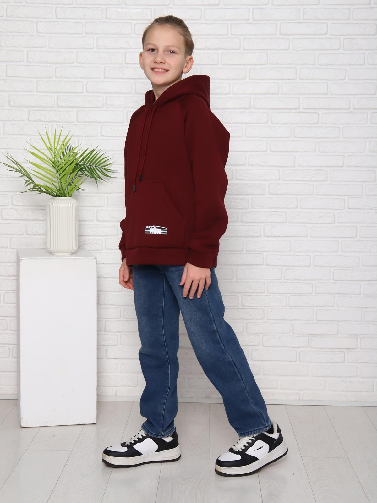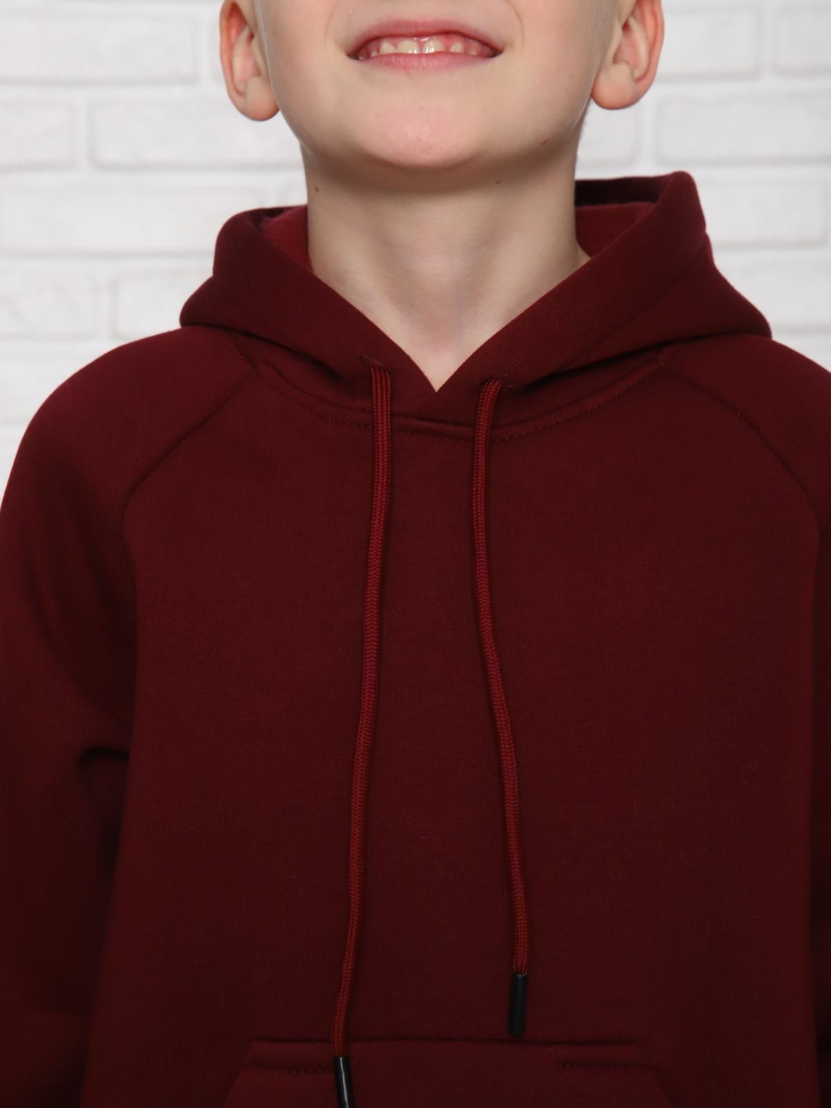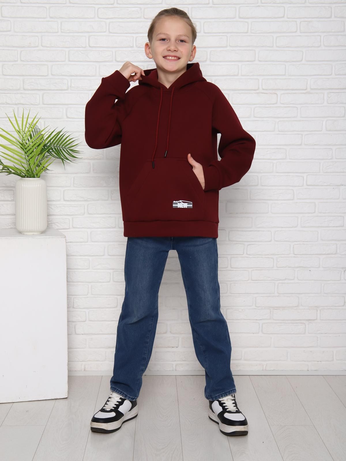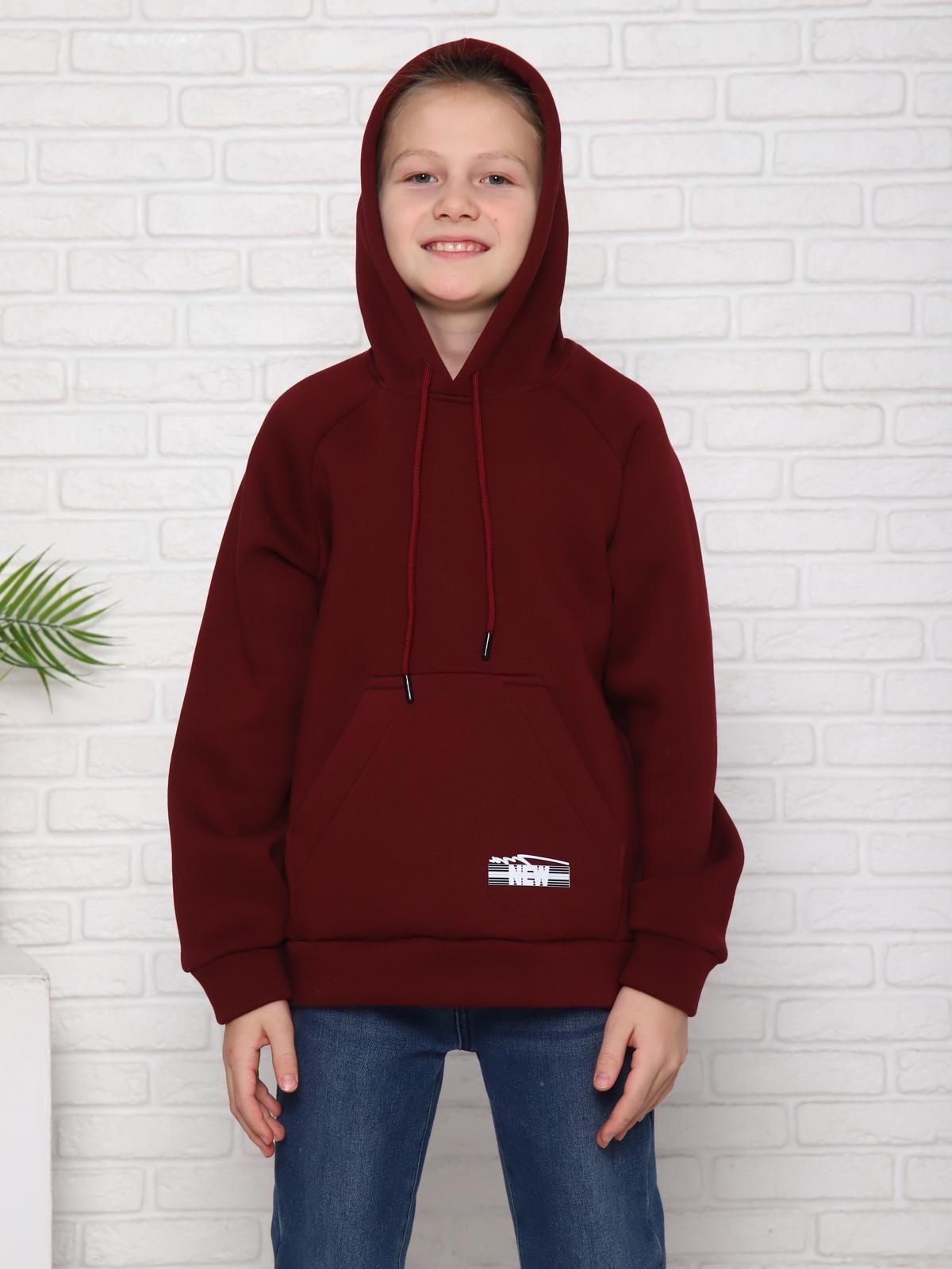 Толстовка детская утепленная имеет прямой крой, длинные рукава и капюшон с завязками, что делает её удобной и практичной для повседневной носки. На передней части толстовки расположен небольшой логотип, добавляющий стильный акцент.