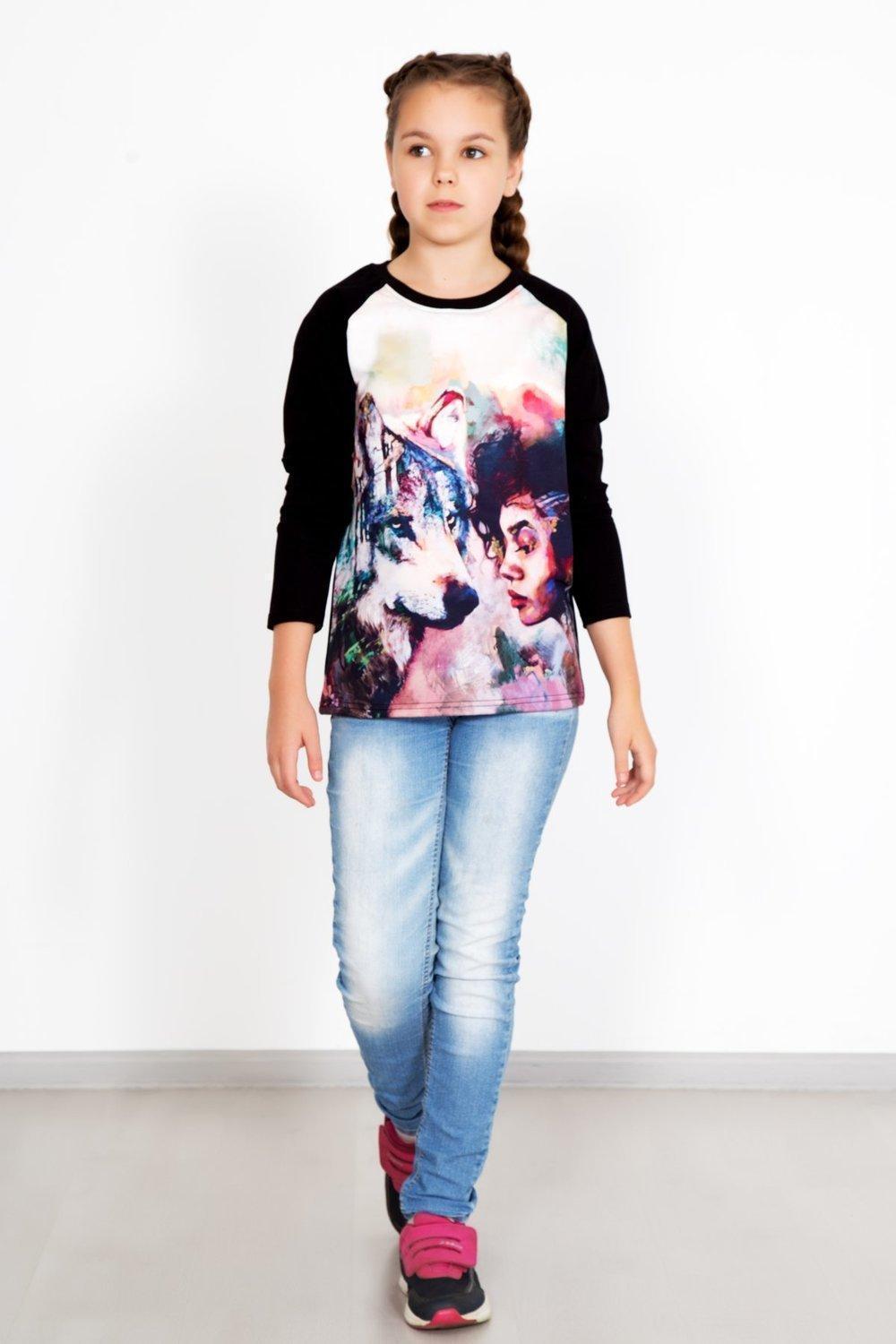 Уютная и практичная толстовка с красивым рисунком на полочке. Изделие прямого кроя с длинным рукавом - реглан и круглым вырезом горловины.