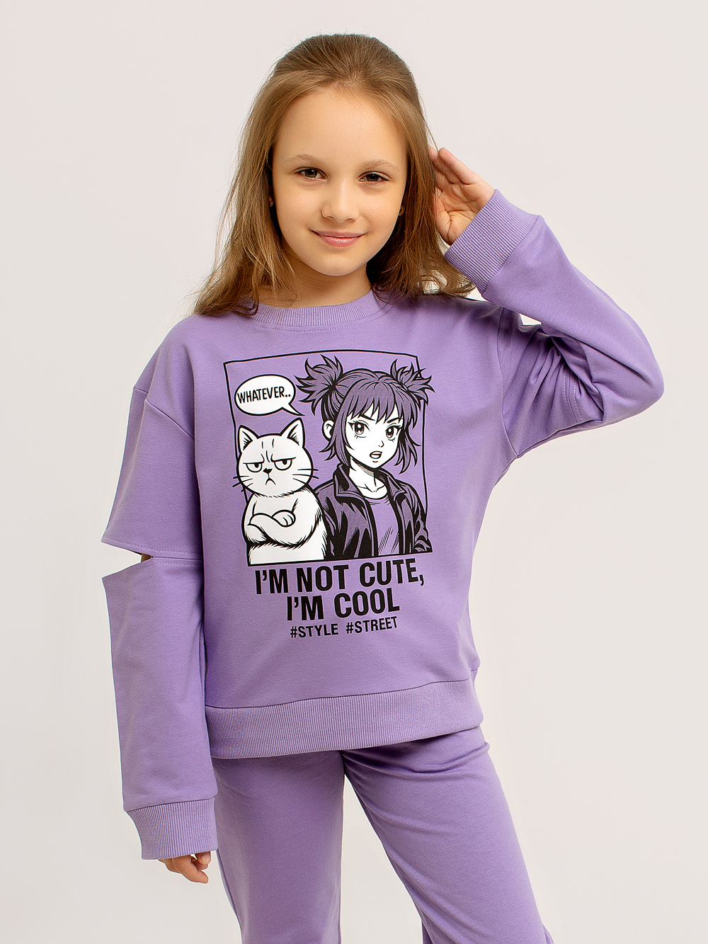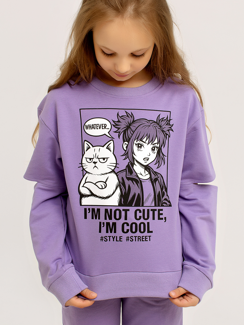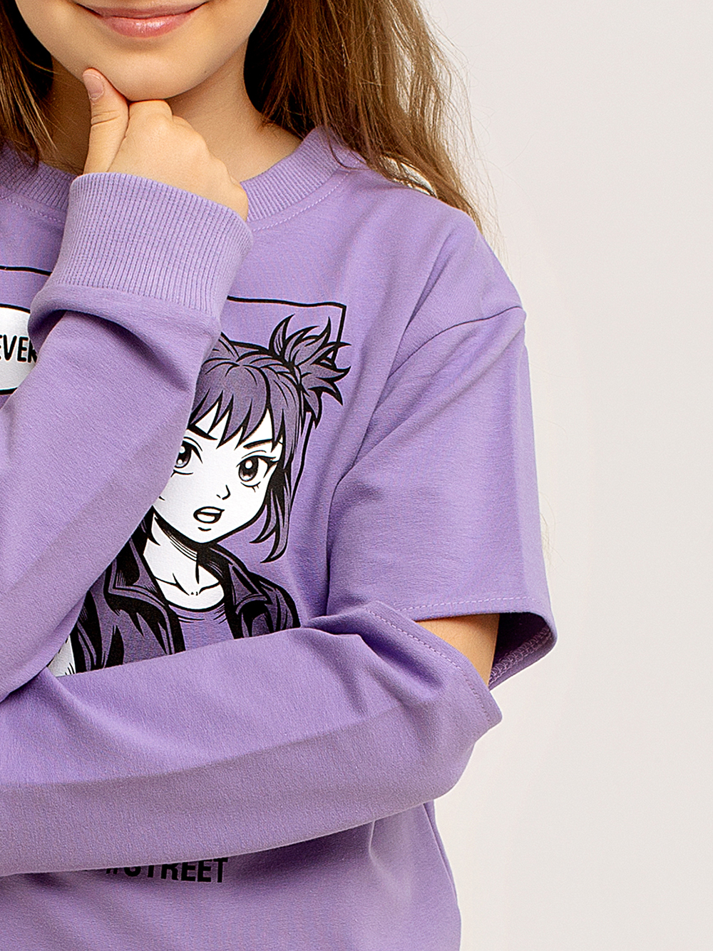 В этой прекрасной и модной толстовке Вашему ребёнку как никогда будет комфортно, а прогулки станут полными увлекательных открытий. Эластичный нижний край, горловина и манжеты делают толстовку максимально удобной, а мягкий хлопковый материал дарит тепло и уют. Горловина обрабатывается под обтачку. Толстовку украшает оригинальный принт в стиле Аниме. На рукавах толстовки обрабатывается оригинальный элемент в виде разреза в области локтя.