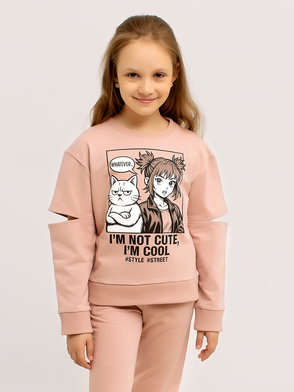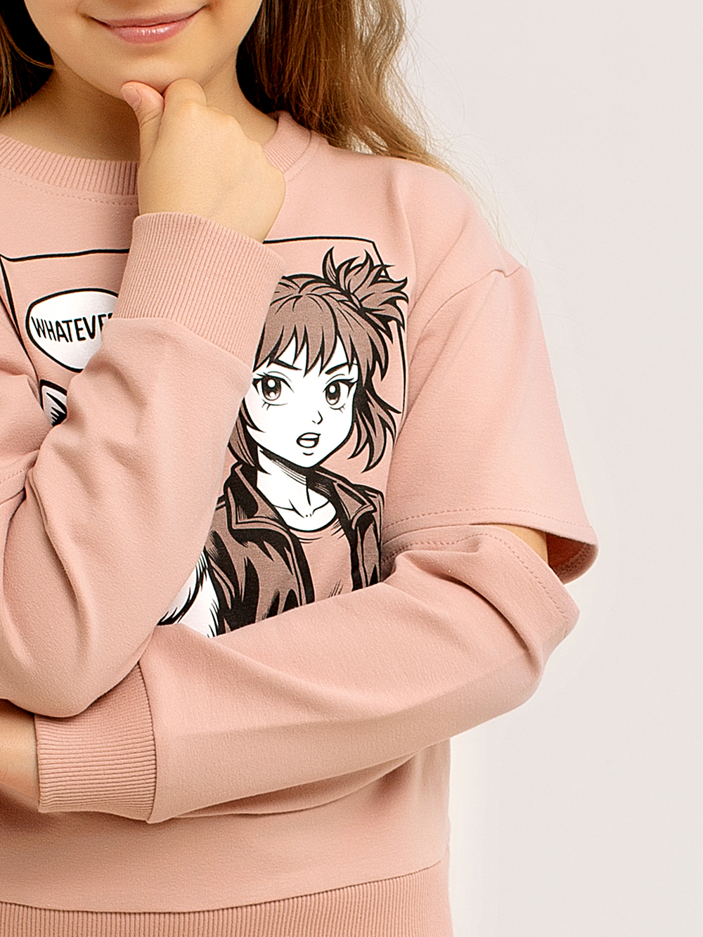 В этой прекрасной и модной толстовке Вашему ребёнку как никогда будет комфортно, а прогулки станут полными увлекательных открытий. Эластичный нижний край, горловина и манжеты делают толстовку максимально удобной, а мягкий хлопковый материал дарит тепло и уют. Горловина обрабатывается под обтачку. Толстовку украшает оригинальный принт в стиле Аниме. На рукавах толстовки обрабатывается оригинальный элемент в виде разреза в области локтя.