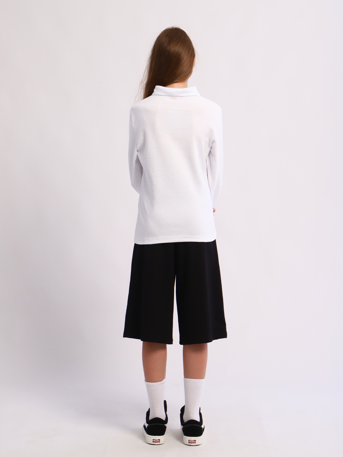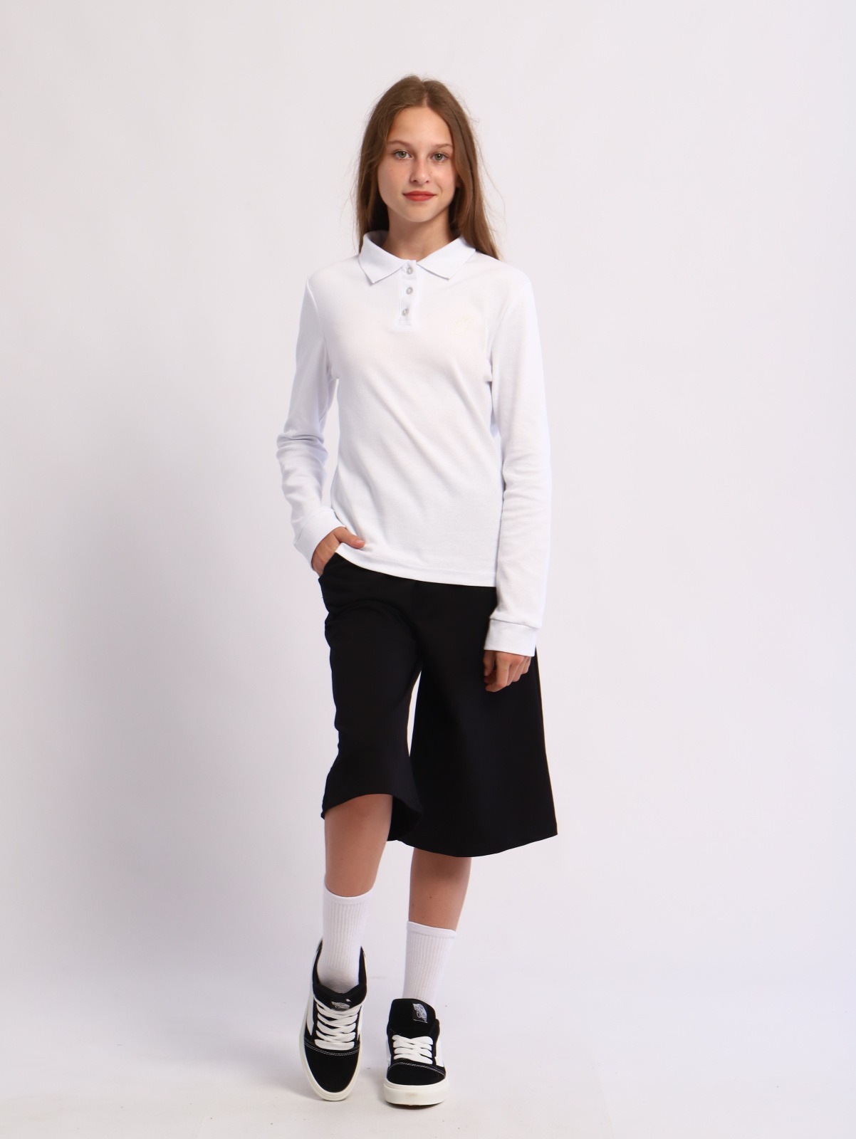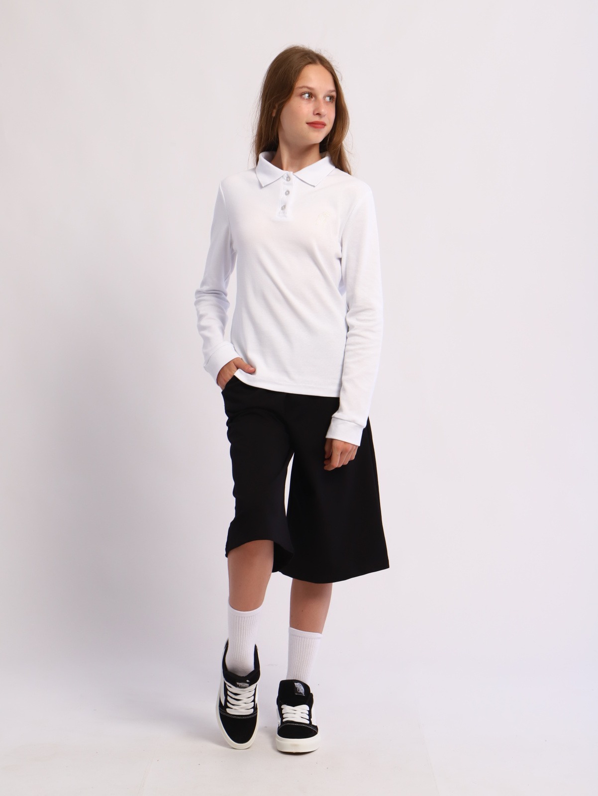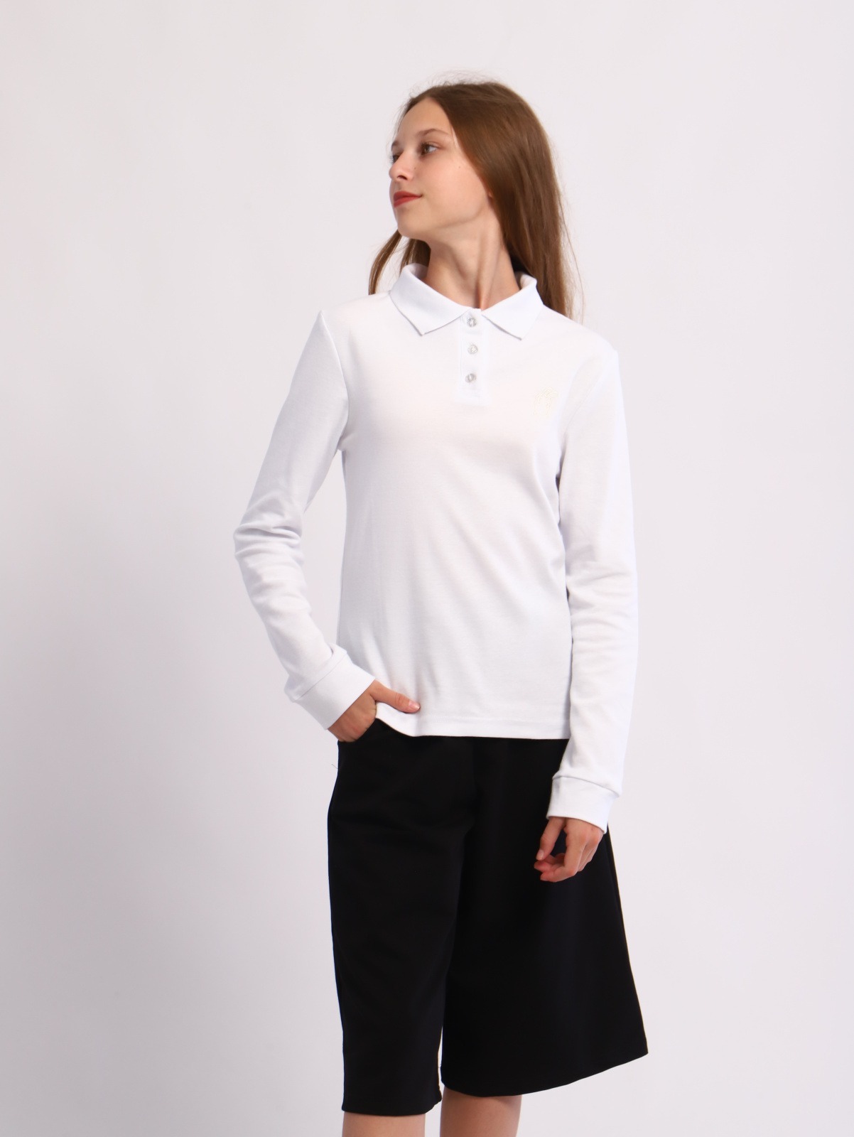 Универсальная рубашка - поло для мальчиков и девочек-подростков. Отличный базовый вариант школьного лонгслива! Эластичный высококачественный трикотаж рубашки не стесняет движений. Натуральный состав кофты для уроков обеспечивает комфорт На груди вышивка - заяц.