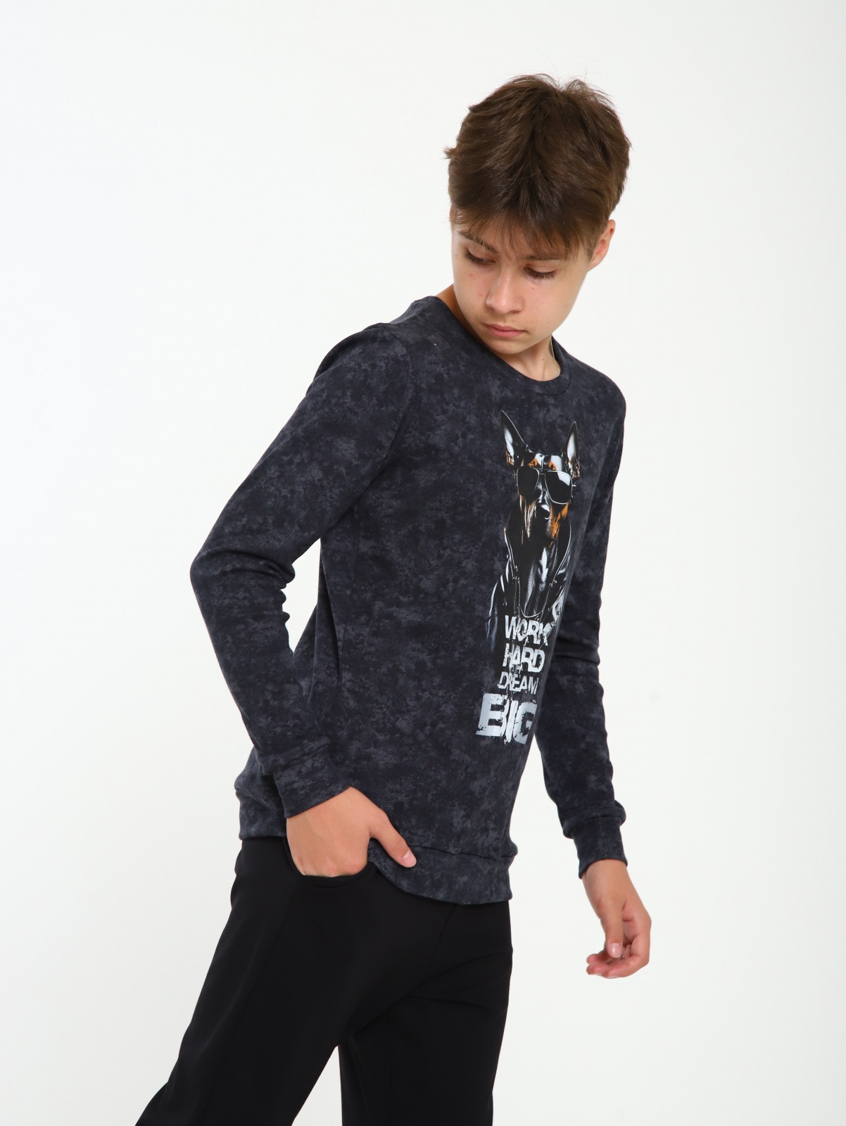 Свитшот Мирон для мальчика подростка с теплым начесом внутри. Кофта для подростка с рисунком добермана будет отличным дополнением гардероба. Кофта для мальчика имеет идеальную посадку на фигуре. Свитшот черный, это делает его универсальным и стильным. Детский джемпер из натурального хлопкового трикотажа на флисе, который обеспечивает комфорт и мягкость на протяжении всего дня.