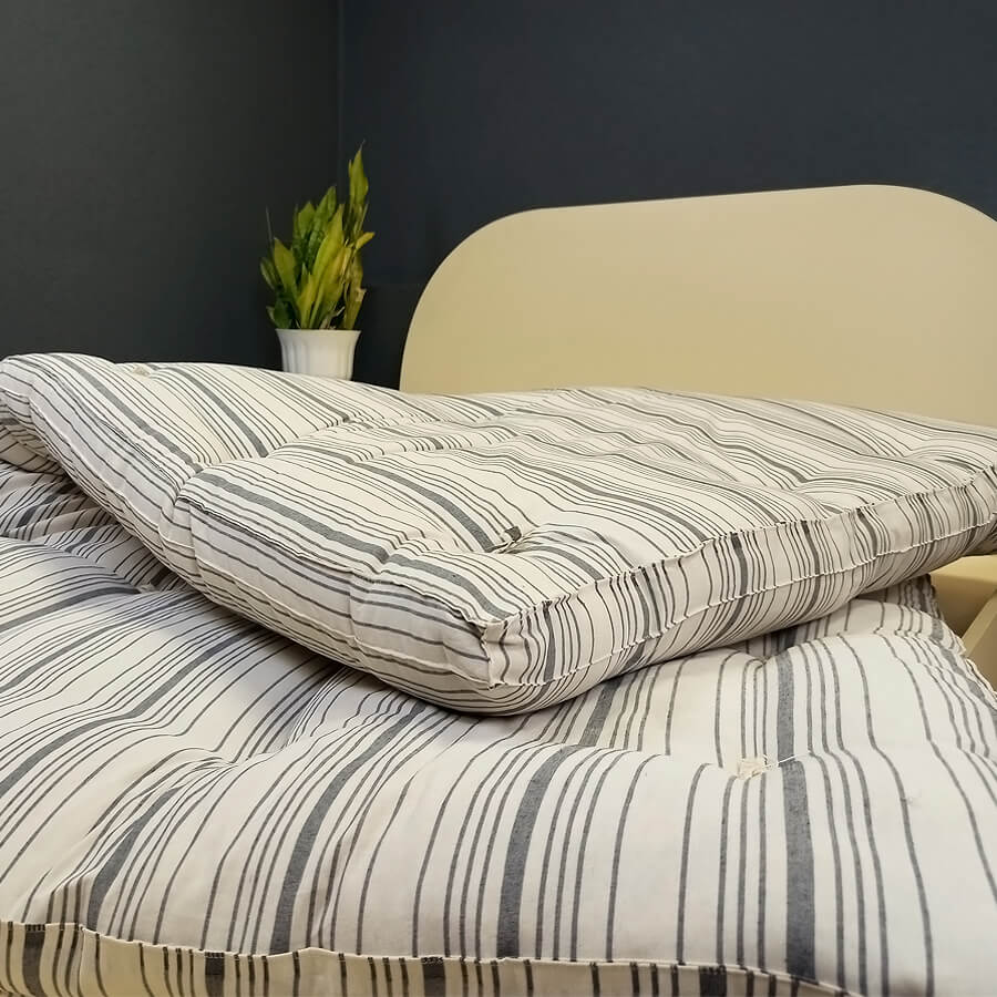 Представляем вашему вниманию классический вариант матраса с наполнителем хлопковая вата. Чехол изделия выполнен из хлопчатобумажной ткани. Внутри чехла наполнитель равномерно распределен, а за счет плотной прессовки и точечной стежки, полностью исключается вероятность «сбивания» ваты и образования неровностей на поверхности матраса. К неоспоримым преимуществам можно отнести: повышенную теплоизоляцию, достаточную упругость, простоту транспортировки и приемлемую стоимость.