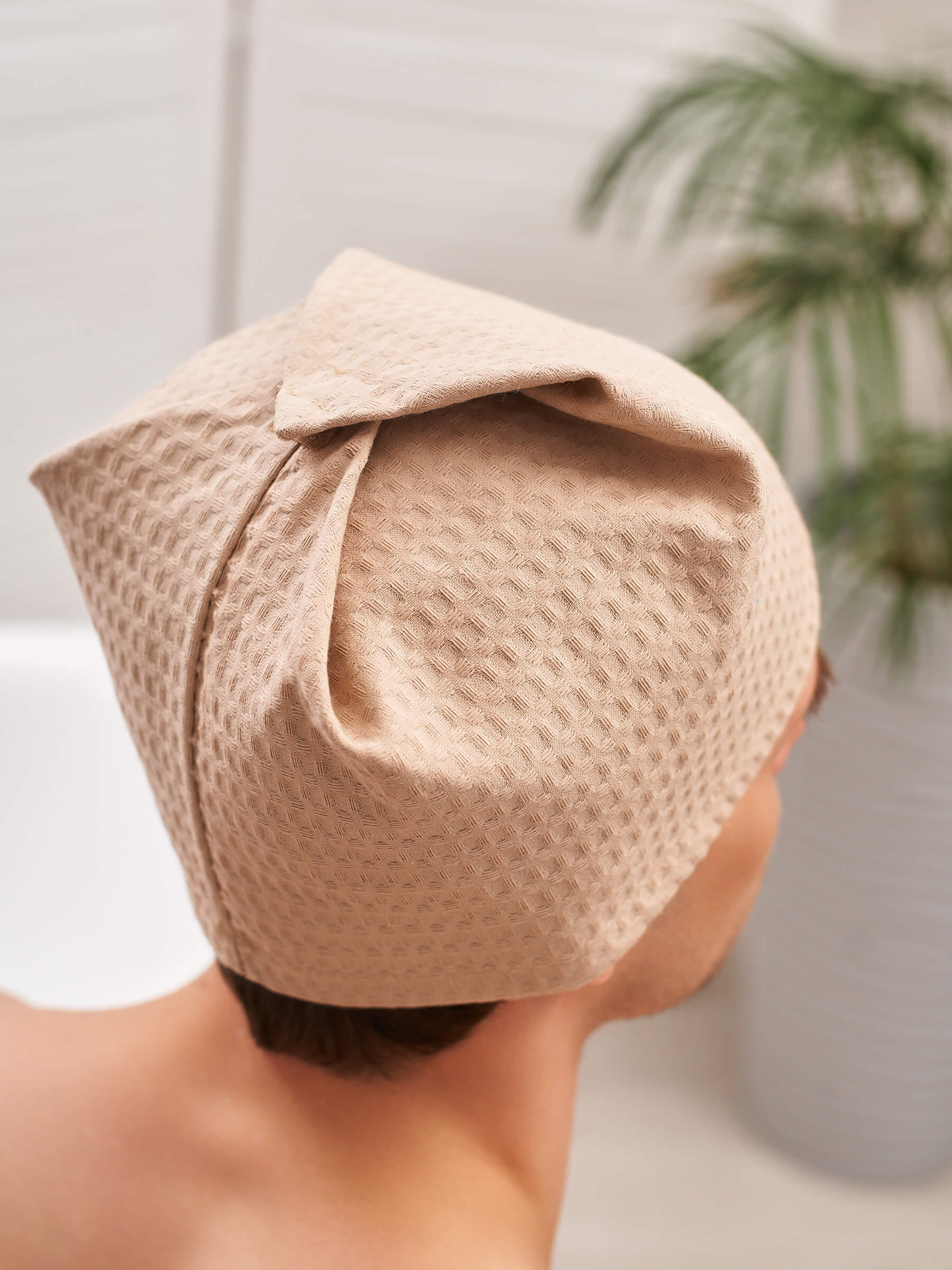 Шапочка удобно надевается на голову и фиксируется липучкой под нужный размер. Шапочка прекрасно защищает голову и волосы от перегрева , отлично впитывает влагу. Мужской набор для сауны широко используется в гостиничных комплексах, домах отдыха и санаториях, а так же вам пригодится для душа, бани, сауны, хамама, бассейна, SPA ,СПА, дома, пляжа и спортивного зала.