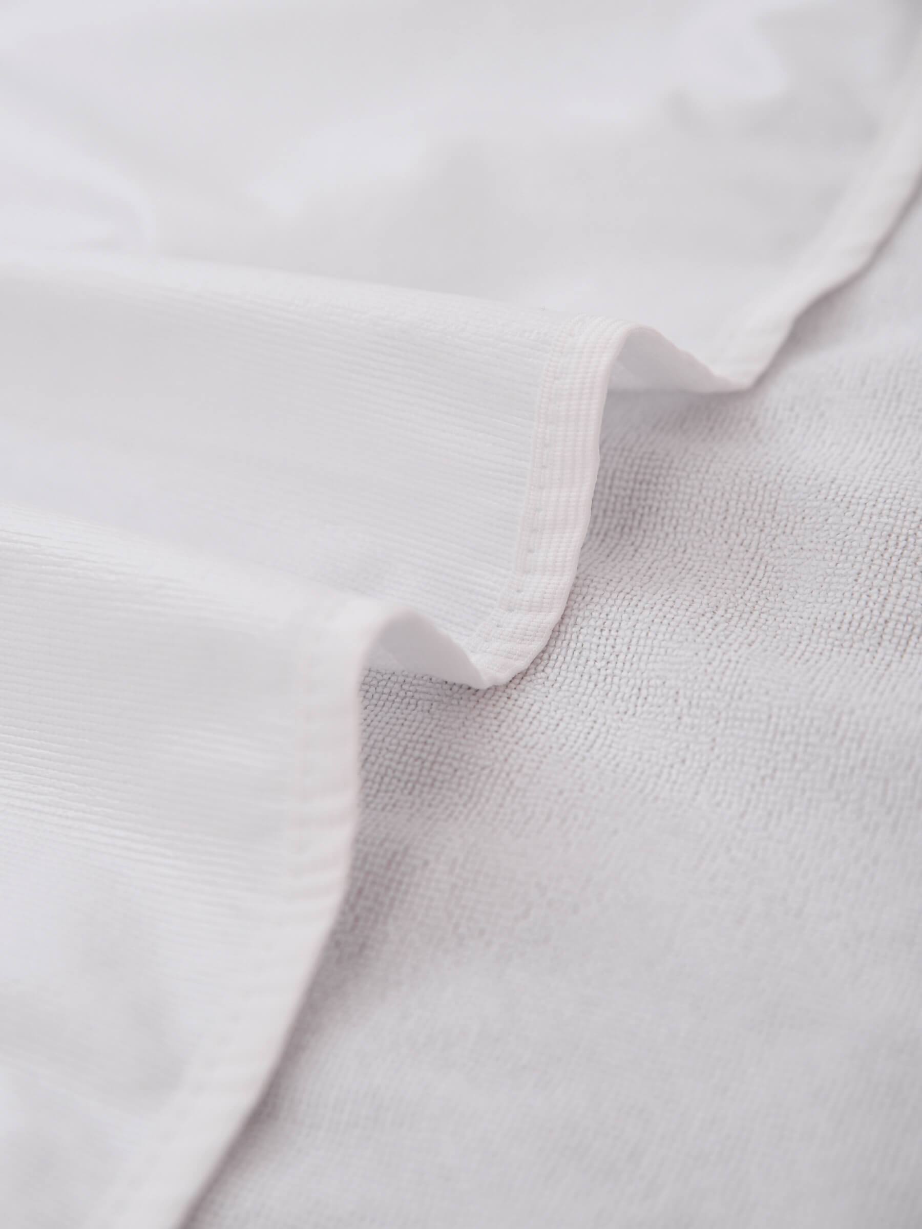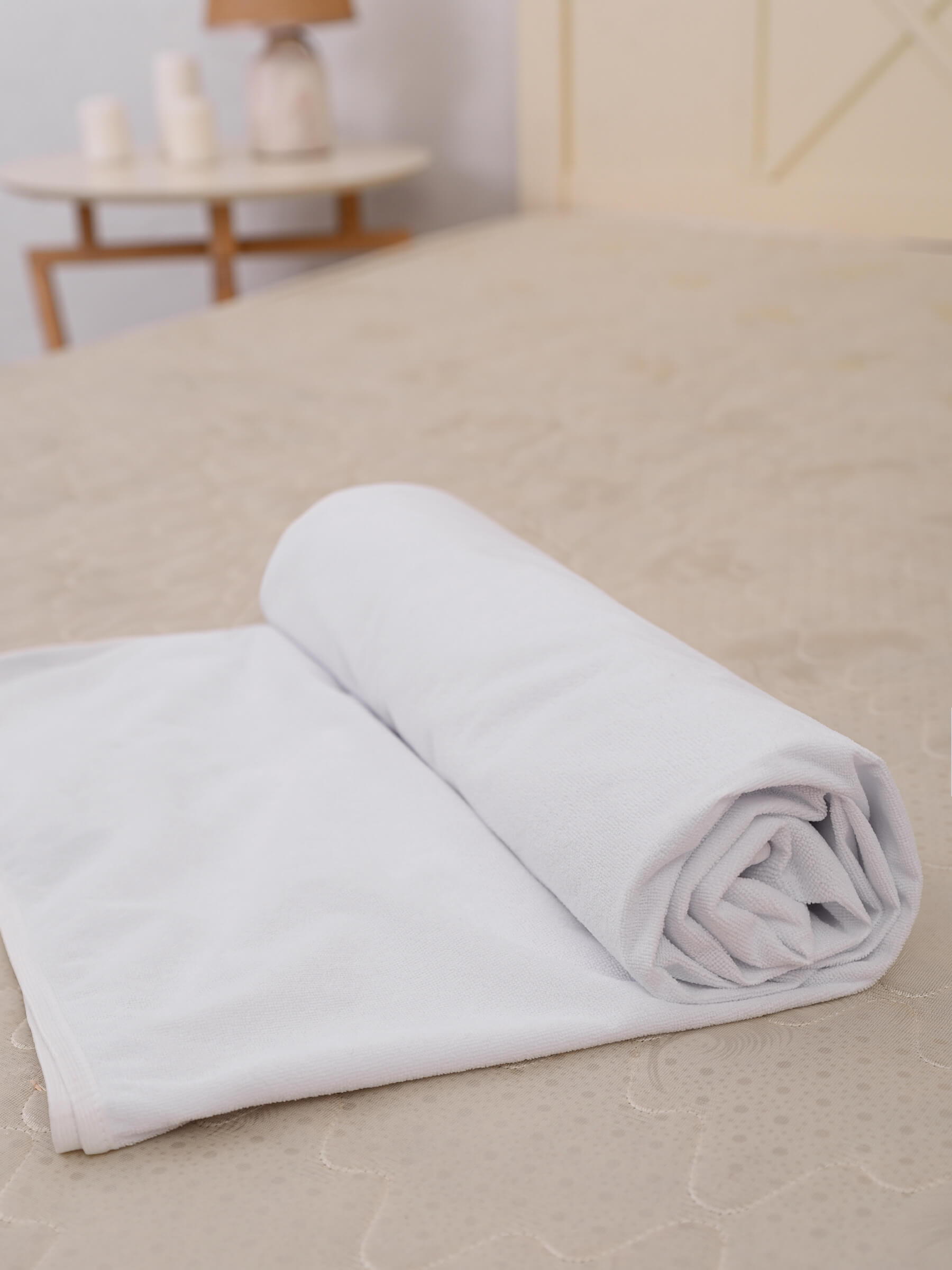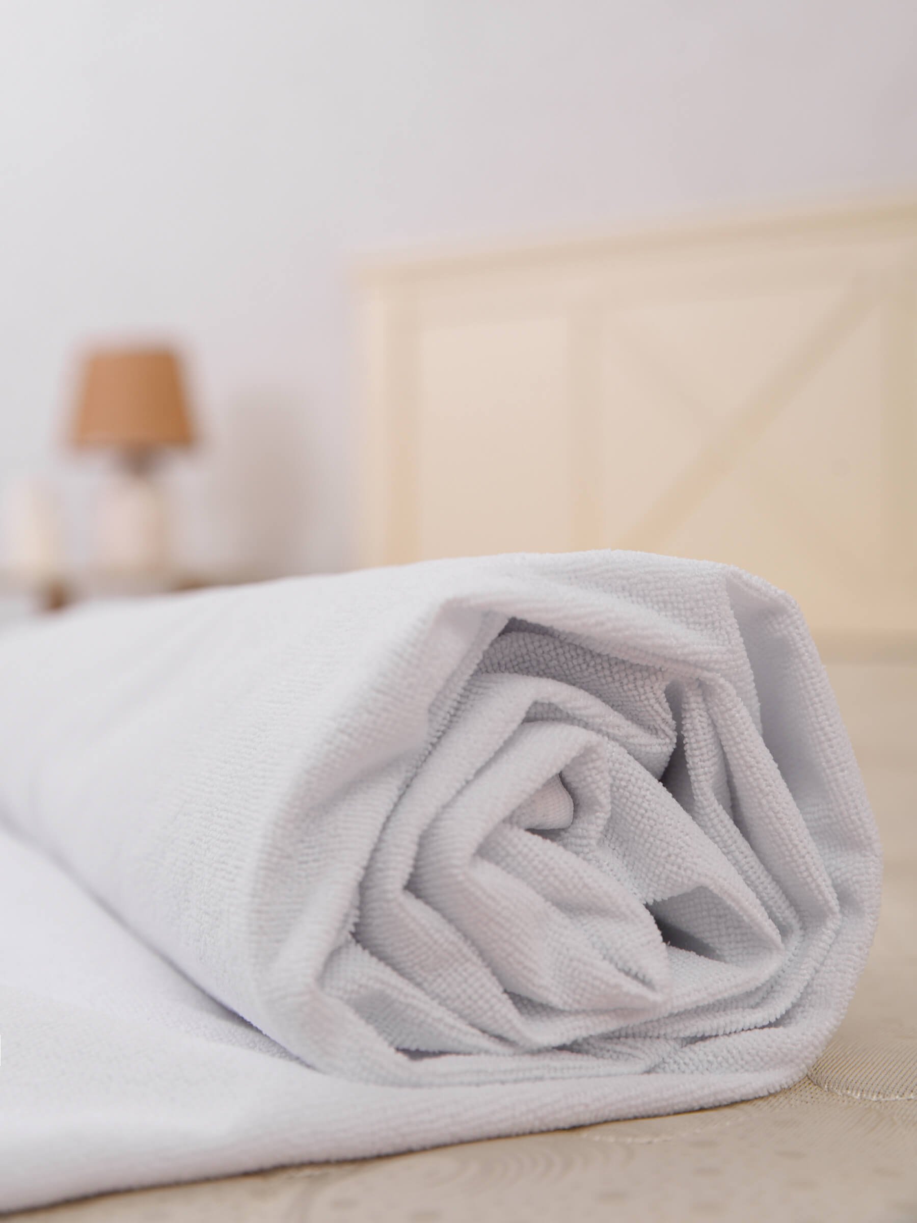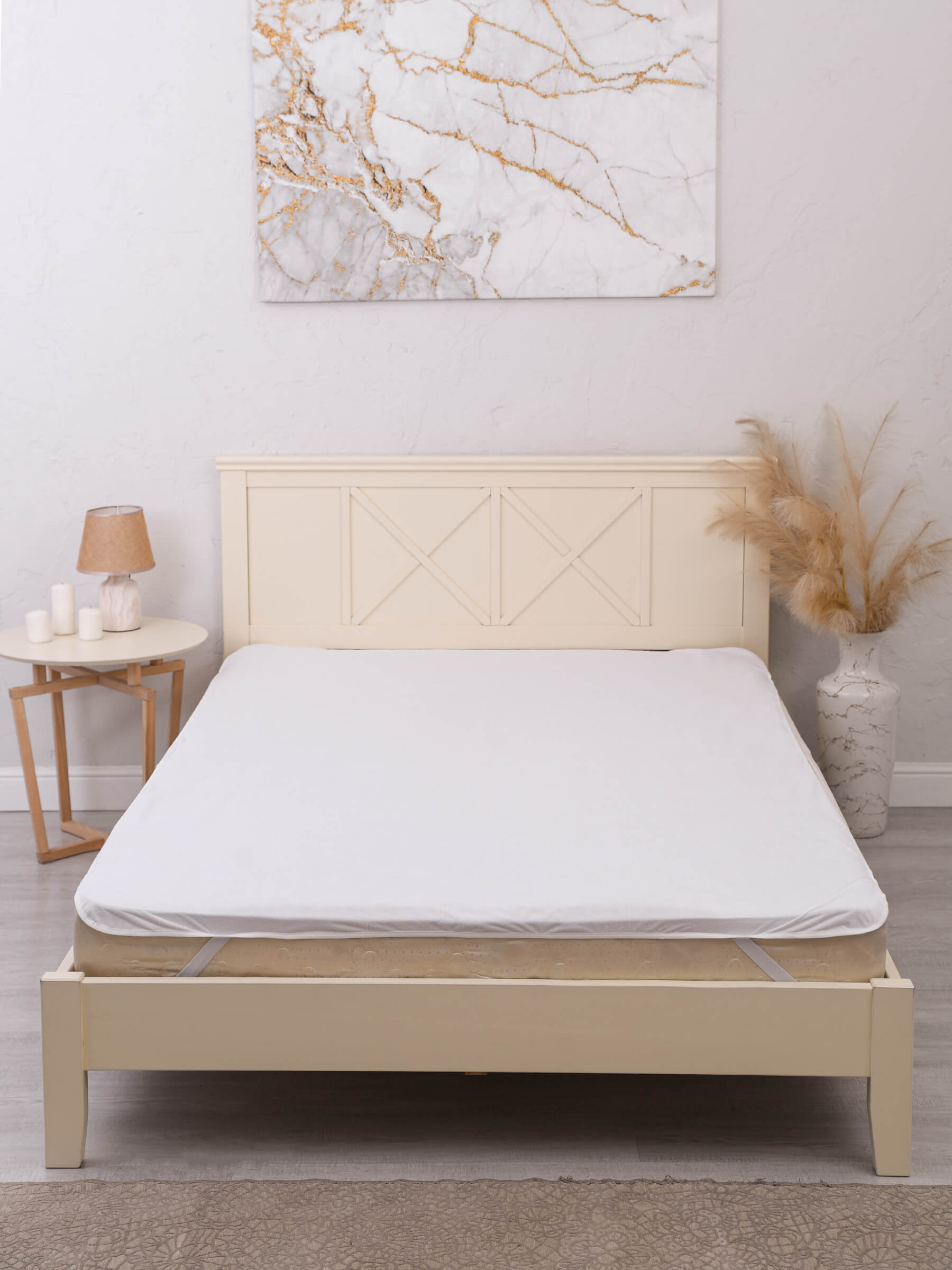 Наматрасник махровый непромокаемый, натяжной с резинкими по углам и антибактериальной пропиткой. Ткань - высококачественное махровое полотно (100% хлопок), на водоотталкивающей основе. Высота резинки от 10 до 30 см.