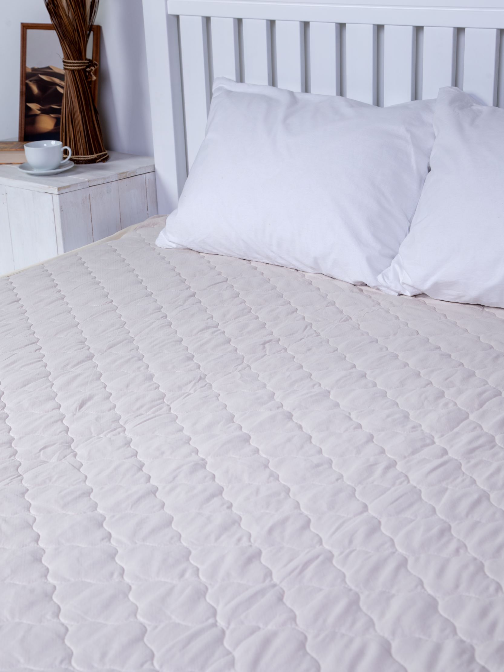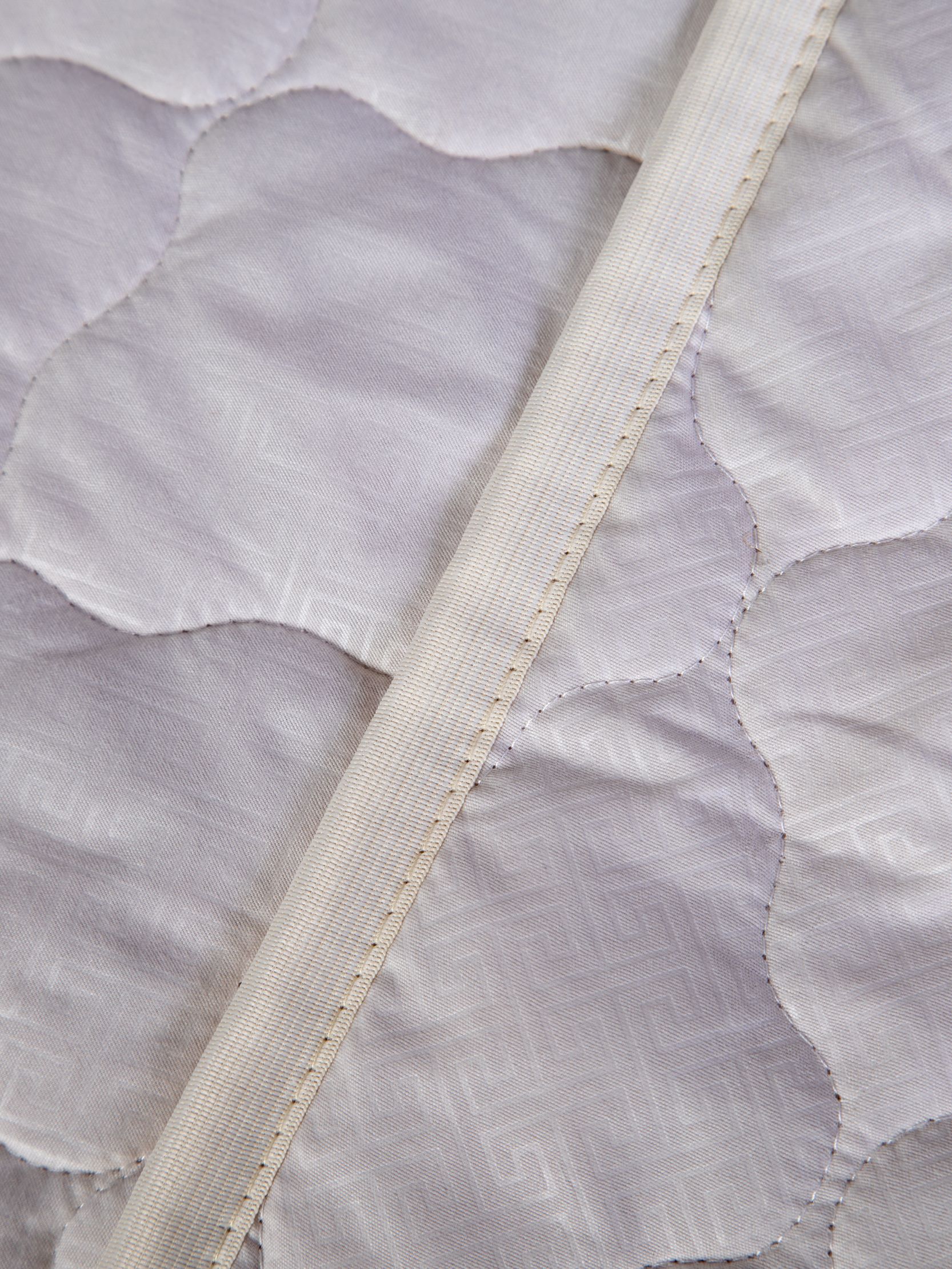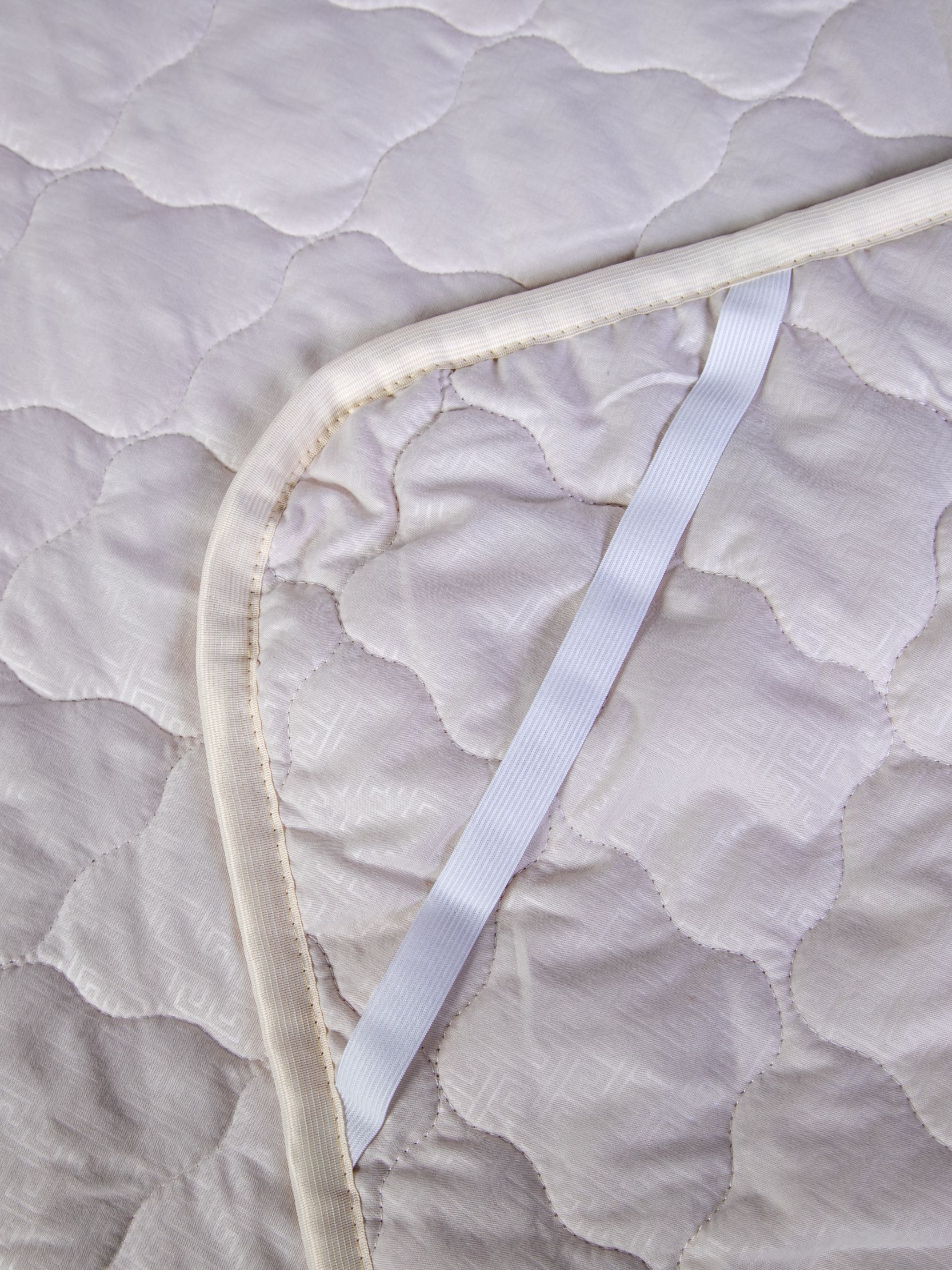 Наматрасник с наполнением из овечьей шерсти плотностью 150 гр/кв.м., окантован широкой тесьмой, по углам - резинка для фиксации на матрасе. Многоигольная стежка исключает смещение наполнителя внутри изделия, чехол устойчив к механическим воздействиям. Упаковка - тубус ПВХ с ручкой.