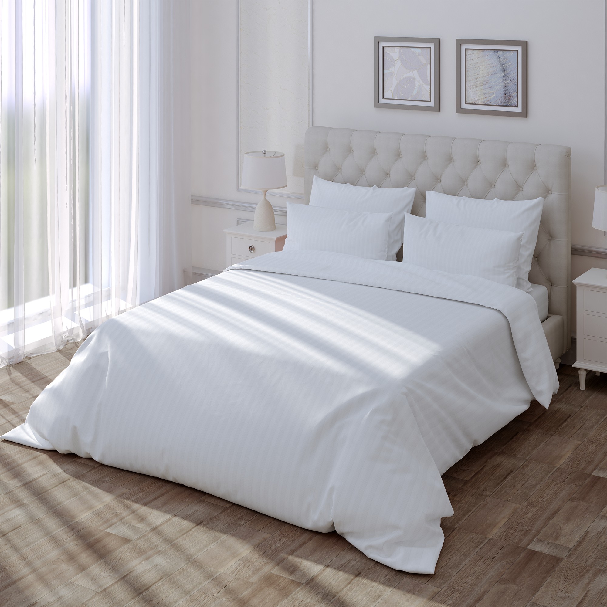По ощущениям страйп самый теплый из всех видов ткани, а всё из-за сложного переплетения: ткань удерживает воздух и сохраняет тепло, выделяемое телом во время сна. В России только мы производим страйп и наносим на него дополнительный рисунок.
