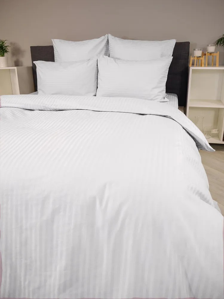 Пододеяльник из страйп-сатина белого цвета. Страйп-сатин из 100% хлопка, плотность ткани 130-135 гр/м2. Полосы 1*1 см.