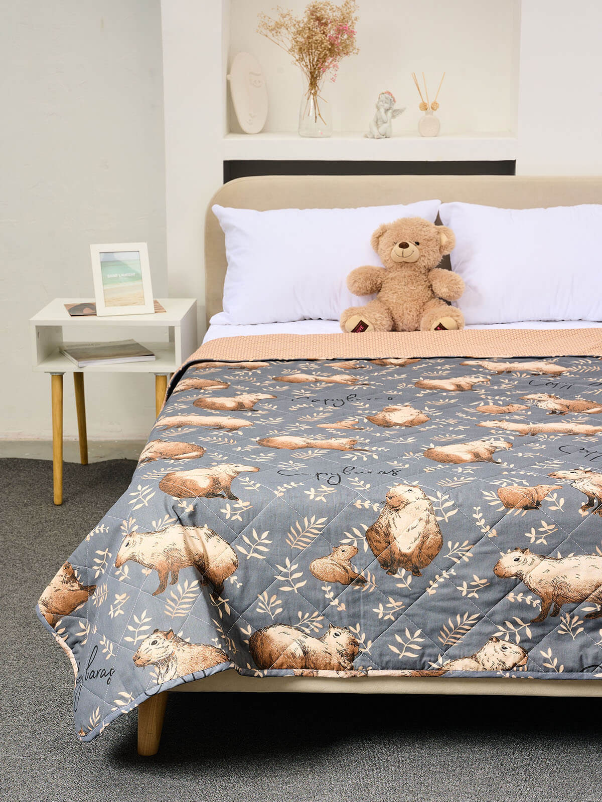 Представляем Вашему вниманию покрывало из поплина - материала давно полюбившегося людям за свои потребительские качества и оригинальные дизайны. В состав данного изделия входит 100% хлопок. Модель совершенно безопасно для здоровья и не вызывает аллергических реакций. Покрывало содержит наполнитель - синтепон, плотностью 80гр./кв.м, обладающий отличной воздухопроницаемостью и теплоизоляционными свойствами, отлично держит форму и не "сбивается" даже спустя продолжительный период эксплуатации. Покрывала приятное на ощупь и совершенно ничего не весит, что немаловажно для комфортного отдыха. Благодаря оригинальному дизайну отлично впишется в любой интерьер.