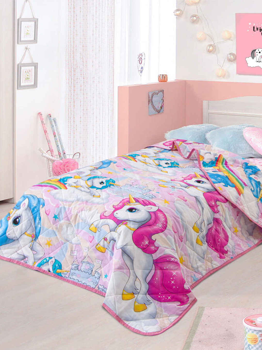 Представляем Вашему вниманию детское покрывало из поплина - материала давно полюбившегося людям за свои потребительские качества. Материал абсолютно натурален и изготавливается из 100% хлопка. Модель совершенно безопасна для здоровья и не вызывает аллергических реакций. Покрывало содержит наполнитель - синтепон, плотностью 80 гр./кв.м, обладающий отличной воздухопроницаемостью и теплоизоляционными свойствами, отлично держит форму и не "сбивается" даже спустя продолжительный период эксплуатации. Покрывало приятное на ощупь и обладает небольшой массой, что немаловажно для комфортного отдыха. Благодаря оригинальному дизайну отлично впишется в любой интерьер.