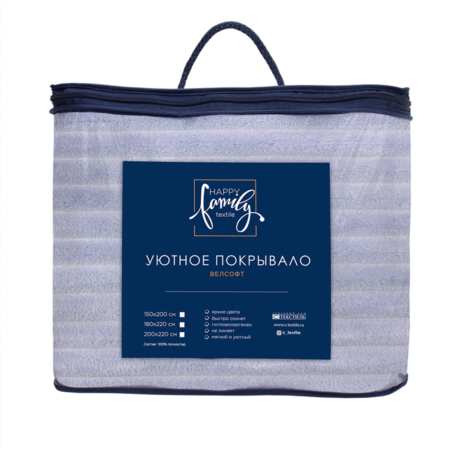 Покрывало Велсофт HAPPY FAMIIY- удобная и практичная вещь. Мягкое, приятное на ощупь, невесомое, его можно использовать в качестве пледа. Оно очень хорошо стирается и мгновенно высыхает, не теряя при этом ни формы, ни яркости расцветки. Достоинства: можно стирать в стиральной машине, не линяет.