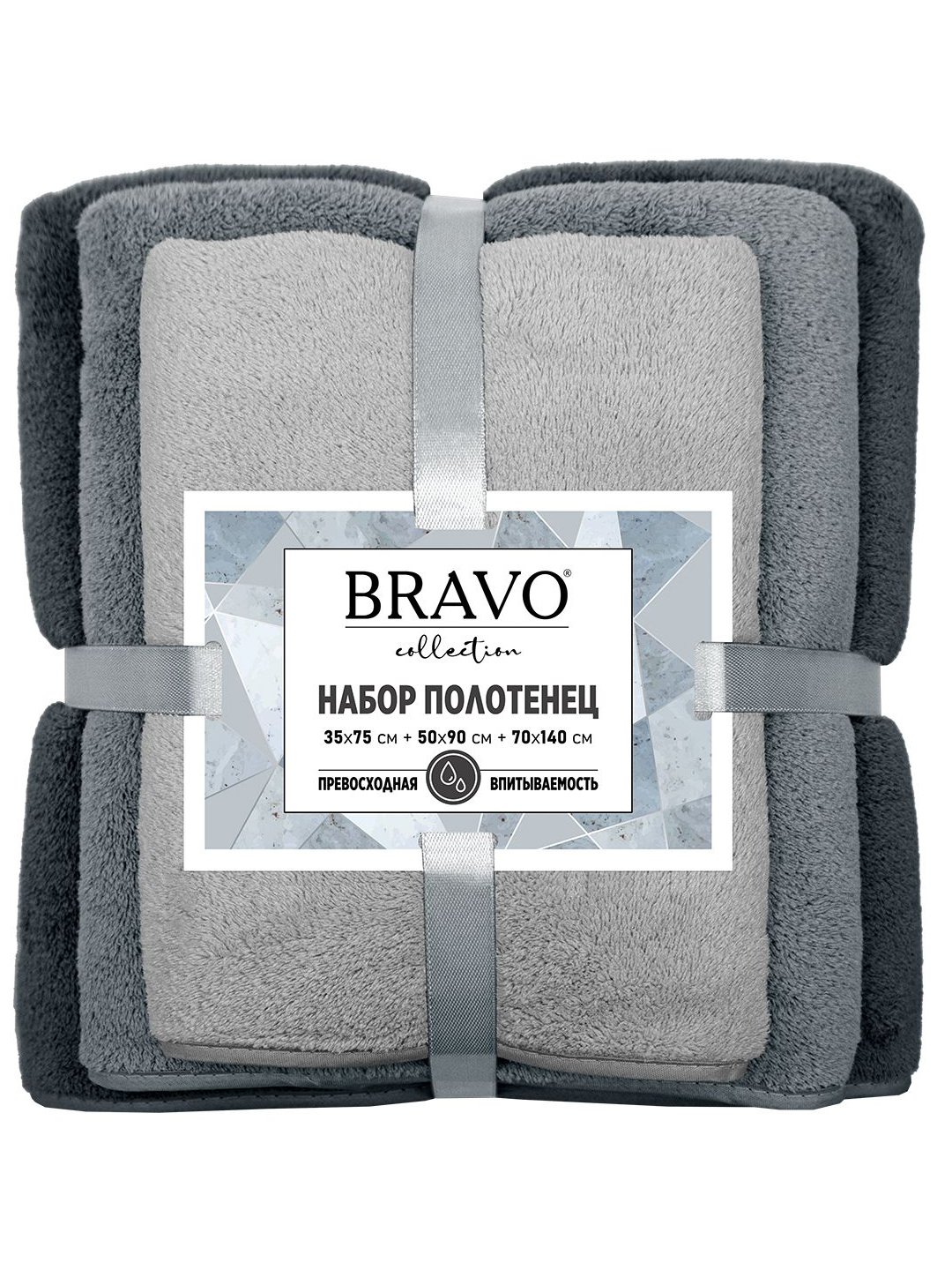 В набор входит три полотенца: 35*75, 50*90 и 70*140 см.