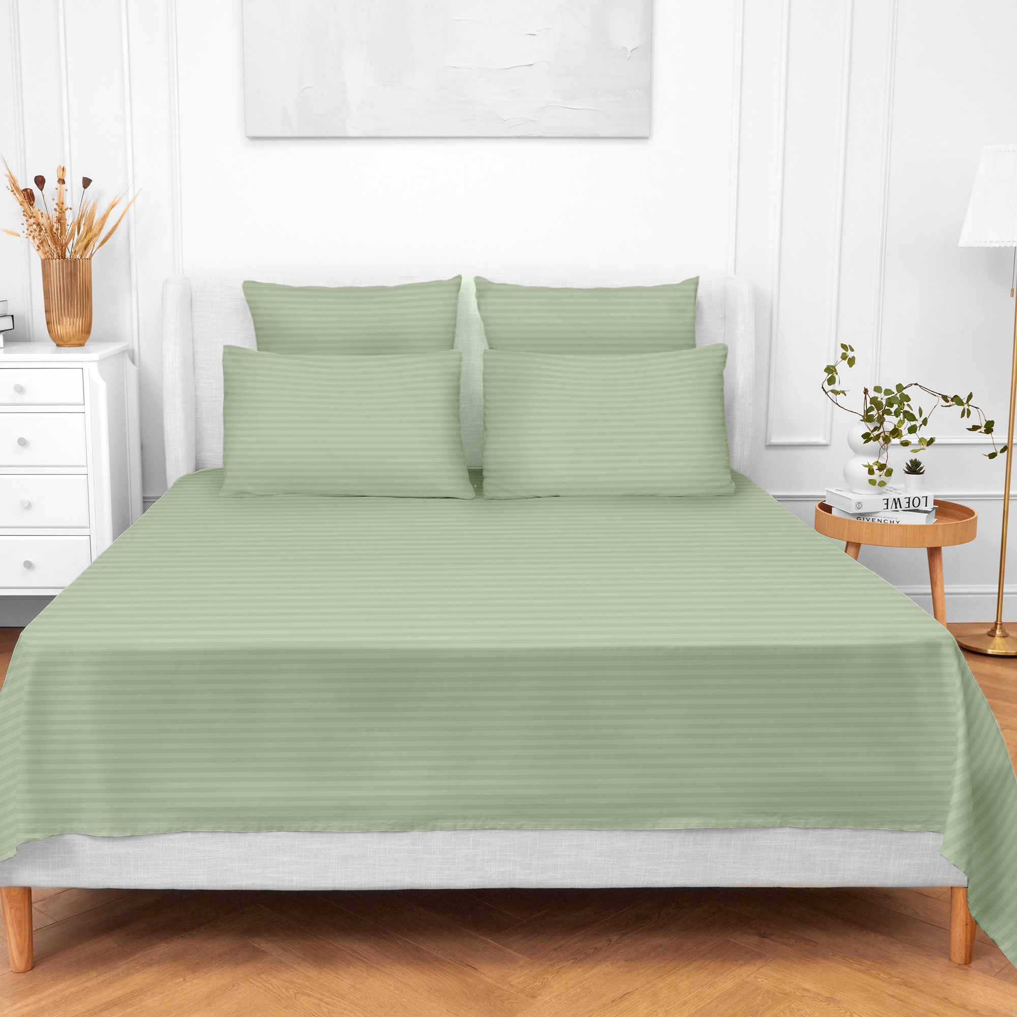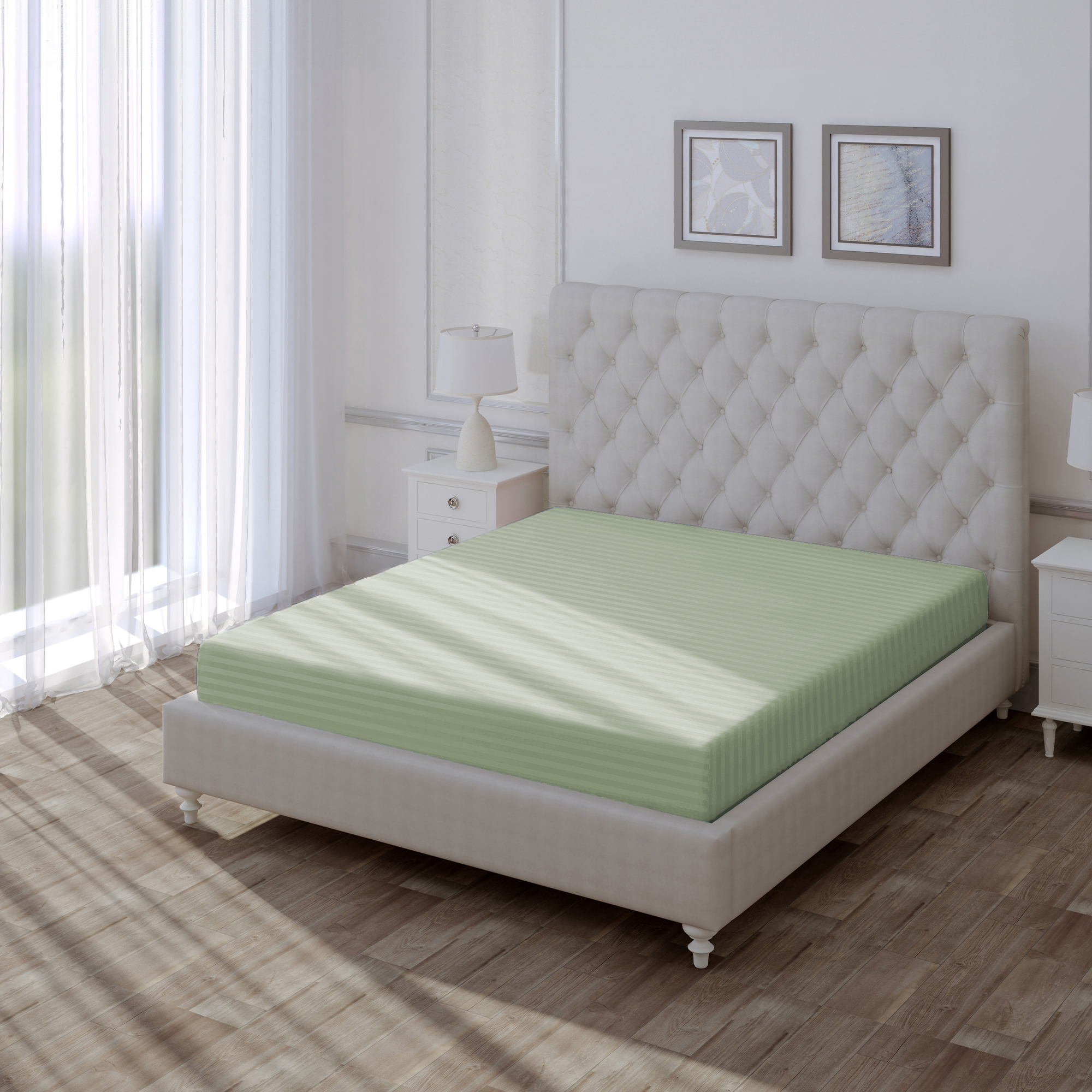 ВОЛШЕБНАЯ НОЧЬ — коллекция постельного белья для современных и креативных людей, которые следят за модой и хотят подчеркнуть свою индивидуальность. Интерьер спальни — это дополнительная возможность выразить себя и дать волю фантазии. Простыня из поплина с дизайном Smoke Green — это комфорт и стиль. Мягкая ткань обеспечивает приятный сон, а современный дизайн в виде полос страйпа подчеркнет ваш изысканный вкус. Поплин — это легкая и мягкая ткань, которая идеально подходит для постельного белья. Она обладает высокой воздухопроницаемостью, обеспечивая комфортный сон в любое время года. Материал гипоаллергенен и безопасен для чувствительной кожи. Поплин также устойчив к выцветанию, сохраняя яркость цветов после многократных стирок.