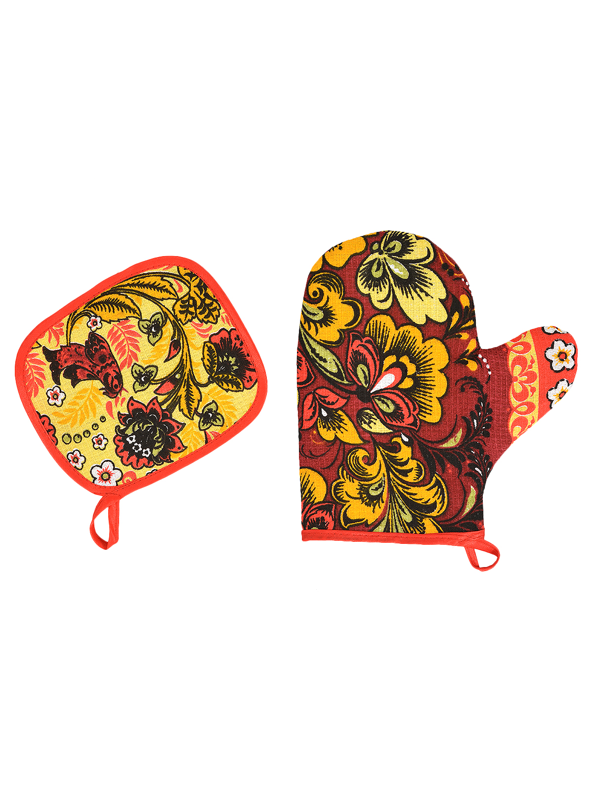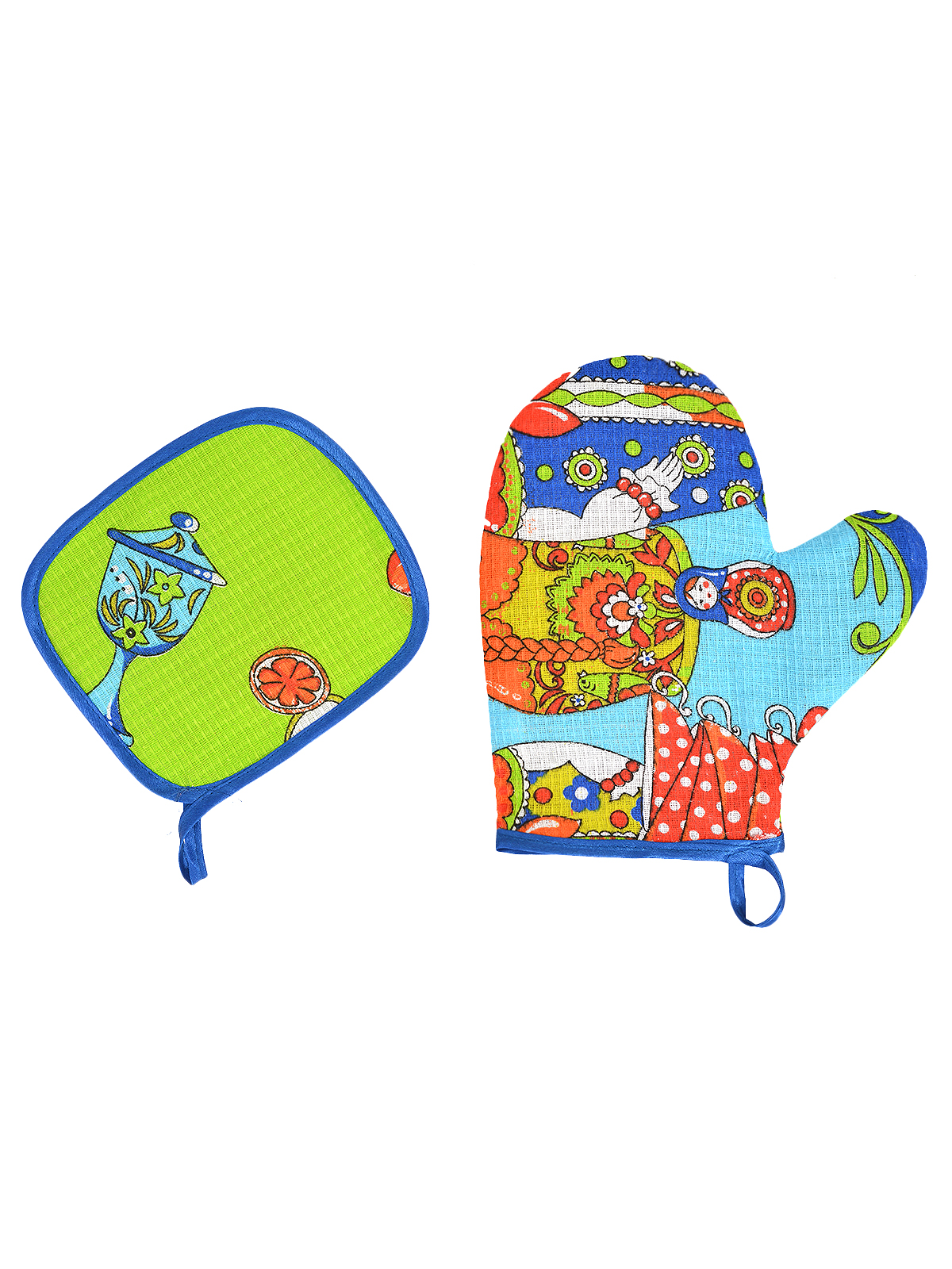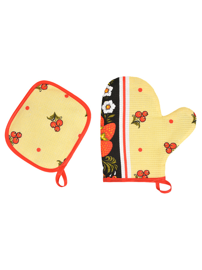 В наборе варежка и прихватка из хлопкового вафельного полотна.