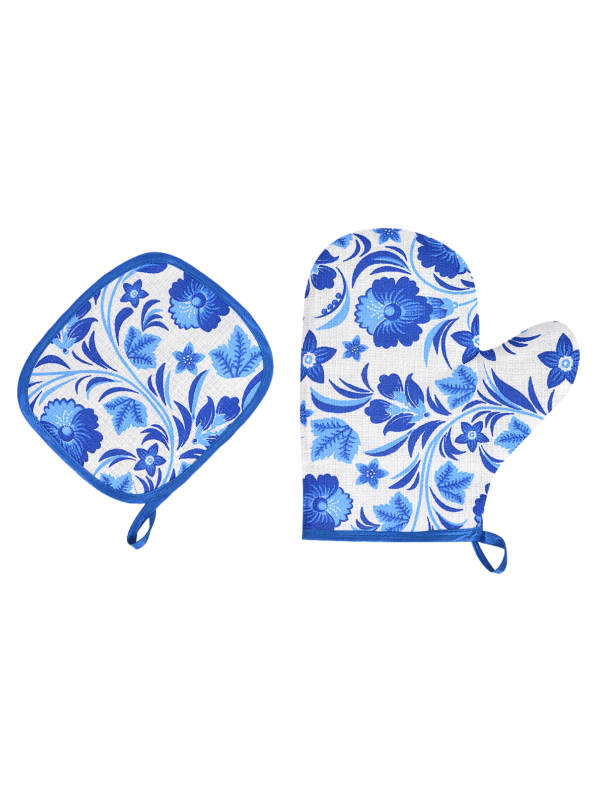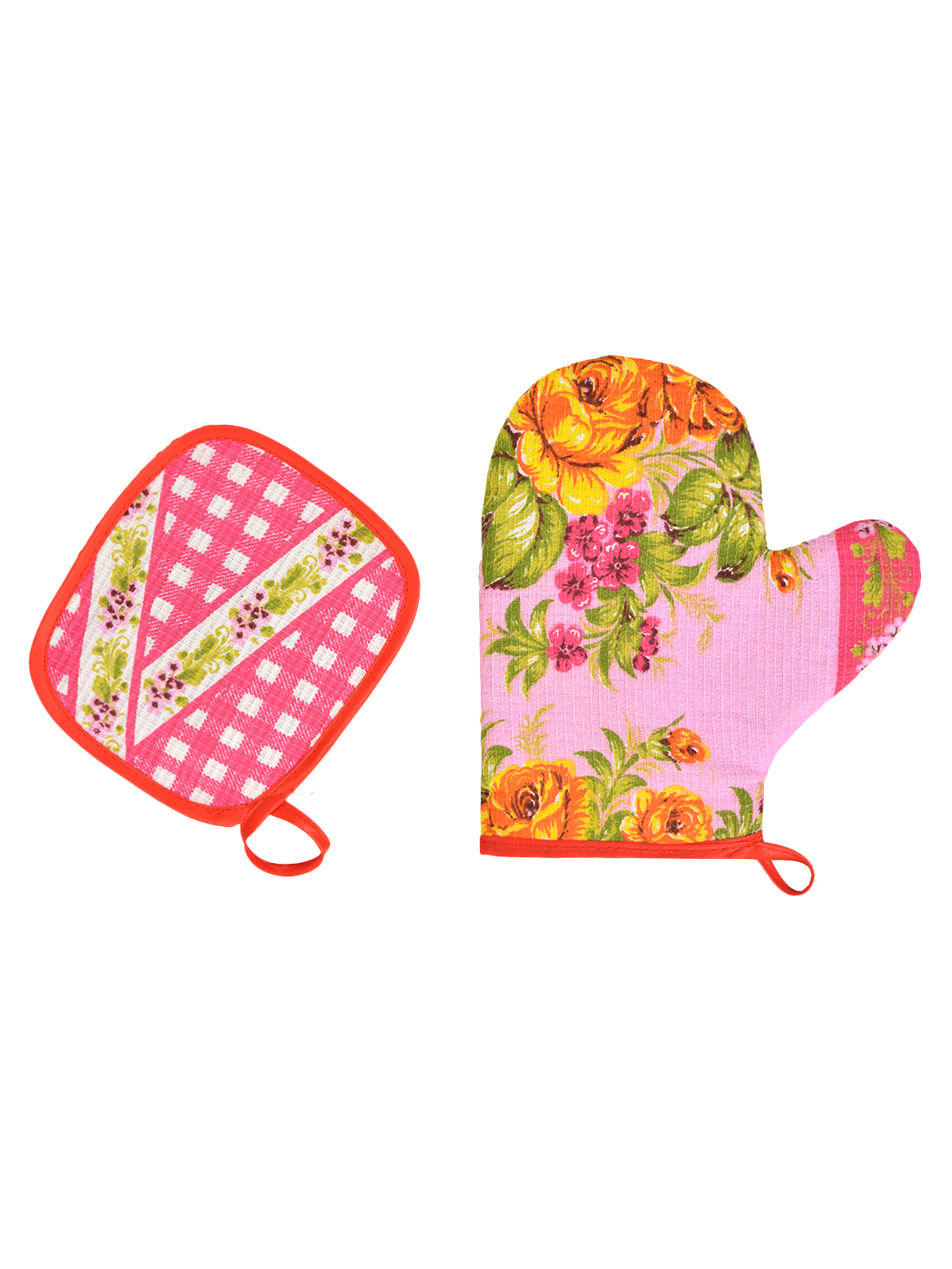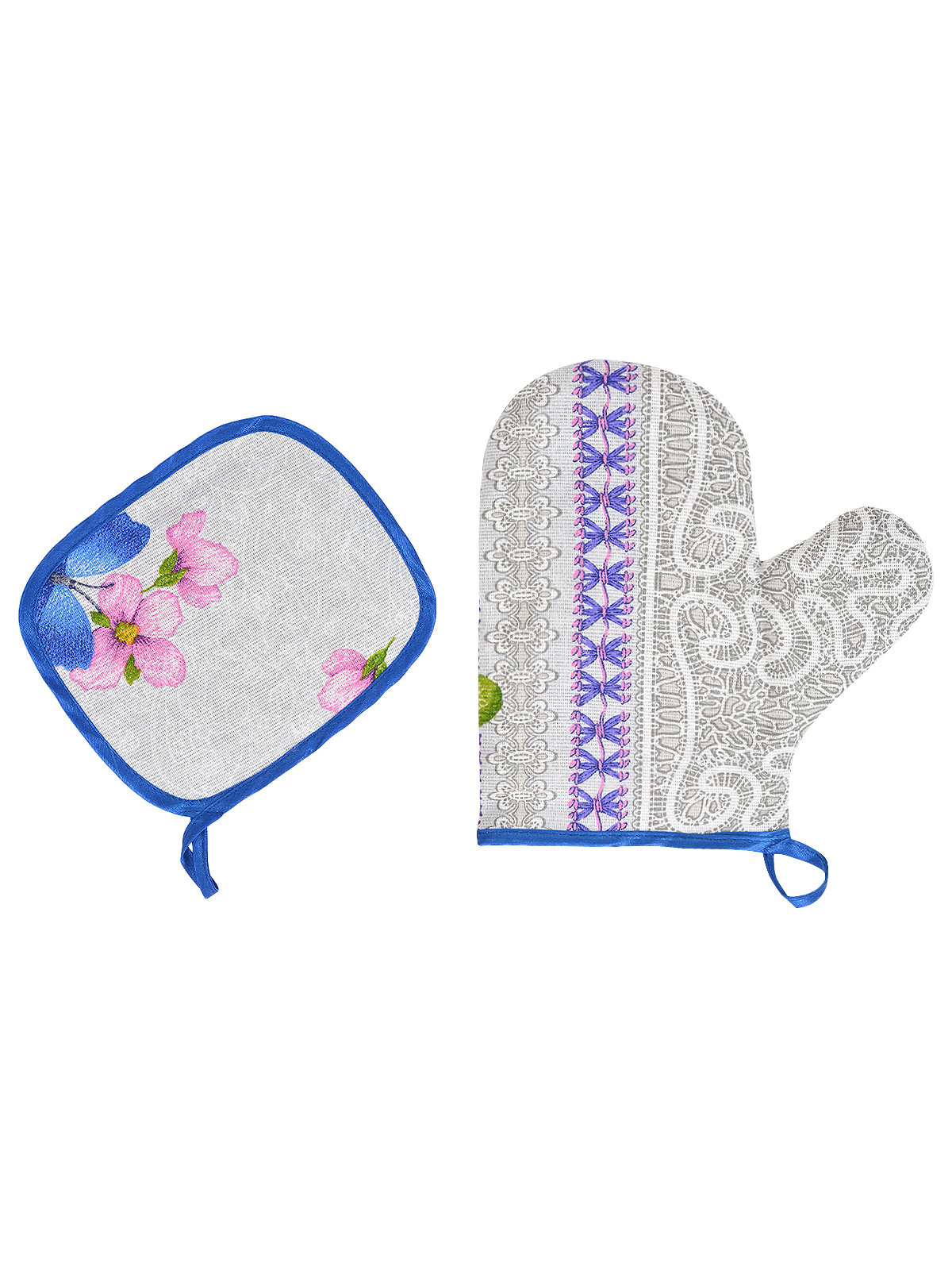 В наборе варежка и прихватка из хлопкового вафельного полотна.
