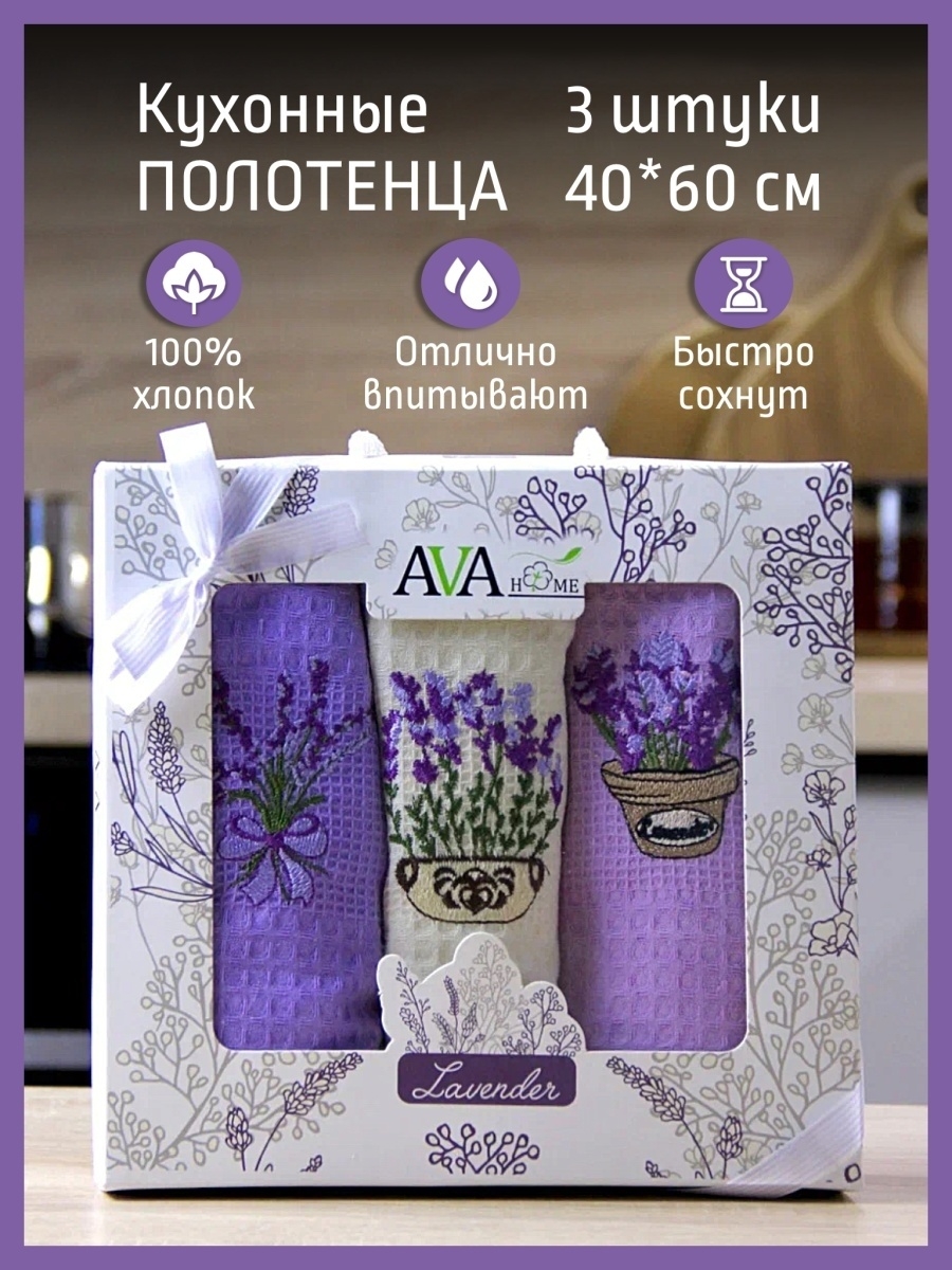 В набор входит 3 полотенца размером 40*60 см, их можно использовать для вытирания посуды, рук или поверхностей.