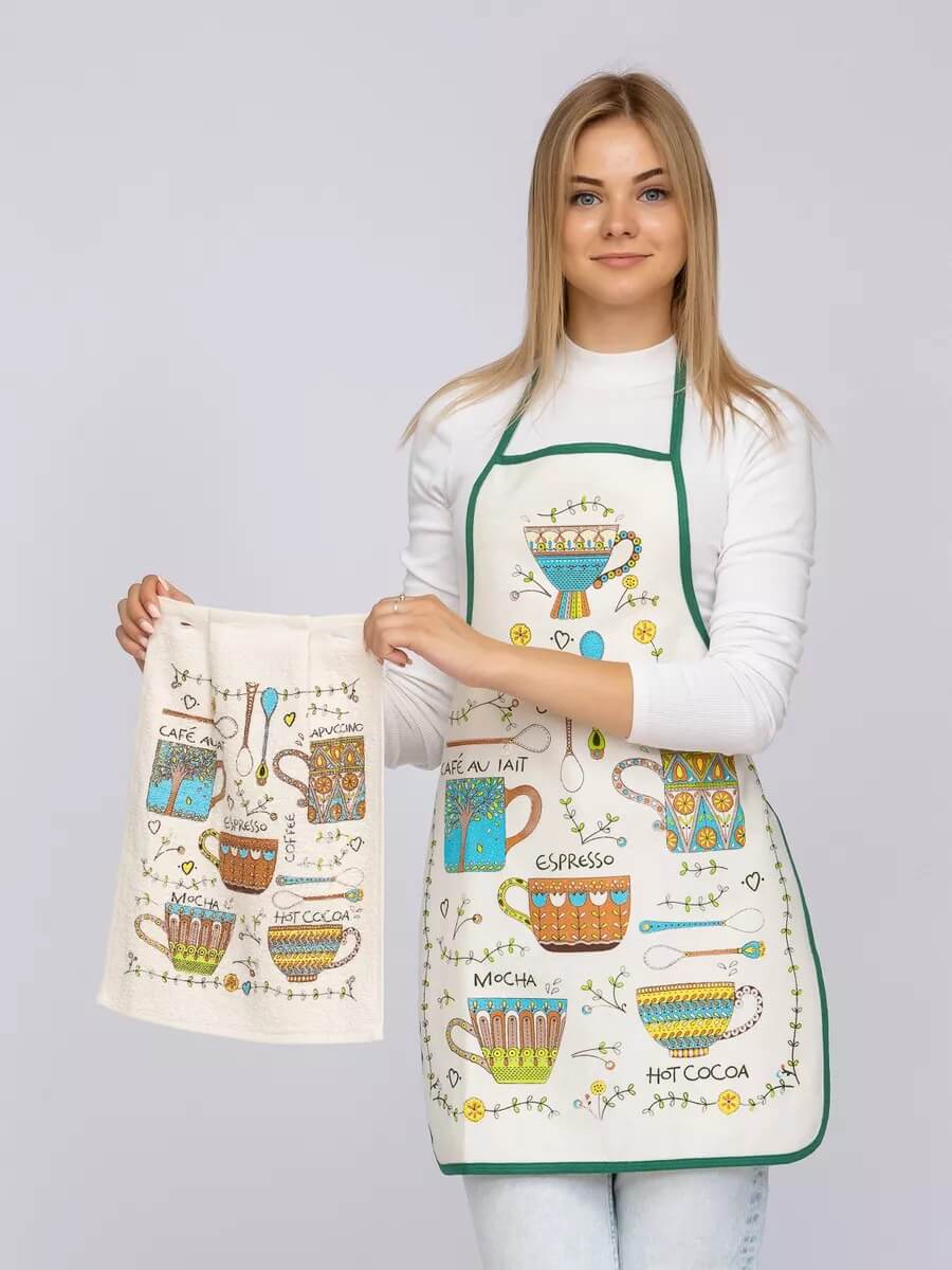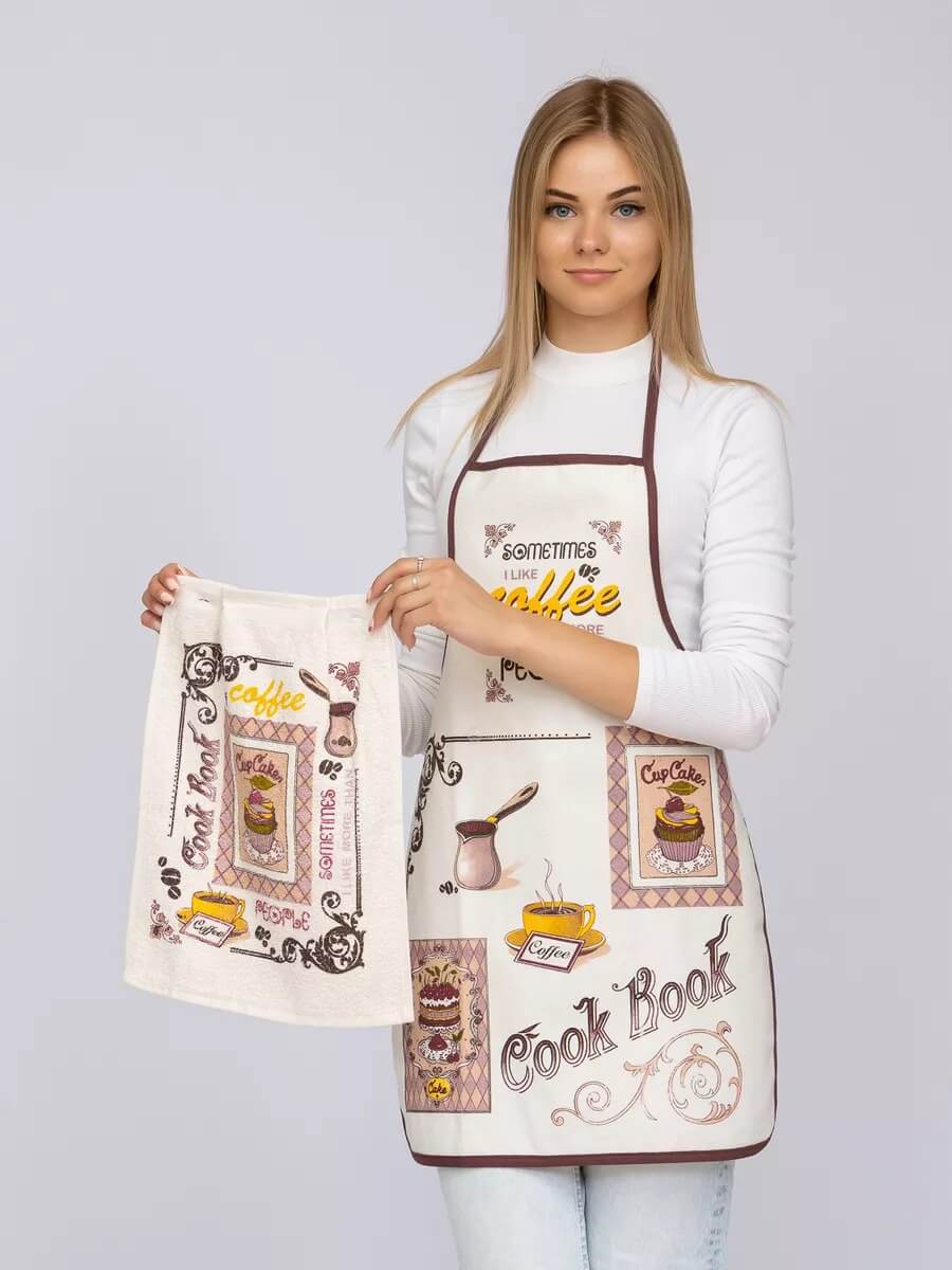 Фартук и полотенце выполнены из 100% хлопка, а внутренняя сторона фартука для готовки имеет непромокаемый слой.