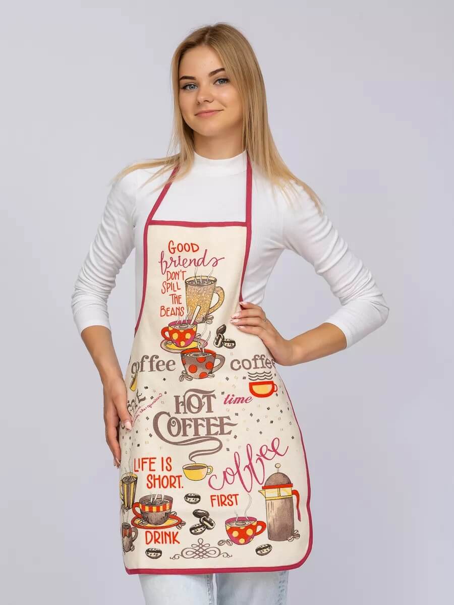 Фартук выполнен из 100% хлопка, а внутренняя сторона фартука для готовки имеет непромокаемый слой.