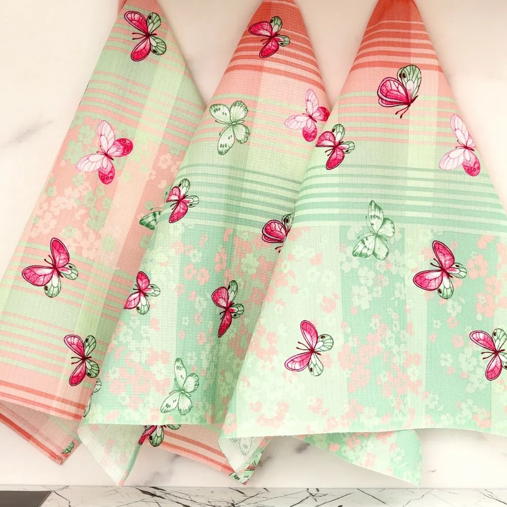 Набор вафельных полотенец из 100% хлопка замечательно впитывают влагу, не оставляют ворса и разводов на посуде, не линяют и не деформируются при многократных стирках. Благодаря плотности 165 гр/м2, полотенца легкие, быстро высыхают и не накапливают запахи, что очень удобно при использовании на кухне.