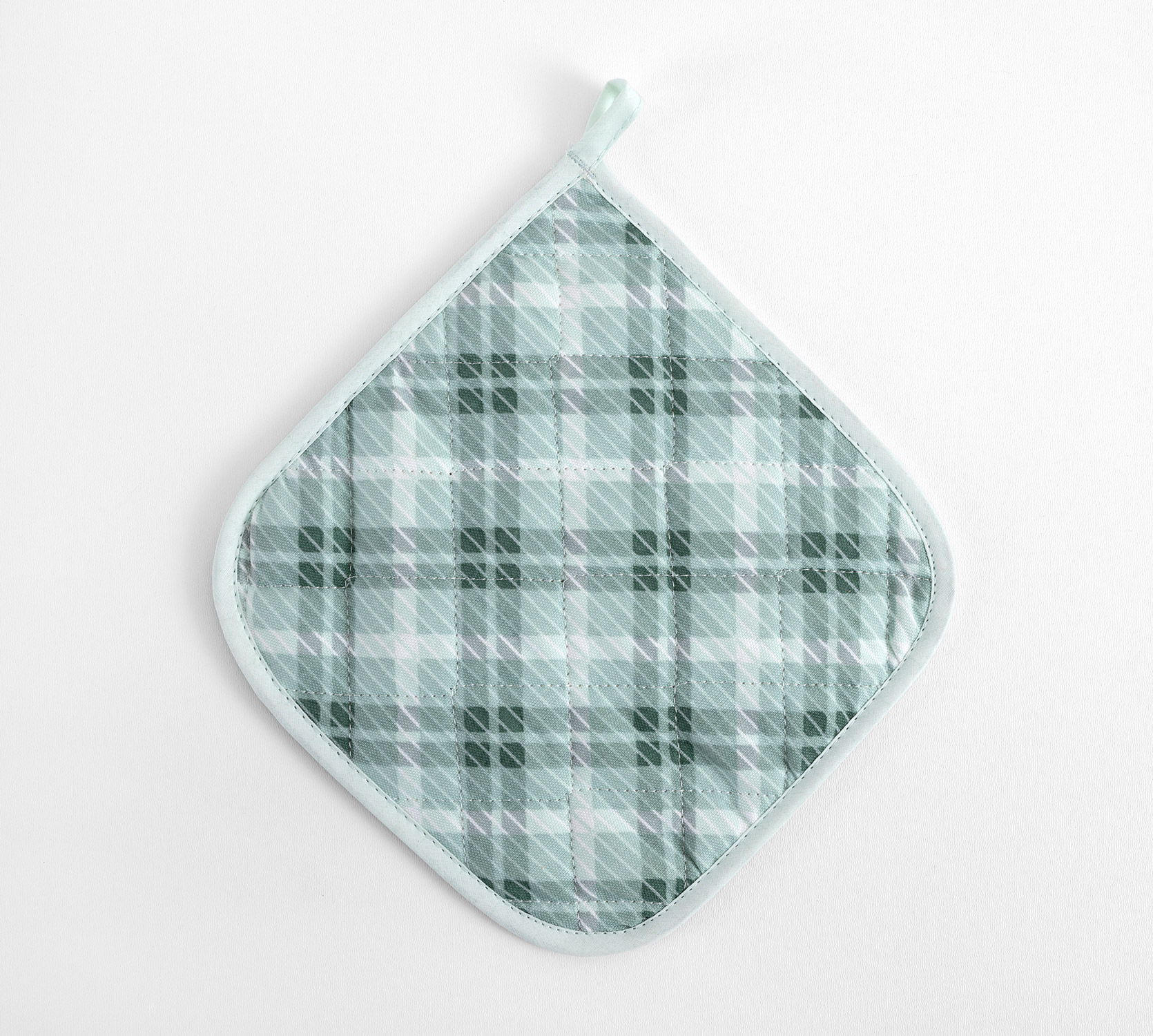 Прихватка и салфетка выполнены из такой же ткани, уплотнитель из синтепона 100 мм защищает от высоких температур.