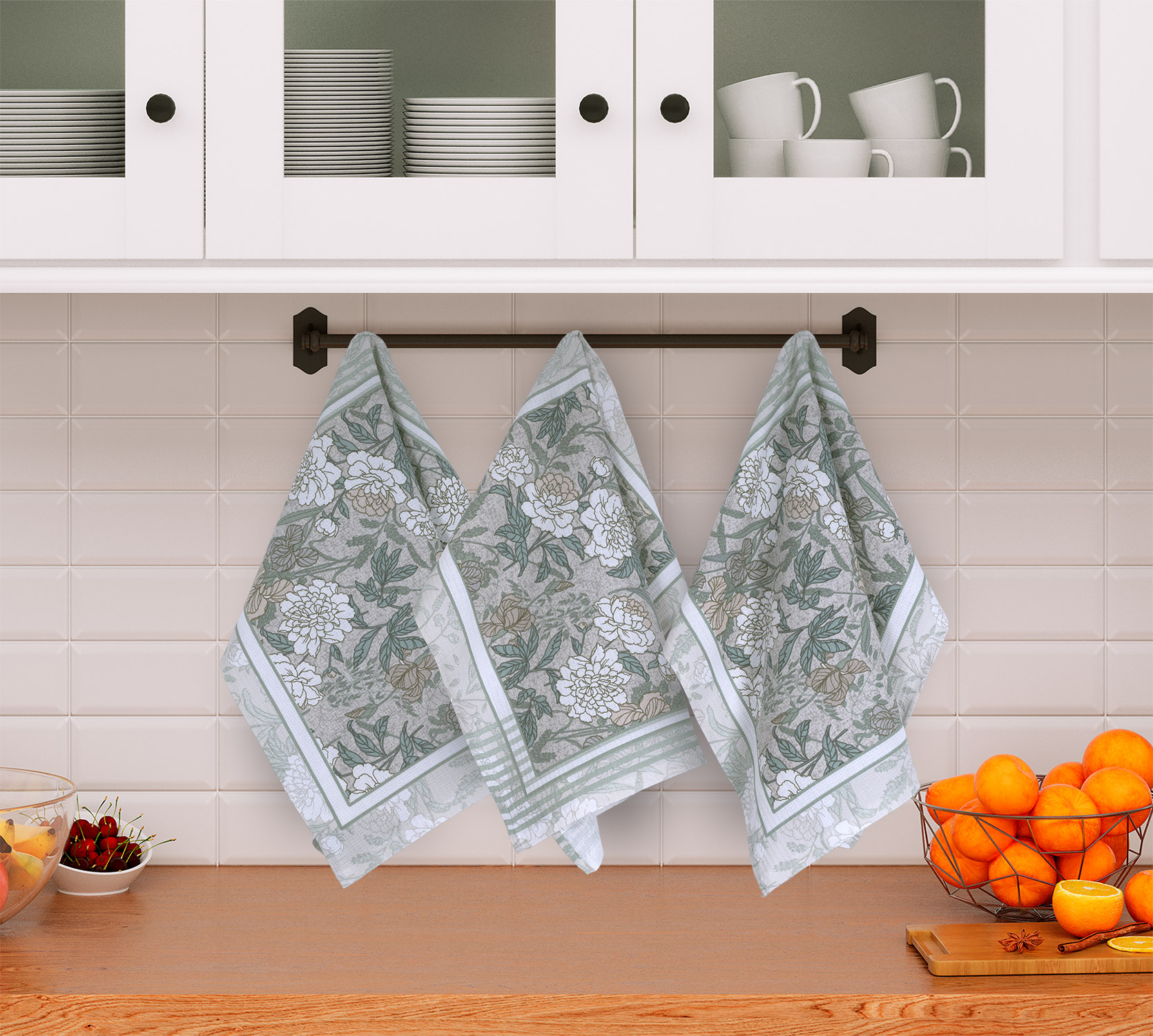 Набор вафельных полотенец из 100% хлопка замечательно впитывают влагу, не оставляют ворса и разводов на посуде, не линяют и не деформируются при многократных стирках. Благодаря плотности 165 гр/м2, полотенца легкие, быстро высыхают и не накапливают запахи, что очень удобно при использовании на кухне.