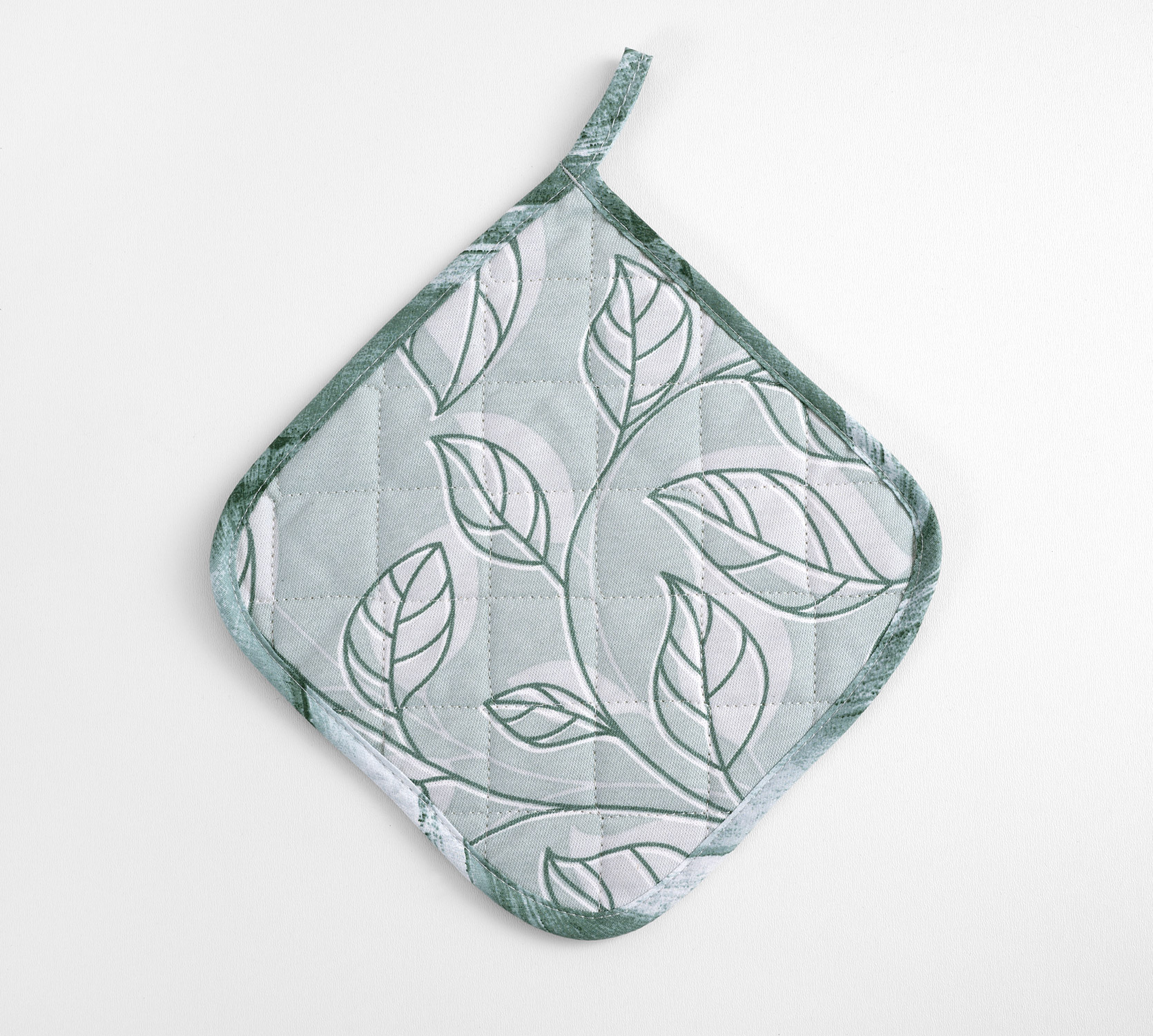 Прихватки стеганные квадратной формы размером 20 см x 20 см. Прихватки сшиты из ткани рогожка. Наполнение прихваток - синтепон. Прихватки из рогожки послужат украшением вашей кухни.
