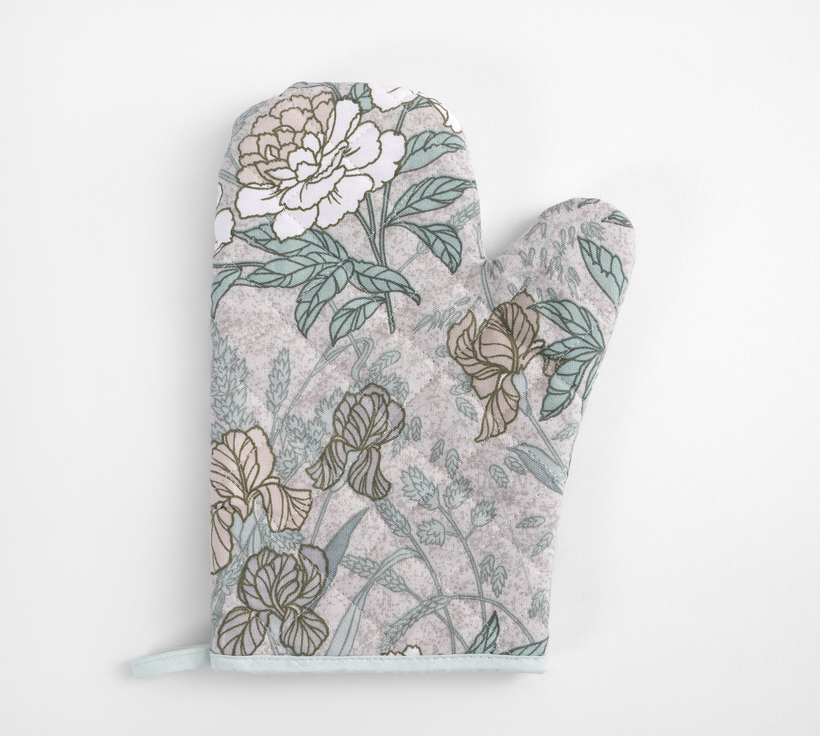Прихватка-рукавица стеганная размером 28 см x 19 см. Наполнение рукавицы - синтепон. Прихватка-рукавица из рогожки послужит украшением вашей кухни.