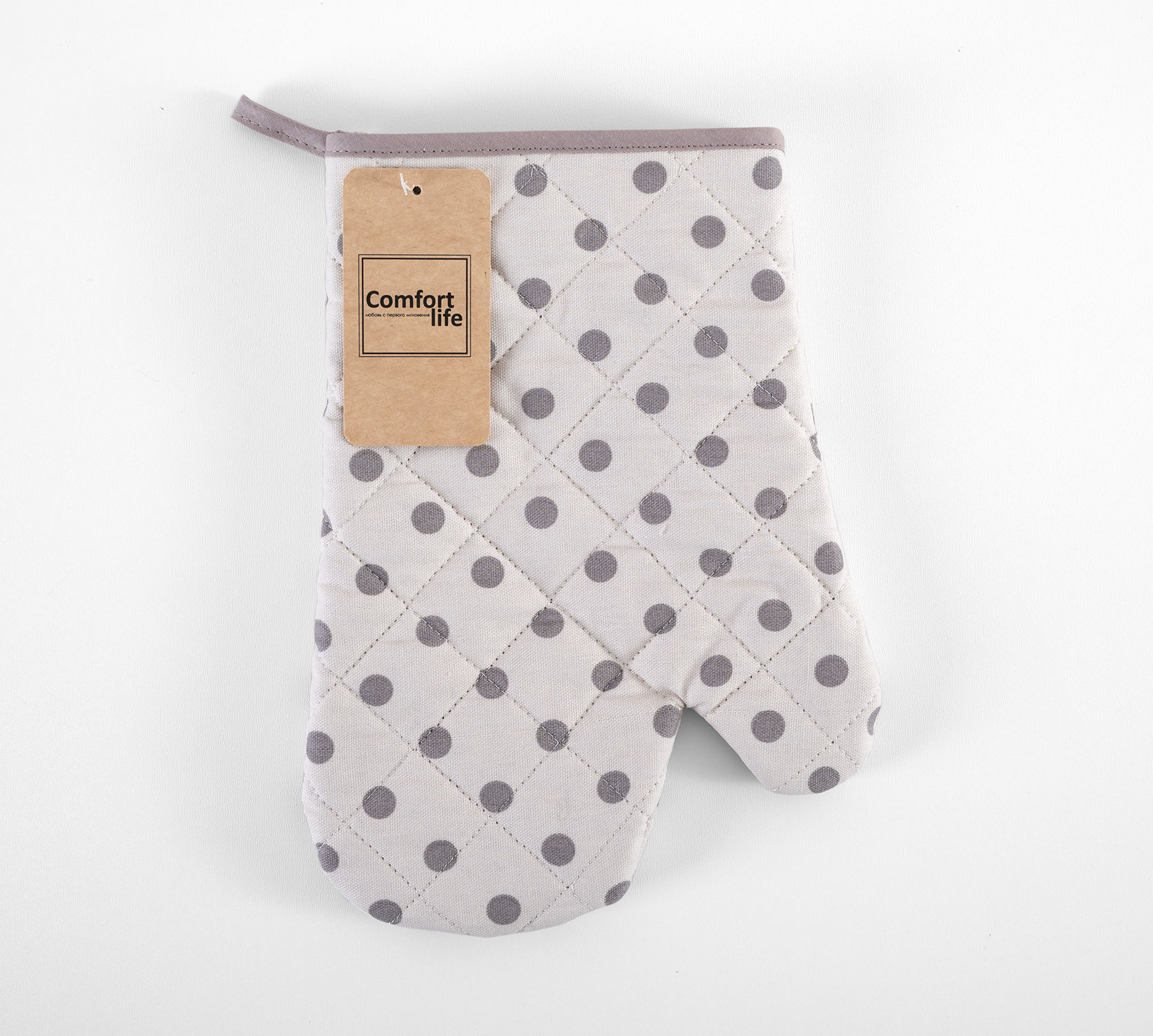 Прихватка-рукавица стеганная размером 28 см x 19 см. Наполнение рукавицы - синтепон. Прихватка-рукавица из рогожки послужит украшением вашей кухни.