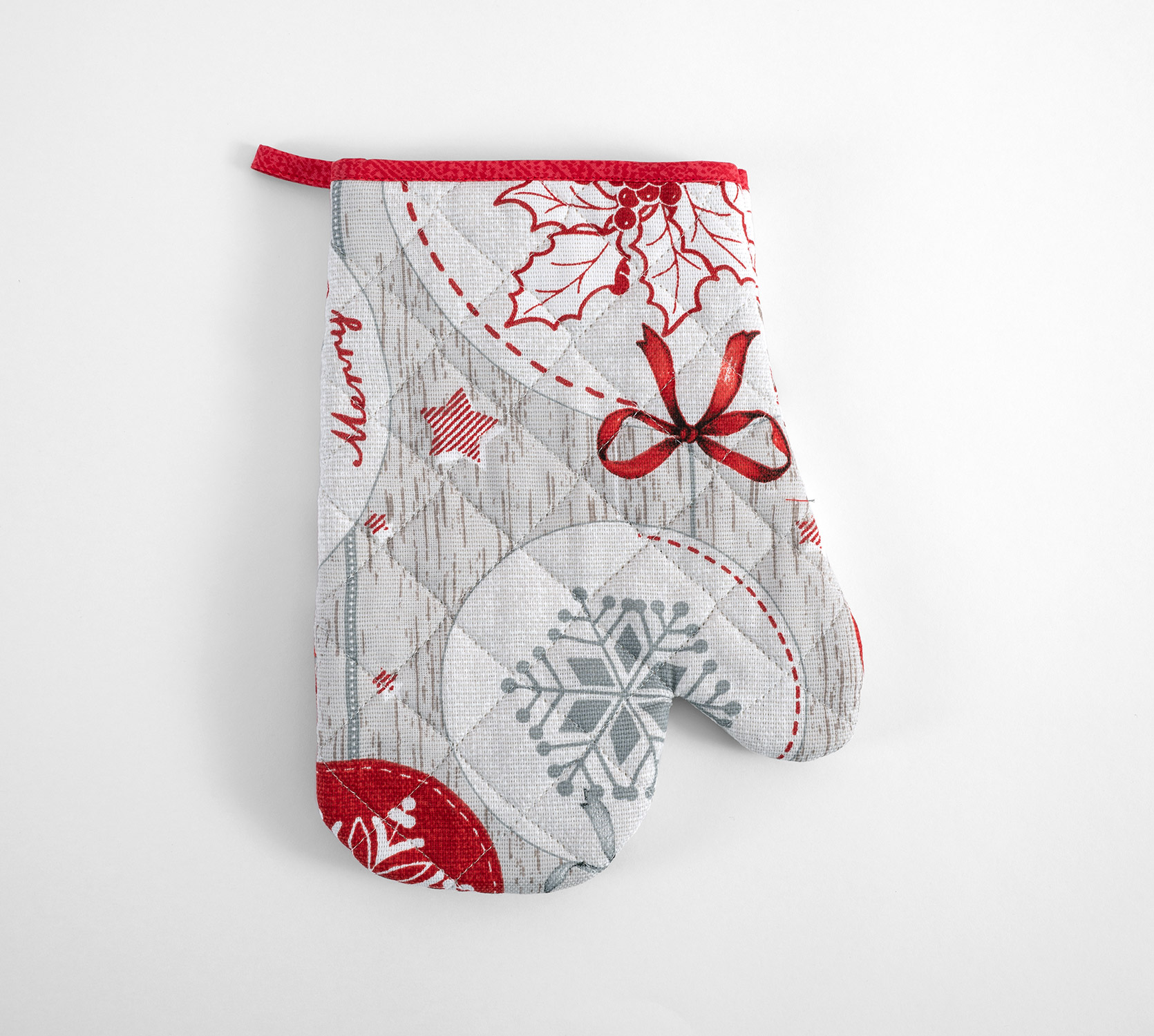 Прихватка-рукавица стеганная размером 28 см x 19 см. Наполнение рукавицы - синтепон. Прихватка-рукавица из рогожки послужит украшением вашей кухни.