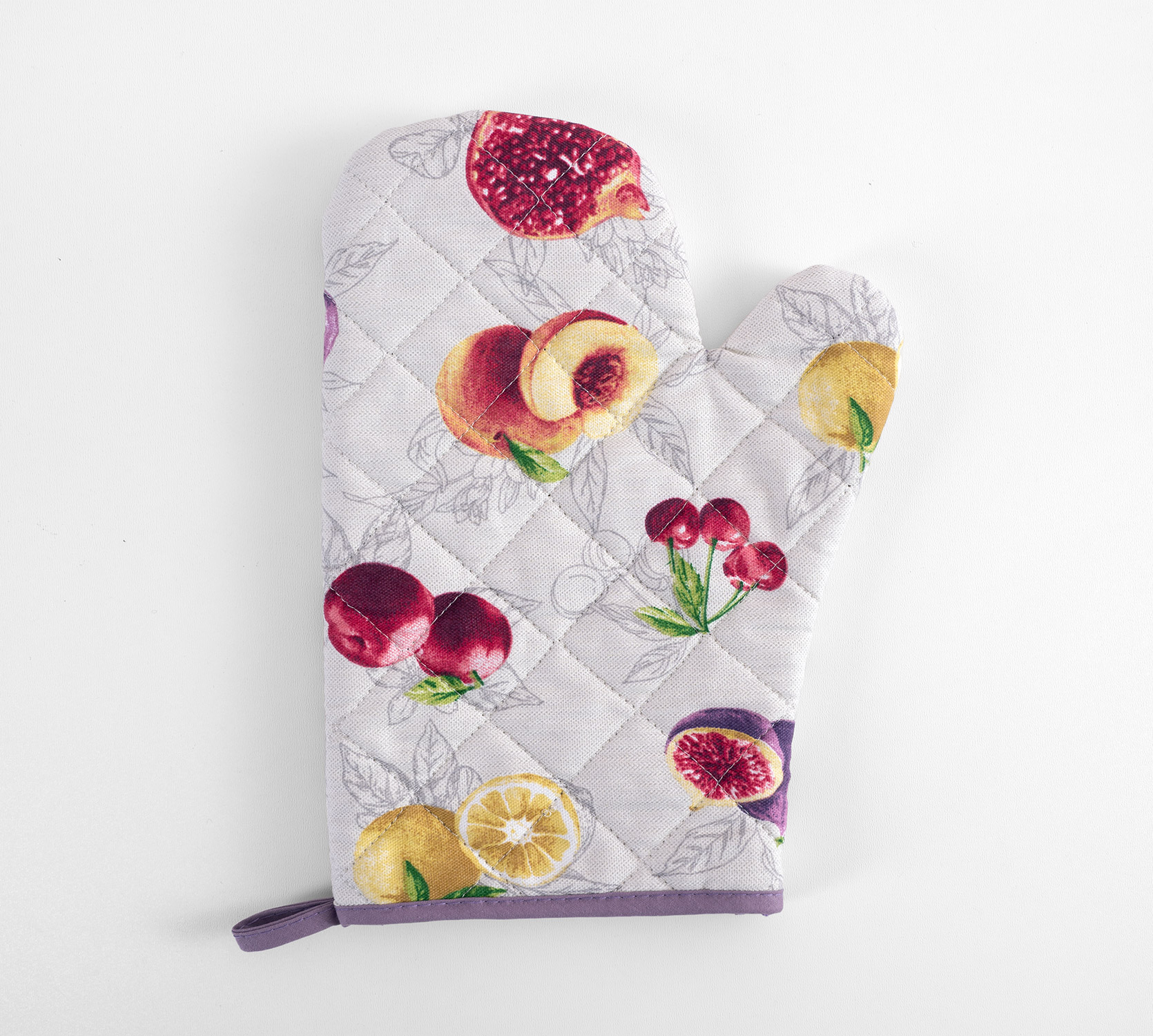 Прихватка-рукавица стеганная размером 28 см x 19 см. Наполнение рукавицы - синтепон. Прихватка-рукавица из рогожки послужит украшением вашей кухни.