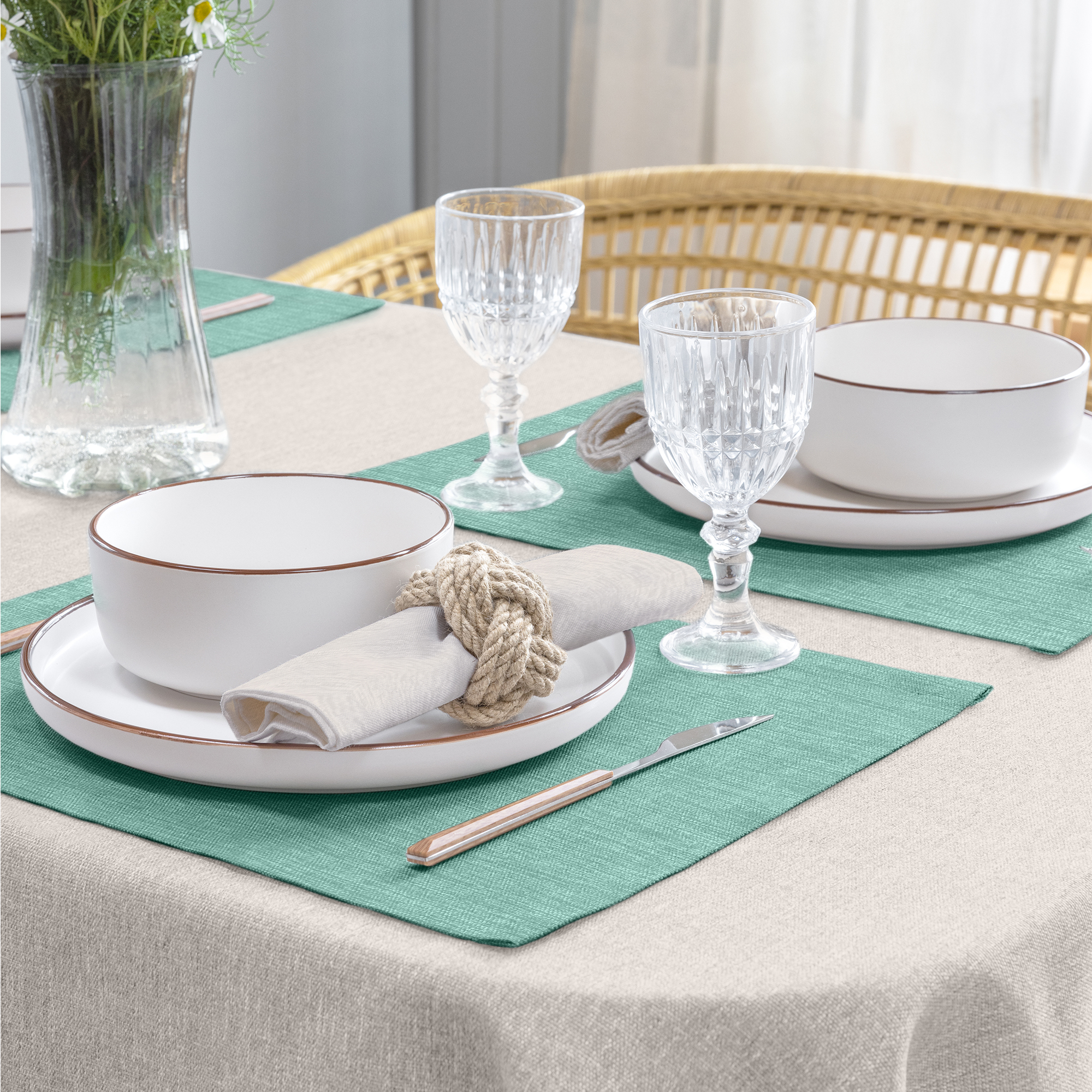 Сервировочные салфетки украсят композицию на столе, станут стильным дополнением к скатерти или сервировочной дорожке, а также могут использоваться как самостоятельный изысканный элемент декора. Ткань рогожка является олицетворением так называемого «крафта». Красоту таких тканей обеспечивает сама фактура и меланжевый эффект (неровный окрас пряжи). Материал повторяет структуру ткани из натурального льна, но обладает дополнительными полезными свойствами: высокой износостойкостью, прочностью и устойчивостью к запахам.