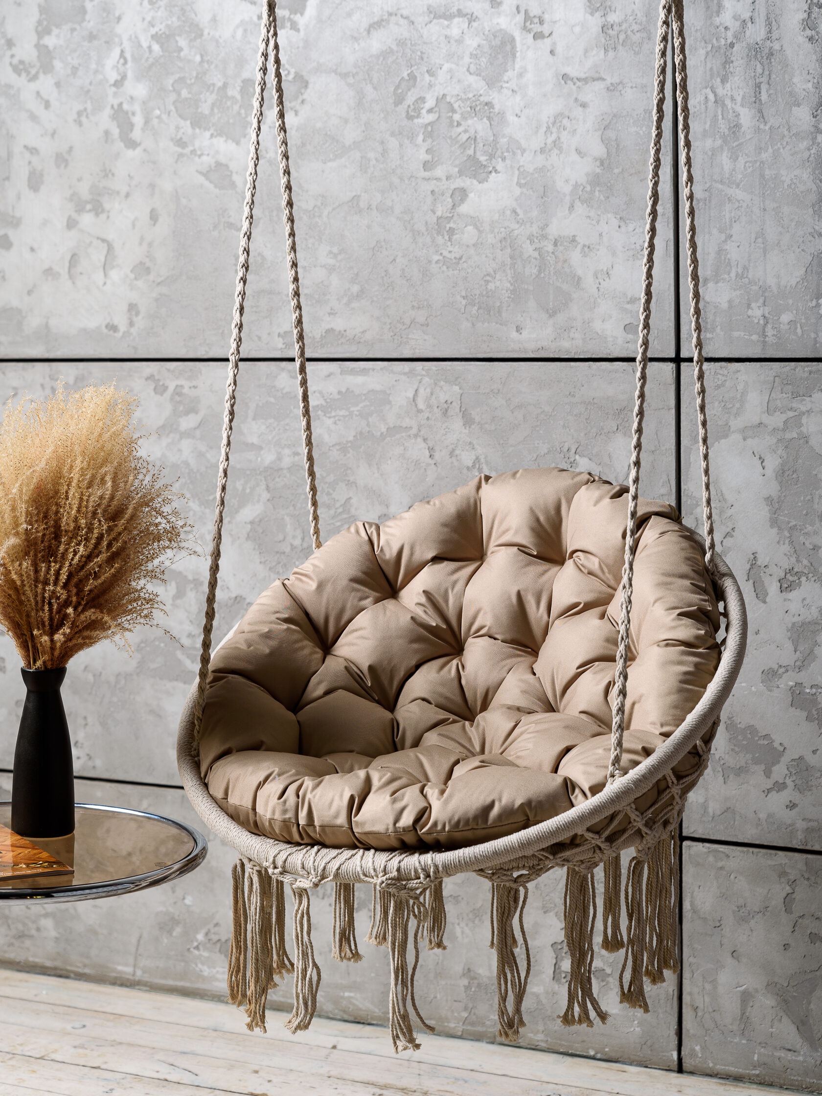 Круглая подушка сидушка безупречно дополнит образ для садовой мебели, привнесет уют и одновременно сделает кресла-качалки более комфортными. Подушка для сидения уличная в меру объемная, а наполнитель достаточно упругий. Вы можете использовать подушку не только на качели подвесные для улицы или для сада, но и для дома, положить на веранде в кресло качалку, в беседке на скамью или использовать ее на лужайке для гамака, около бассейна и рядом с шезлонгом. По-настоящему мягкая сидушка станет незаменимым участником комфортной жизни. Напольная подушка для качелей будет необходимой для ребенка в детской, чтобы можно было спокойно разместиться на пол или на детское подвесное кресло. Также большая подстилка для отдыха непременно пригодится в домашнем кинозале, в кресло гамак или в кресло кокон. Подушка для садовых качелей сделана из плотной износостойкой ткани, которая хорошо удерживает наполнитель, сохраняет форму подушки и обеспечивает долгий срок службы изделия.