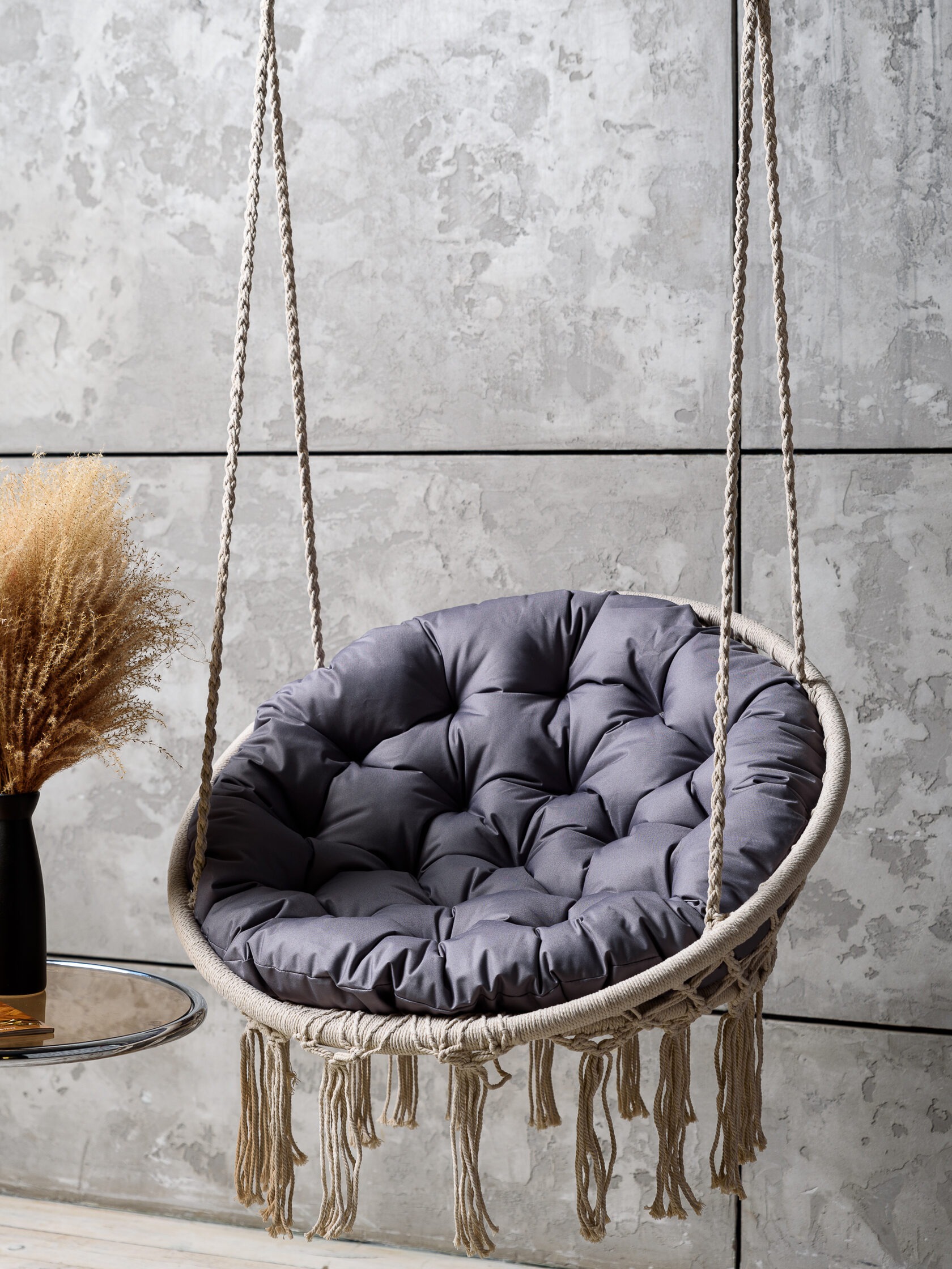 Круглая подушка сидушка безупречно дополнит образ для садовой мебели, привнесет уют и одновременно сделает кресла-качалки более комфортными. Подушка для сидения уличная в меру объемная, а наполнитель достаточно упругий. Вы можете использовать подушку не только на качели подвесные для улицы или для сада, но и для дома, положить на веранде в кресло качалку, в беседке на скамью или использовать ее на лужайке для гамака, около бассейна и рядом с шезлонгом. По-настоящему мягкая сидушка станет незаменимым участником комфортной жизни. Напольная подушка для качелей будет необходимой для ребенка в детской, чтобы можно было спокойно разместиться на пол или на детское подвесное кресло. Также большая подстилка для отдыха непременно пригодится в домашнем кинозале, в кресло гамак или в кресло кокон. Подушка для садовых качелей сделана из плотной износостойкой ткани, которая хорошо удерживает наполнитель, сохраняет форму подушки и обеспечивает долгий срок службы изделия.