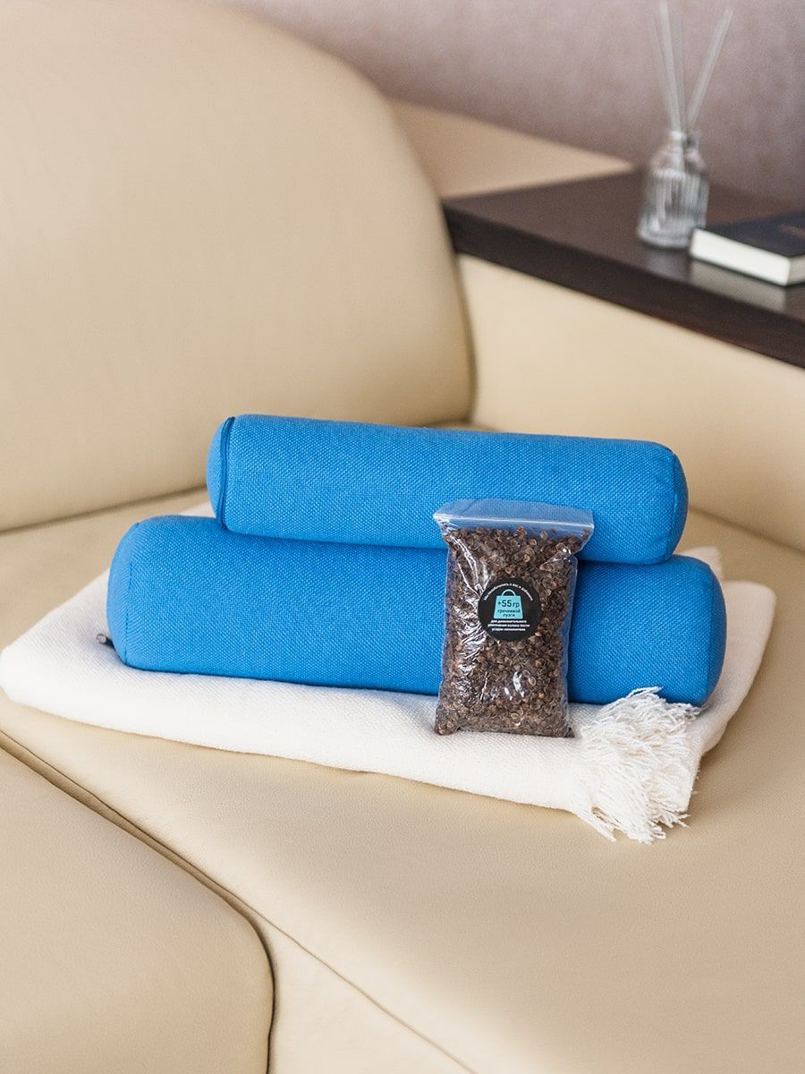 Два валика в наборе – это невероятно удобно и универсально! Теперь ваши занятия или отдых будут более эффективными. Так как в местах, где валик обычного размера великоват, идеально подойдёт валик размером поменьше, обеспечивая только пользу и комфорт. Также маленький валик прекрасно подойдёт для занятий в паре с ребенком. Валики имеют плотную набивку из лузги гречихи, поэтому обладают хорошей поддерживающей функцией. Использование двух валиков одновременно непременно будет более эффективным. Расположите их, например, под спину или шею и под ноги, под поясницу и под коленки. Регулярное применение валиков поможет в укреплении мышц спины и стимулирования кровообращения, улучшении общего состояния организма, а также незаменимы для занятий йогой и спортом и расслабления после физических нагрузок.