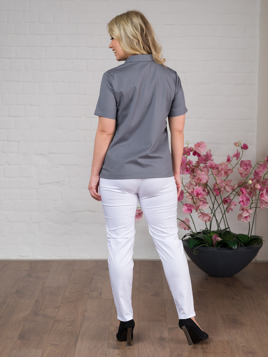 Рубашка-поло представляет собой современную медицинскую униформу, разработанную для комфортного использования в течение всего рабочего дня. Модель отличается лаконичным дизайном и женственным силуэтом.
