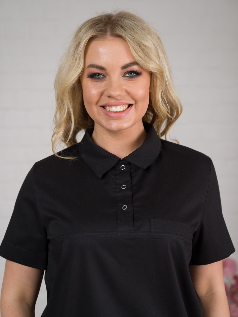 Рубашка-поло представляет собой современную медицинскую униформу, разработанную для комфортного использования в течение всего рабочего дня. Модель отличается лаконичным дизайном и женственным силуэтом.