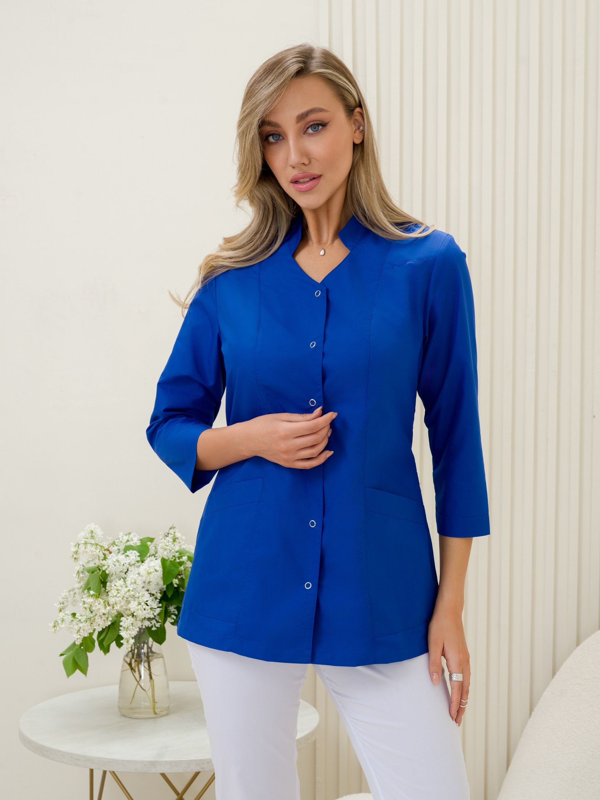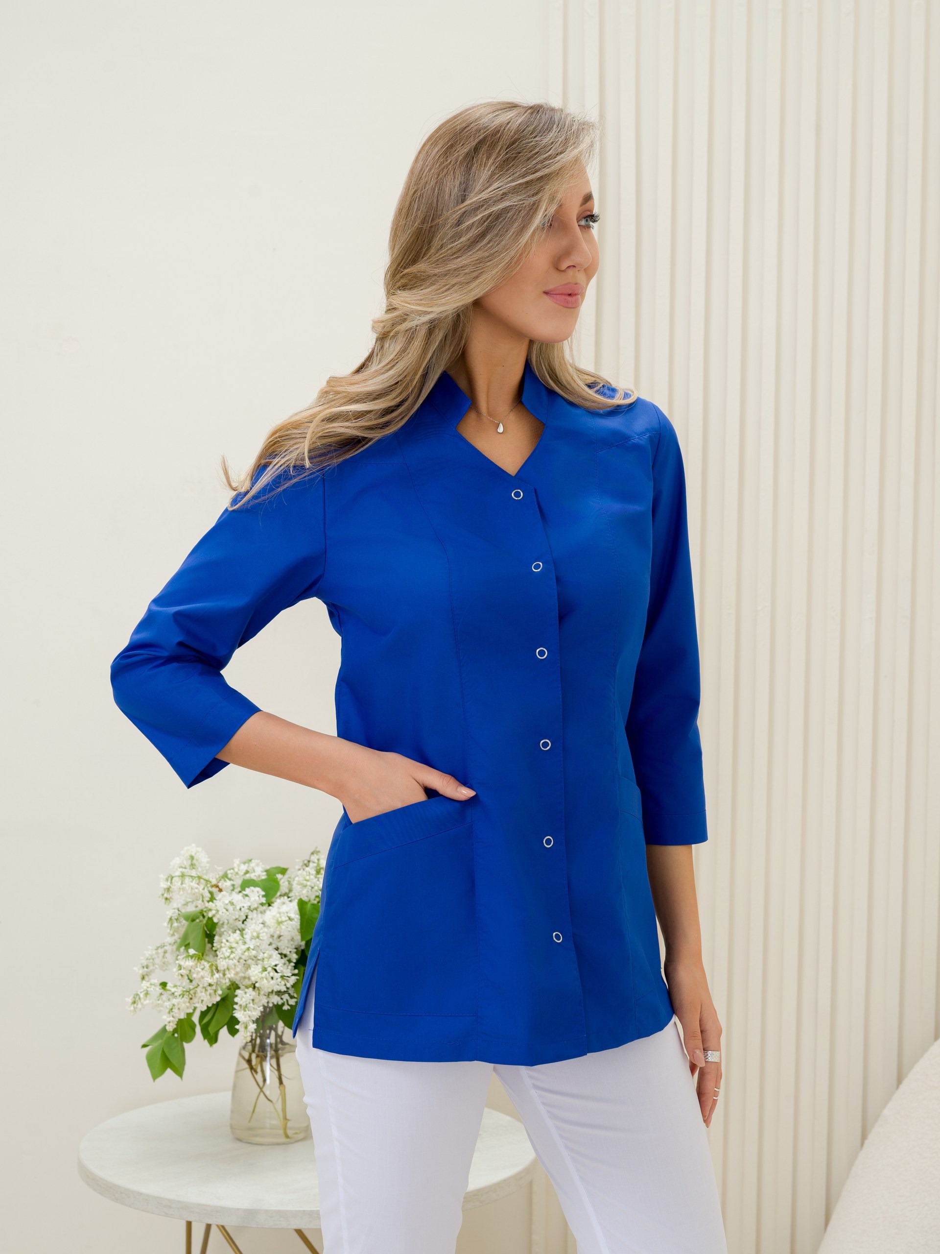 Медицинский жакет из ткани ТиСи — это спецодежда для медработников, сочетающая прочность, комфорт и практичность. ТиСи — смесовая ткань, в составе которой 65% полиэстера и 35% хлопка. Такой состав обеспечивает износостойкость, воздухопроницаемость и простоту ухода.