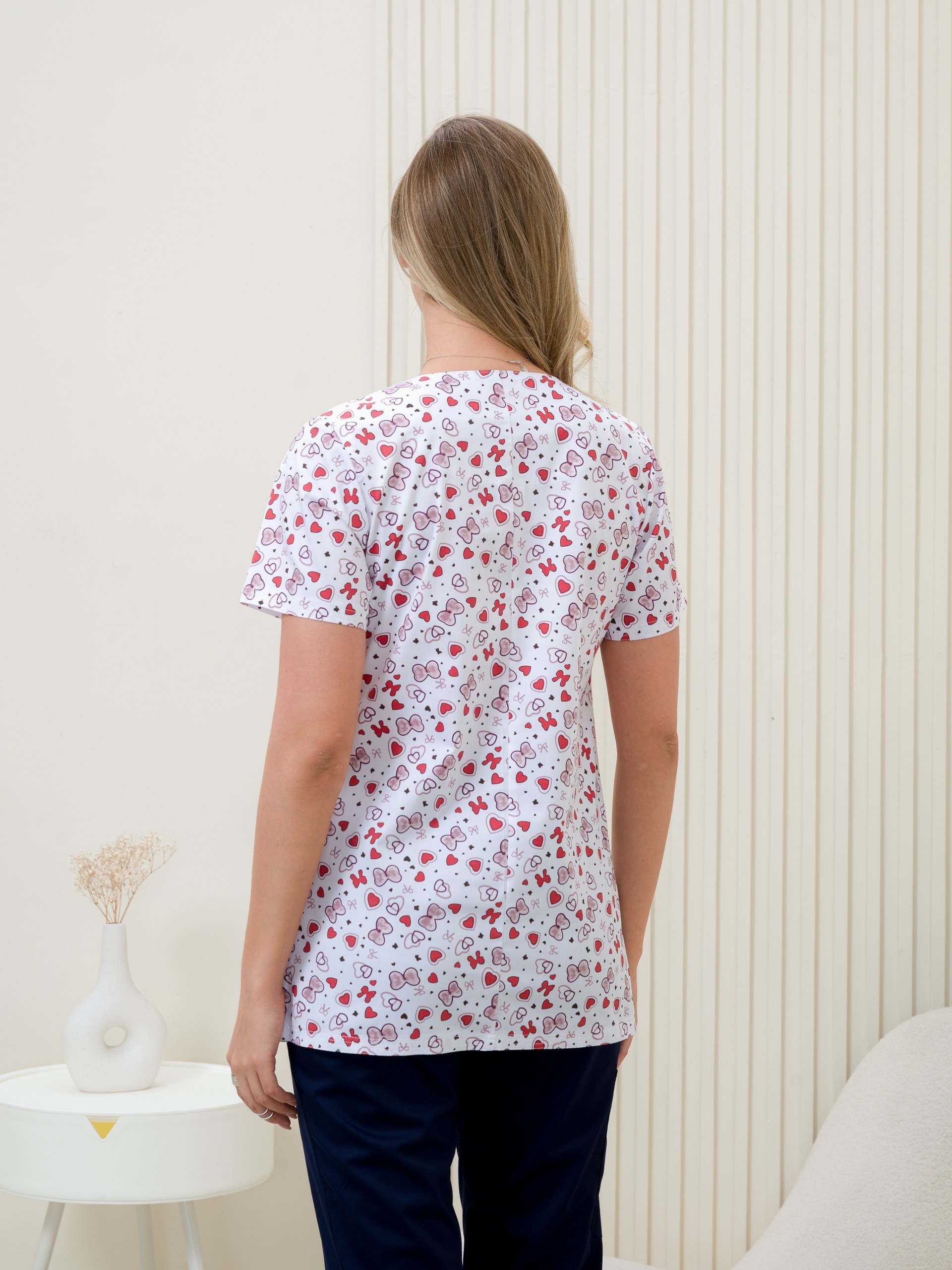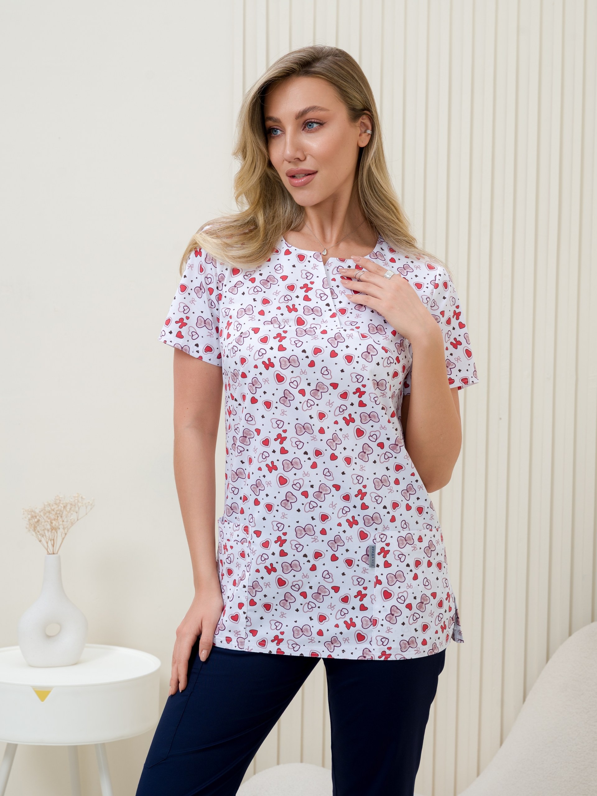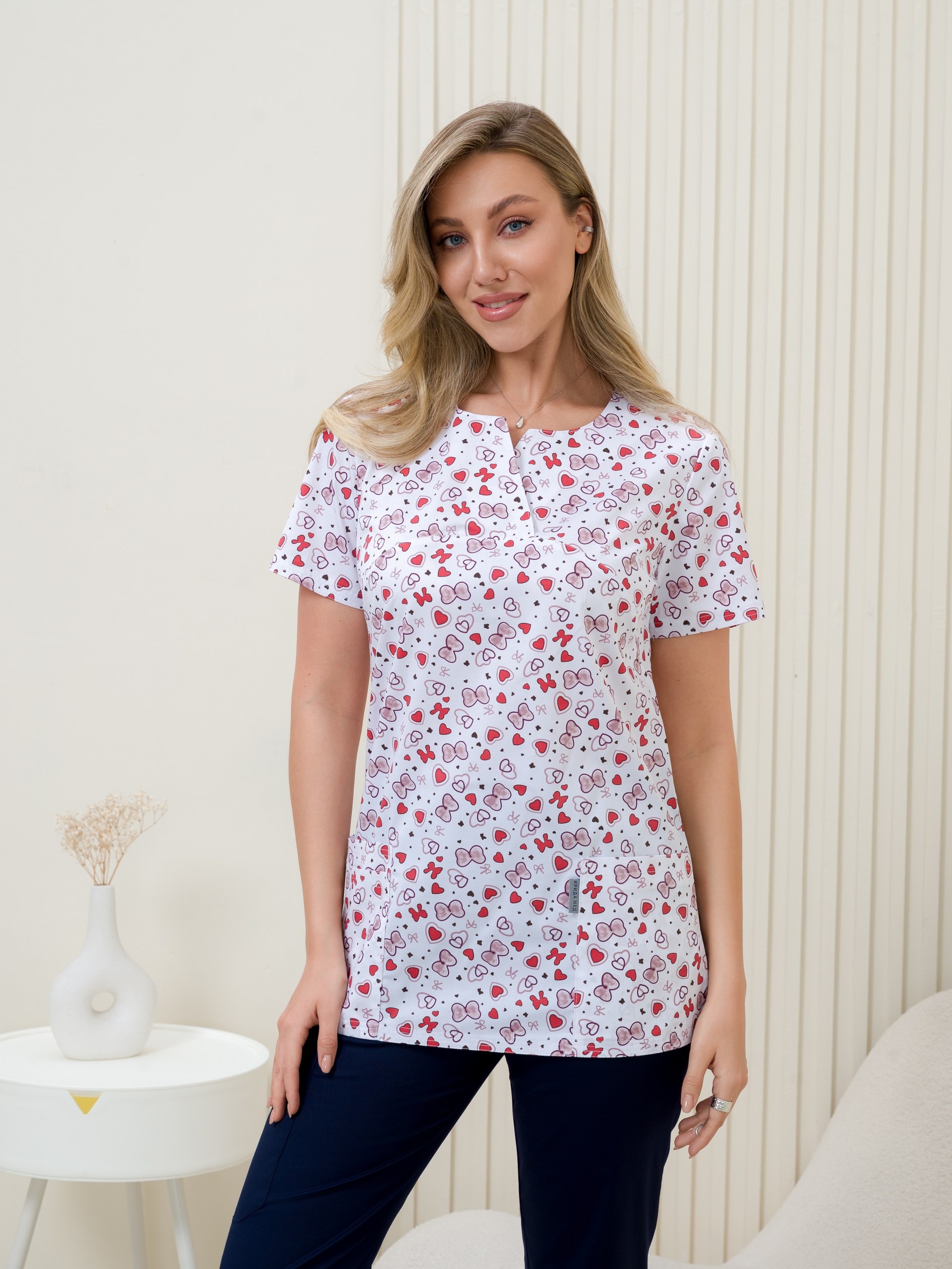 Современная униформа для медиков может обратить на себя внимание не только пациентов, но и вызвать у вас желание носить ее за пределами работы. Блуза медицинская женская с ярким рисунком будет поддерживать ваш настрой приподнятым в течение всего рабочего дня. Удобный крой рубашки с коротким рукавом для женщин не будет стеснять ваших движений, и даже в экстренных ситуациях вы продолжите выглядеть прекрасно. Медицинская блузка составит отличный комплект с брюками нашего бренда, есть простые прямые брюки, а также джоггеры. Составляйте разные образы и излучайте импульсы уверенности в завтрашнем дне. Медицинская рубашка с рисунком подойдет педиатрам, ветеринарным врачам, стоматологам, сотрудникам косметических салонов, массажистам. Спецодежда сшита из ткани Элит-145/Стрейч-Принт. Размерный ряд с 40 по 64.
