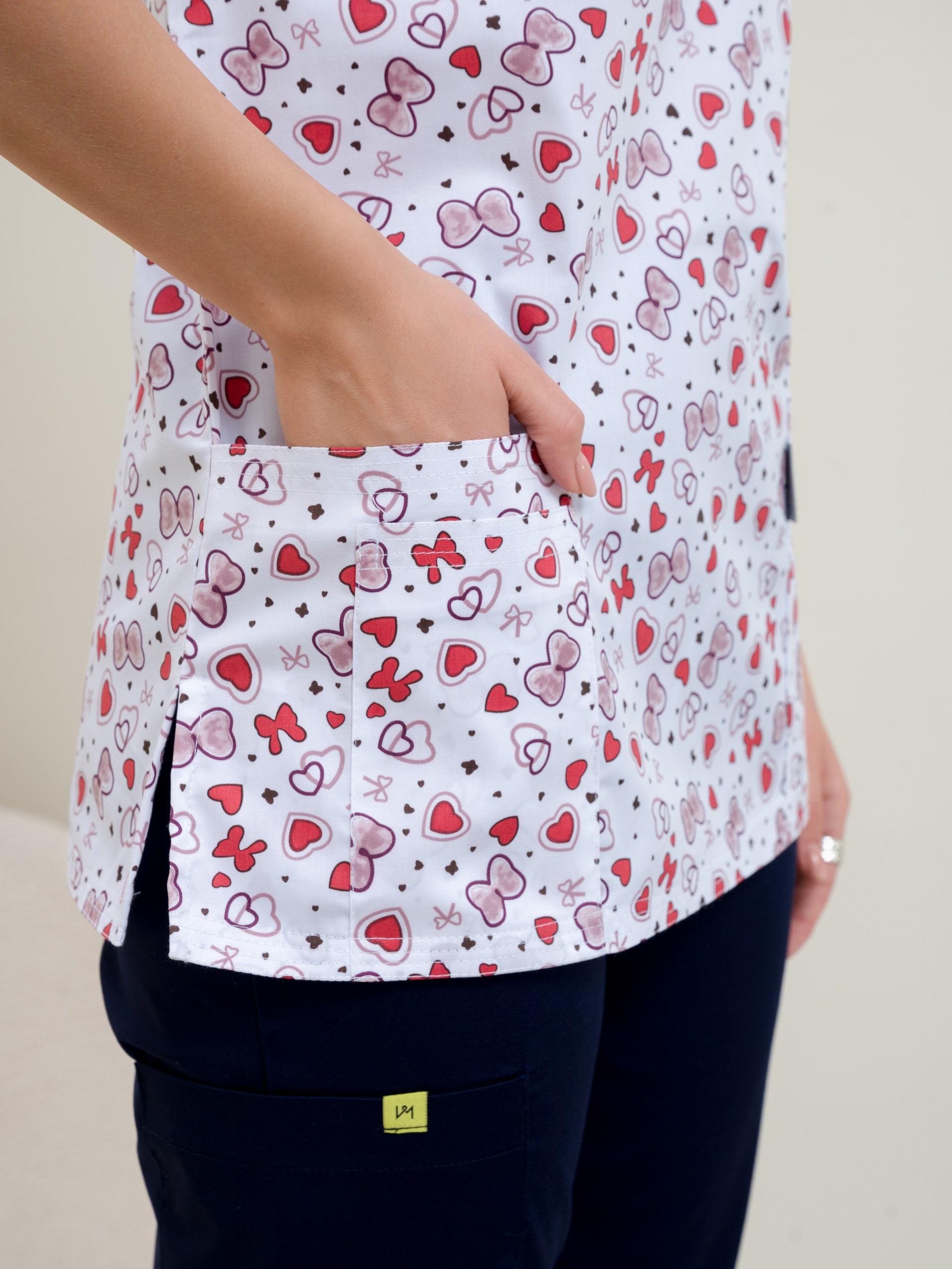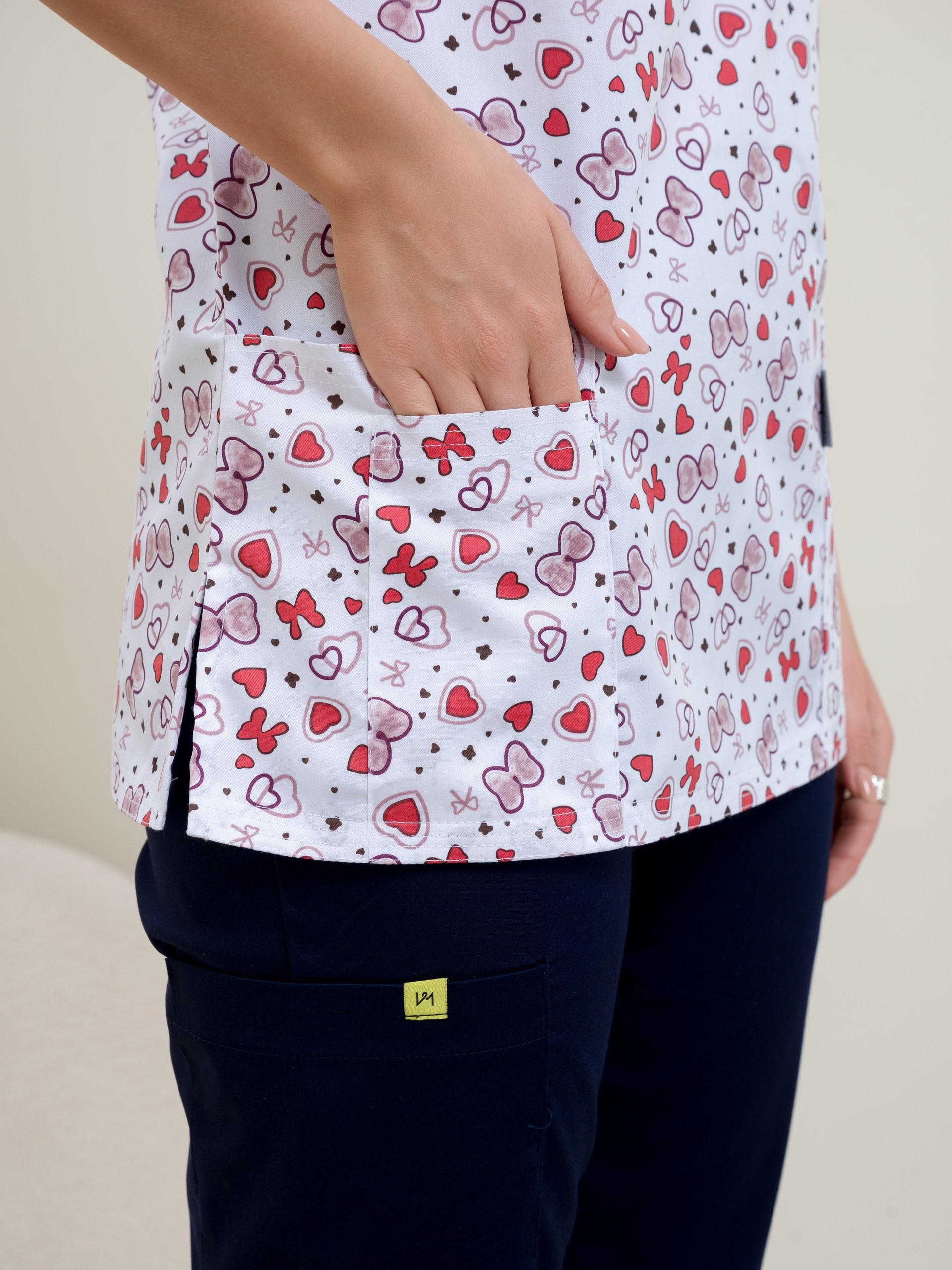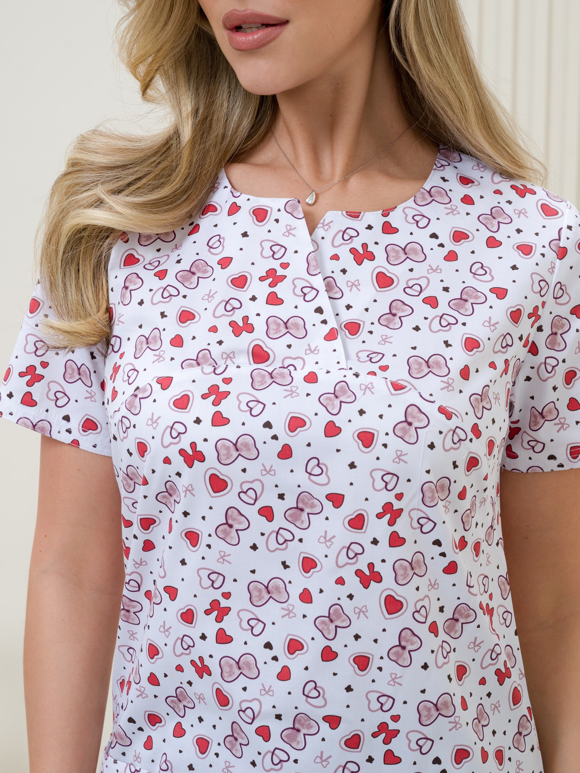 Современная униформа для медиков может обратить на себя внимание не только пациентов, но и вызвать у вас желание носить ее за пределами работы. Блуза медицинская женская с ярким рисунком будет поддерживать ваш настрой приподнятым в течение всего рабочего дня. Удобный крой рубашки с коротким рукавом для женщин не будет стеснять ваших движений, и даже в экстренных ситуациях вы продолжите выглядеть прекрасно. Медицинская блузка составит отличный комплект с брюками нашего бренда, есть простые прямые брюки, а также джоггеры. Составляйте разные образы и излучайте импульсы уверенности в завтрашнем дне. Медицинская рубашка с рисунком подойдет педиатрам, ветеринарным врачам, стоматологам, сотрудникам косметических салонов, массажистам. Спецодежда сшита из ткани Элит-145/Стрейч-Принт. Размерный ряд с 40 по 64.