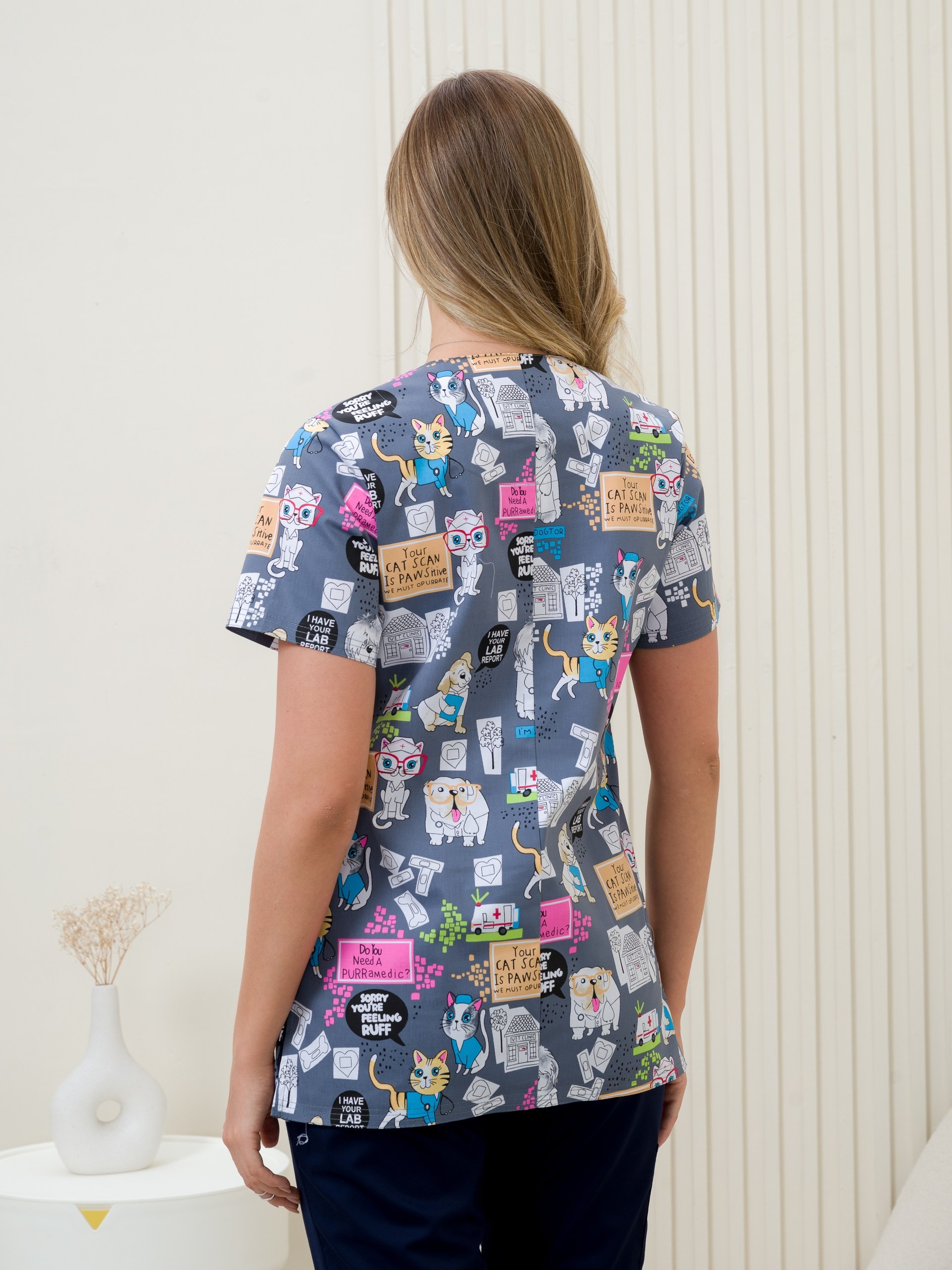 Современная униформа для медиков может обратить на себя внимание не только пациентов, но и вызвать у вас желание носить ее за пределами работы. Блуза медицинская женская с ярким рисунком будет поддерживать ваш настрой приподнятым в течение всего рабочего дня. Удобный крой рубашки с коротким рукавом для женщин не будет стеснять ваших движений, и даже в экстренных ситуациях вы продолжите выглядеть прекрасно. Медицинская блузка составит отличный комплект с брюками нашего бренда, есть простые прямые брюки, а также джоггеры. Составляйте разные образы и излучайте импульсы уверенности в завтрашнем дне. Медицинская рубашка с рисунком подойдет педиатрам, ветеринарным врачам, стоматологам, сотрудникам косметических салонов, массажистам. Спецодежда сшита из ткани Элит-145/Стрейч-Принт. Размерный ряд с 40 по 64.