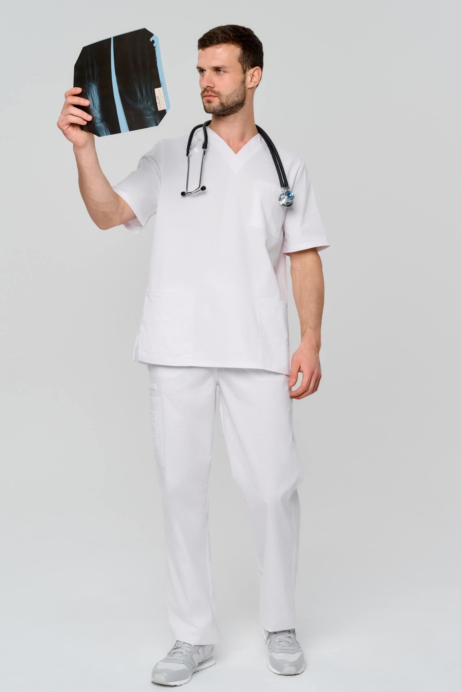 Мужские медицинские брюки из смесовой ткани Insoft. Модель отшивается на рост 182 см.