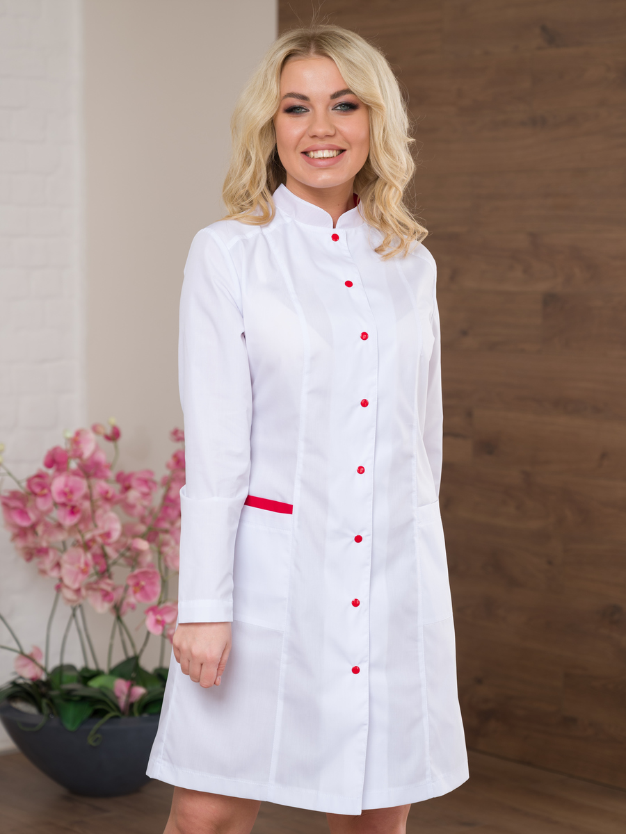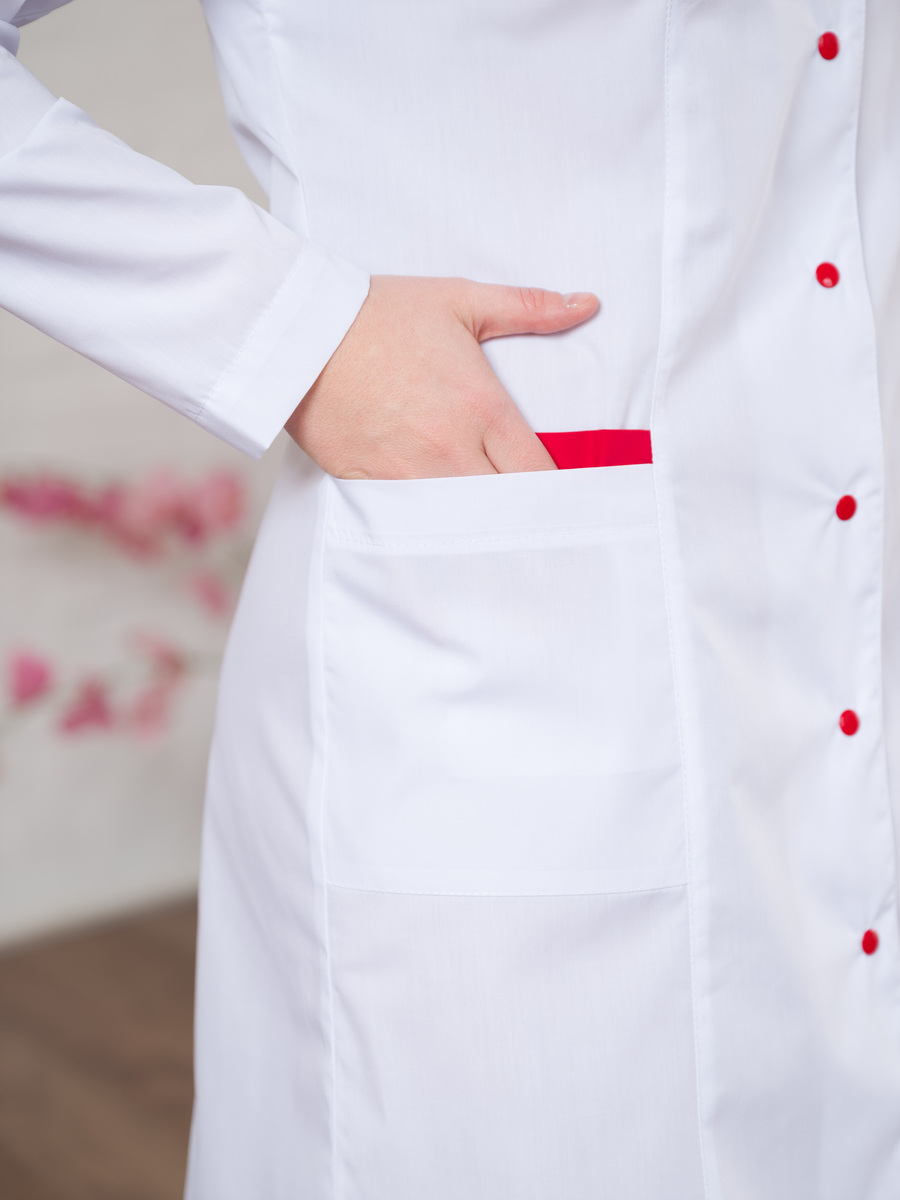 Медицинский халат модели М-051 — это практичная и удобная спецодежда для медицинских работников, выполненная из высококачественной смесовой ткани.