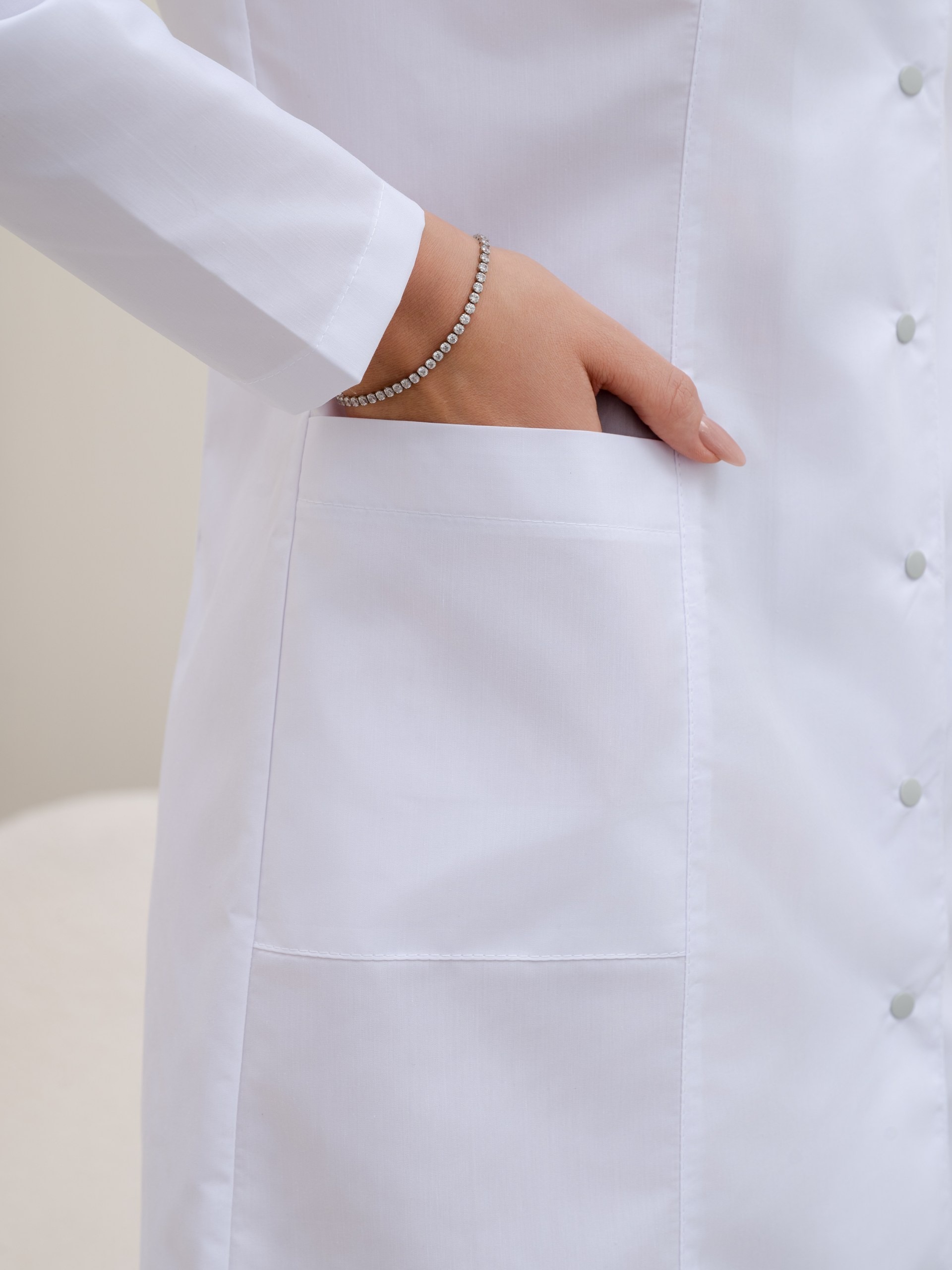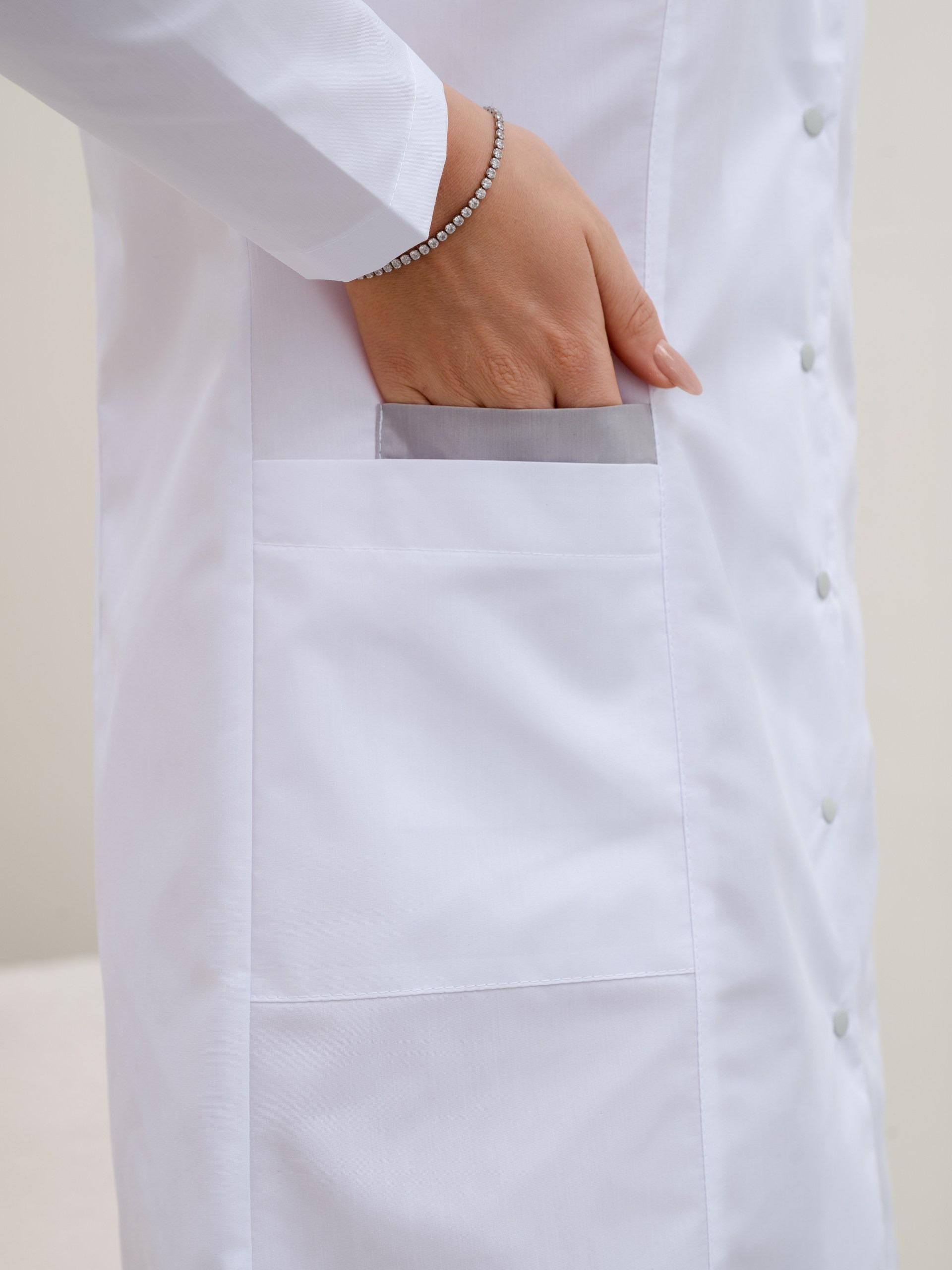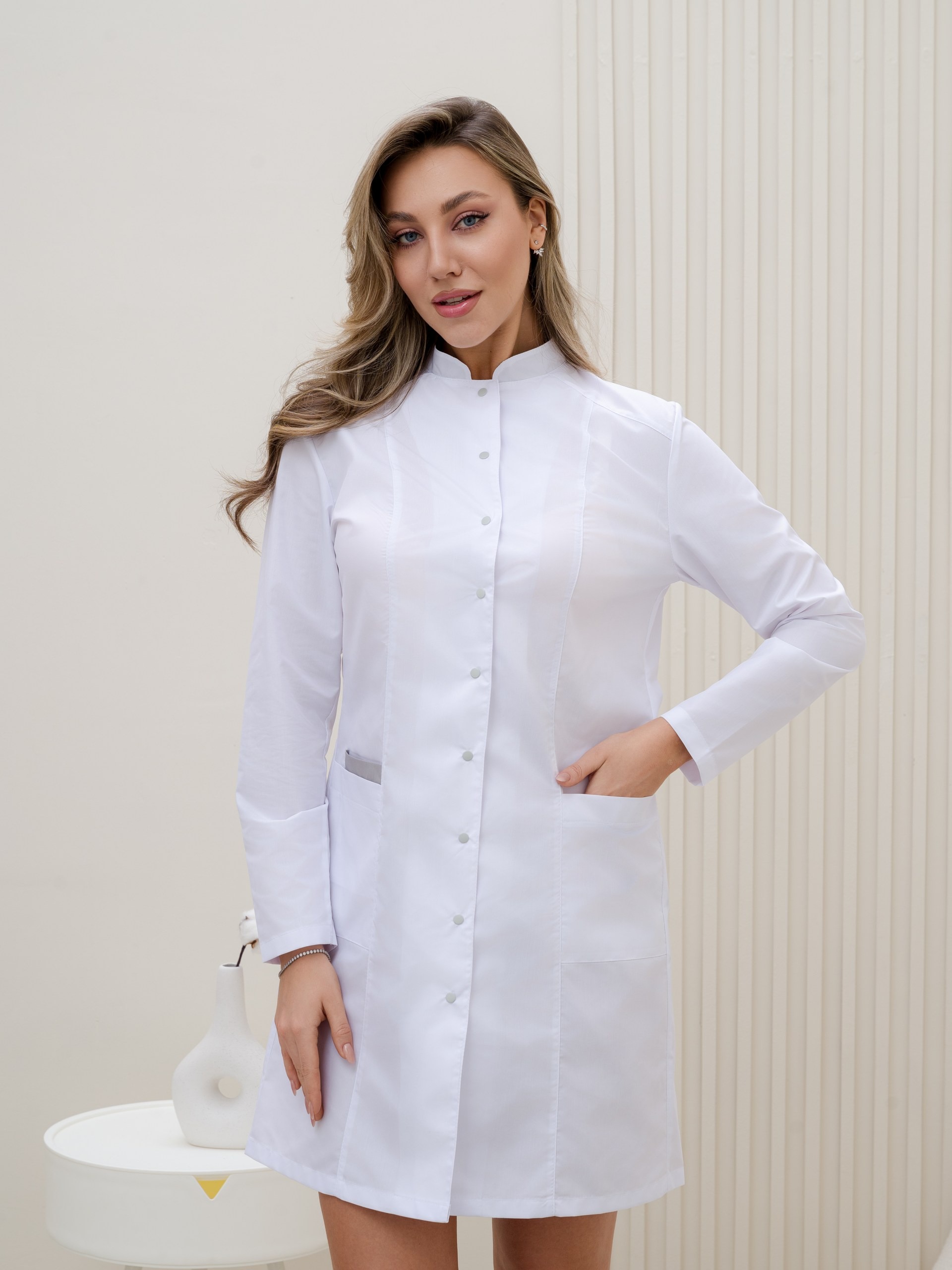 Медицинский женский халат идеальный выбор любителей классики. Размерный ряд изделия 42 - 56. Халат приталенного силуэта. Воротник стойка. В составе изделия хлопок 35% и полиэстер 65%, не деформируется при носке. Он практичен и легок в уходе, практически не мнется, отлично сидит по фигуре. Халат белый подходит для повседневного использования как врачами, так и для студентов медиков. Наша продукция - это сочетание современного стиля, высокого качества и практичности.