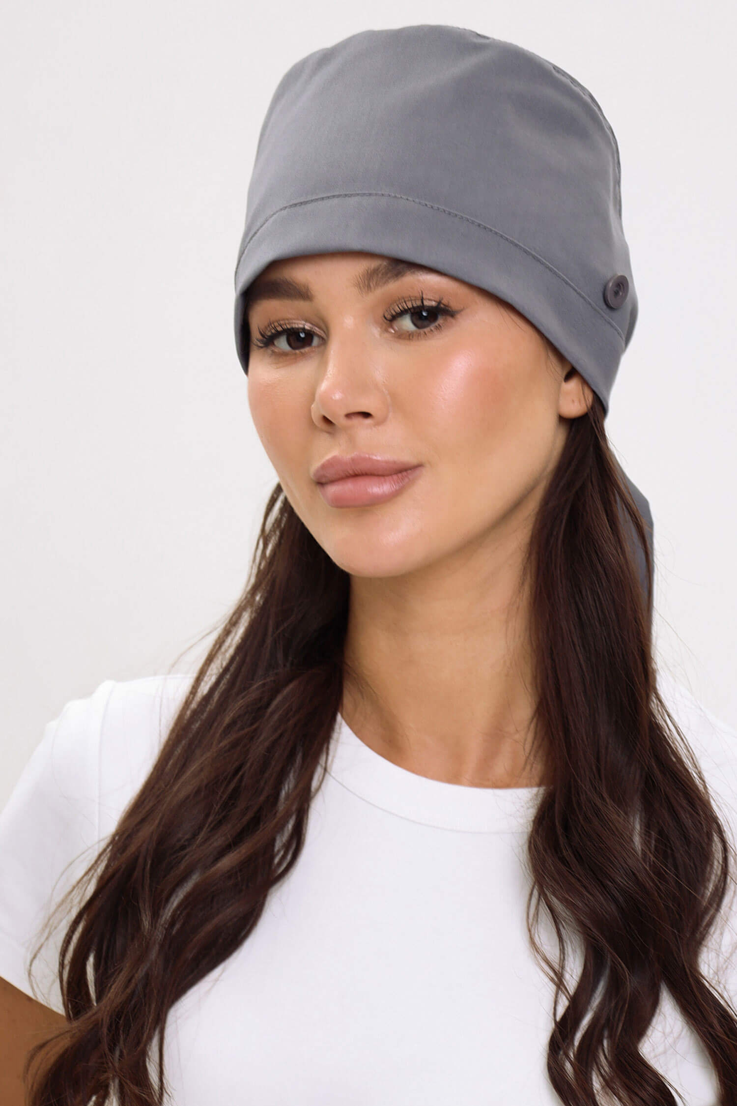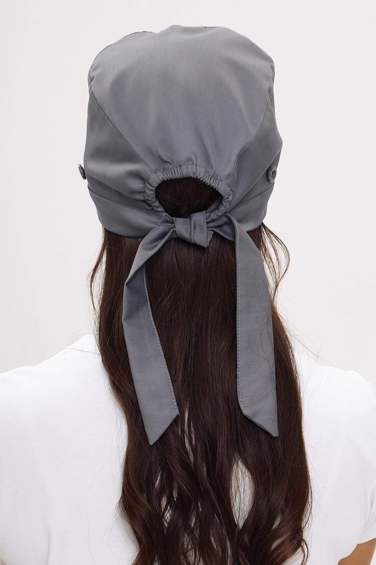 Медицинский колпак с пуговицами для фиксации маски, чтобы убрать дискомфорт с ушей.