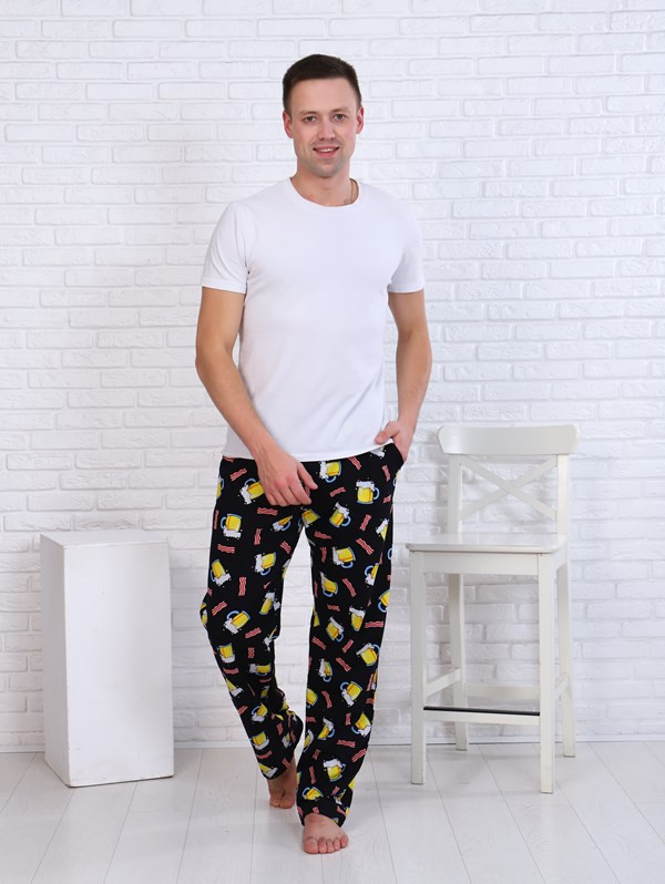 Мужские брюки из кулирки — это лёгкие и комфортные модели, изготовленные из тонкого трикотажного полотна. Кулирка (кулирная гладь) — материал из 100% хлопка, который хорошо тянется в ширину, практически не мнётся, не садится после стирки и обеспечивает воздухопроницаемость. Такие брюки подходят для дома, активного отдыха, спорта и повседневной носки в тёплое время года.