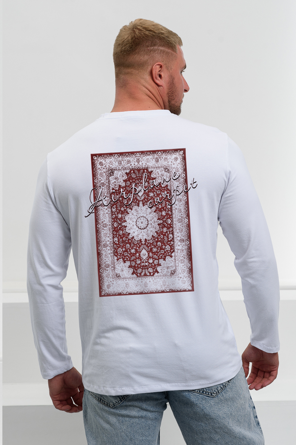 Лонгслив снова в моде и прочно обосновался в базовом гардеробе современного человека. Удобная трикотажная кофта представляет собой футболку с длинным рукавом, которую можно использовать как самостоятельный элемент, так и носить под пиджак, толстовку или рубашку. Лонгслив выполнен из высокоплотного хлопкового трикотажа и является невероятно комфортным и удобным. Футболка с длинными рукавами имеет прямой базовый крой и классическую линию плеча. Лонгслив - это неформальный стиль, когда на футболку можно надеть клетчатую рубашку и сочетать с кедами и джинсами. За счет натуральной ткани лонгслив можно носить в качестве домашней одежды или нательного белья, одежды для сна, тренировочной спортивной одежды и военной экипировки. Если вы хотите силуэт оверсайз нужно взять на размер или два больше, ориентируйтесь по таблице замеров. Принт фольга придает металический блеск и переливы на свету.