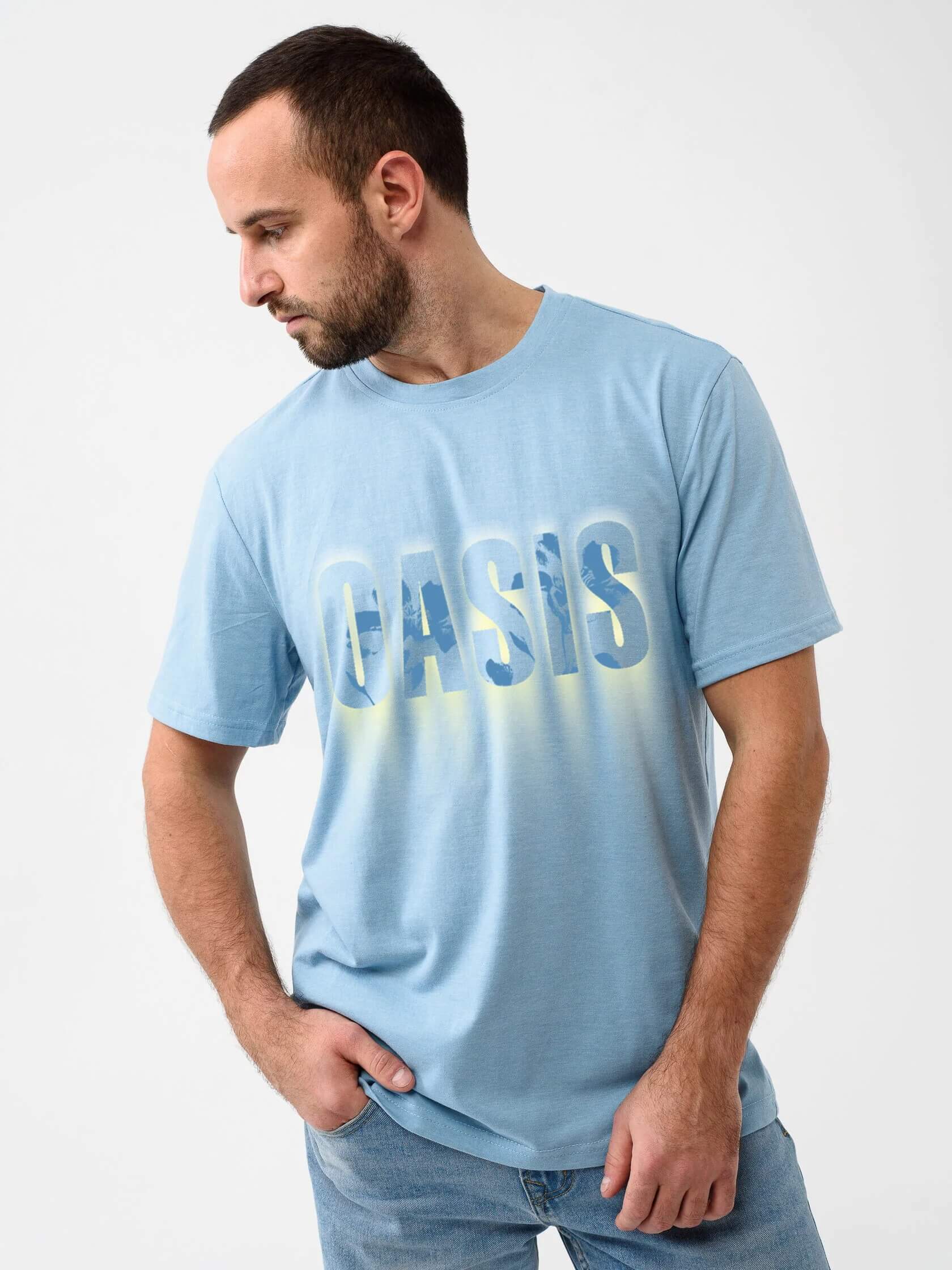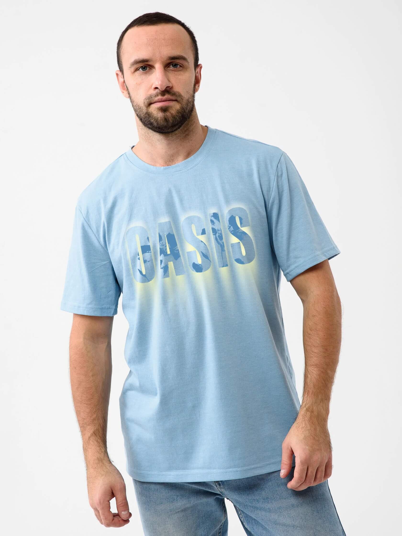 Мужская футболка "Оазис" 2282-К / В ассортименте из кулирного хлопкового полотна. Мужская футболка с короткими рукавами, с надписью на груди.